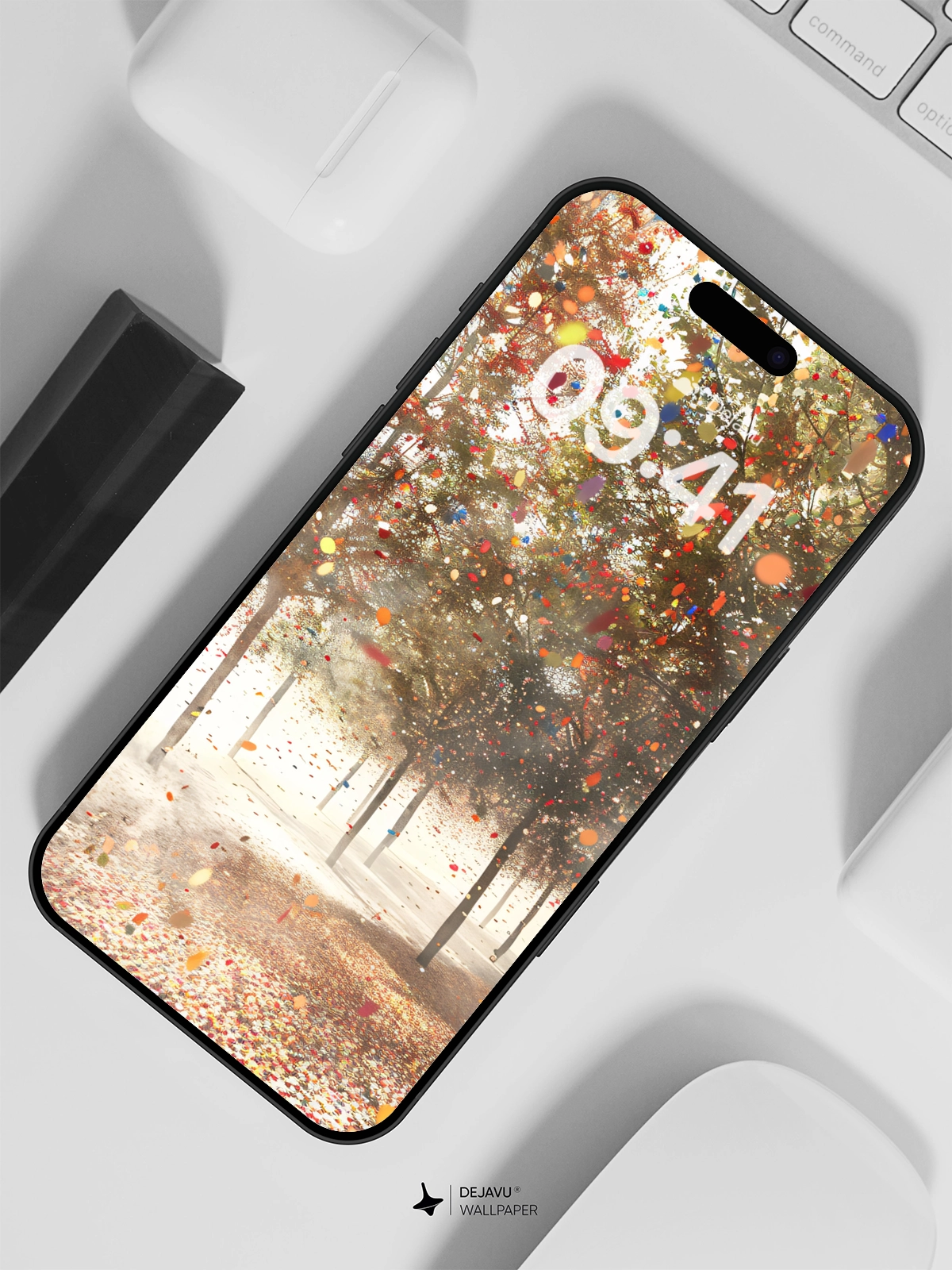 Immerse yourself in the tranquil beauty of an autumn forest with this 8K minimalistic wallpaper. The vibrant leaves falling from the trees create a captivating and serene atmosphere. This wallpaper is not only visually stunning but also highly compatible with iPhone, Android, and tablets, making it the perfect choice to enhance your device’s aesthetic.