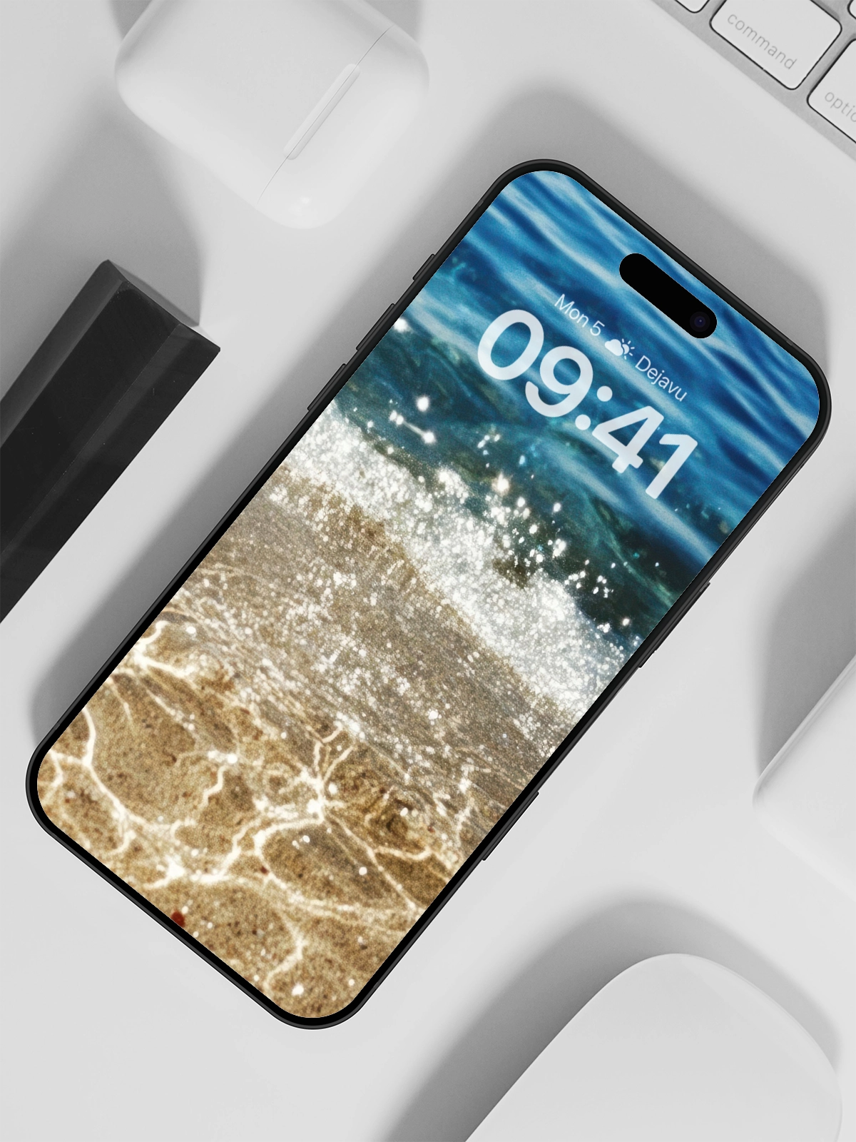 Experience the tranquility of a pristine beach with this 8K minimal aesthetic wallpaper. The crystal-clear waves and sparkling sand create a calming and refreshing atmosphere. Ideal for enhancing your iPhone or Android device with a touch of nature’s beauty.