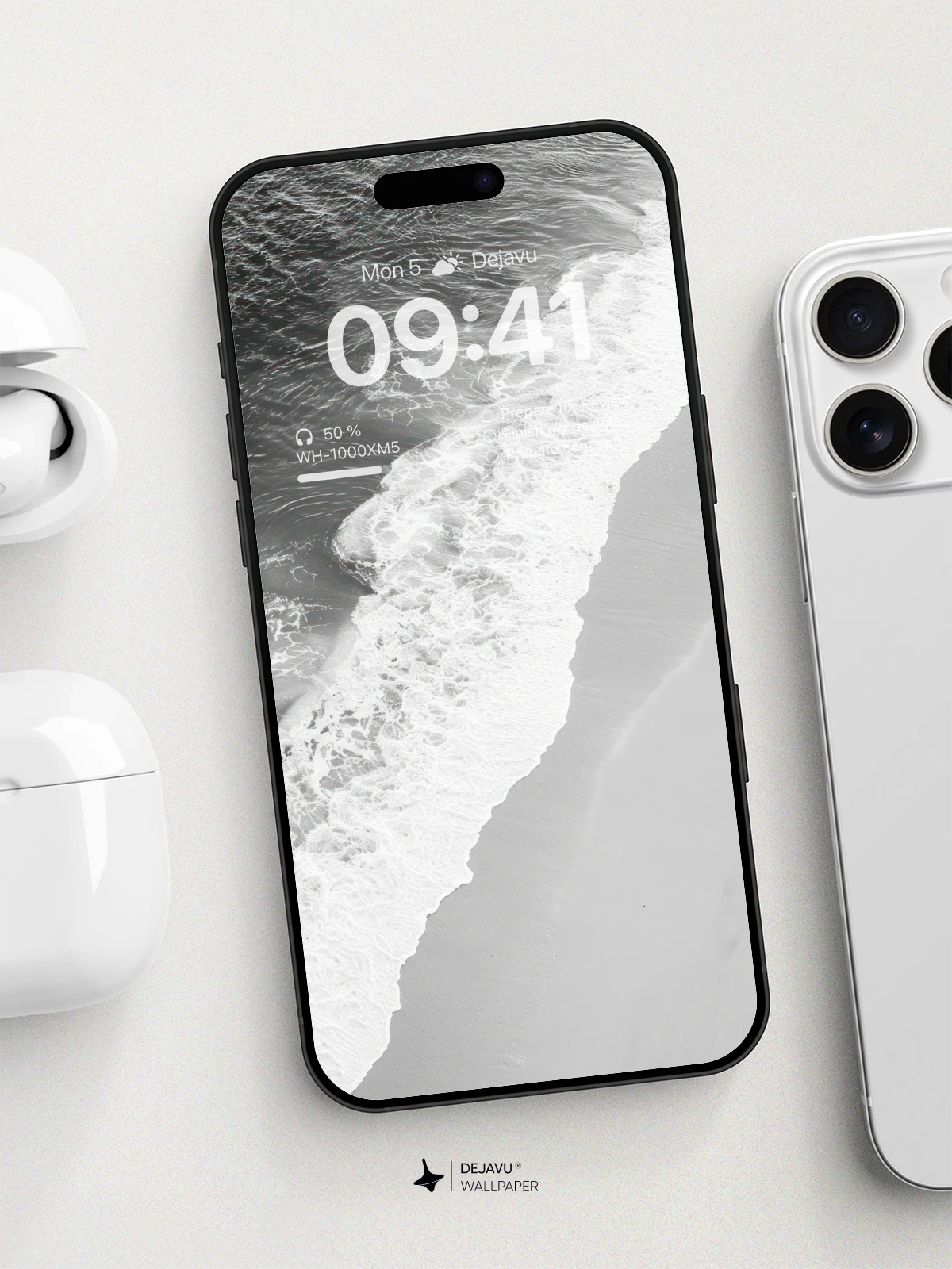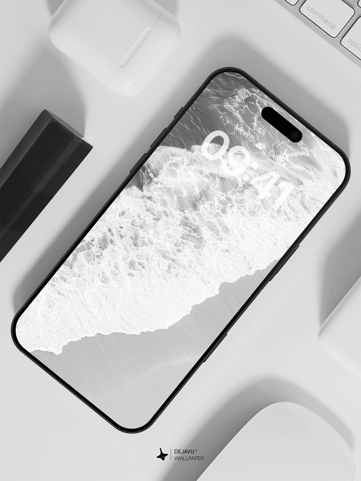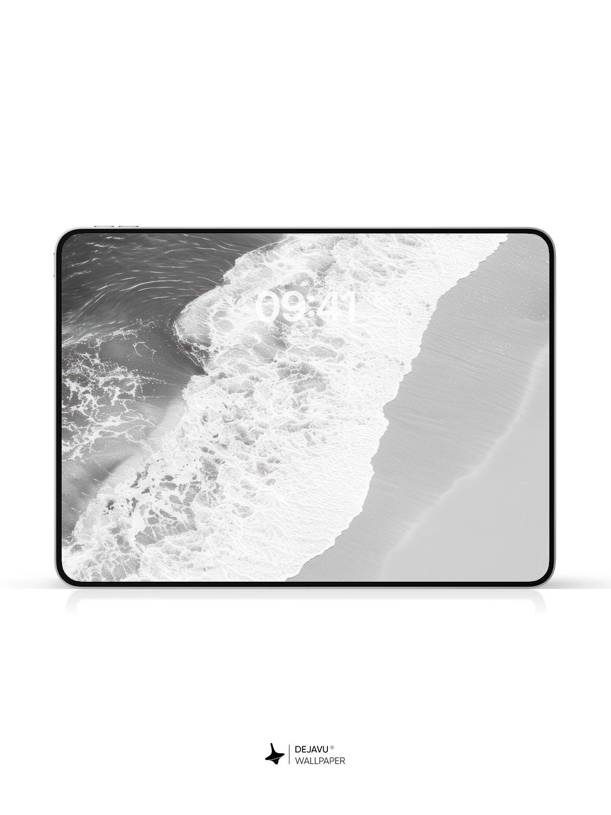 Immerse yourself in the tranquil and minimalist aesthetic of this 8K beach wave wallpaper. The soft gradient from deep ocean to frothy foam captures the essence of calmness and serenity. Ideal for enhancing the look of your iPhone, Android, or tablet screens with its high-resolution detail.