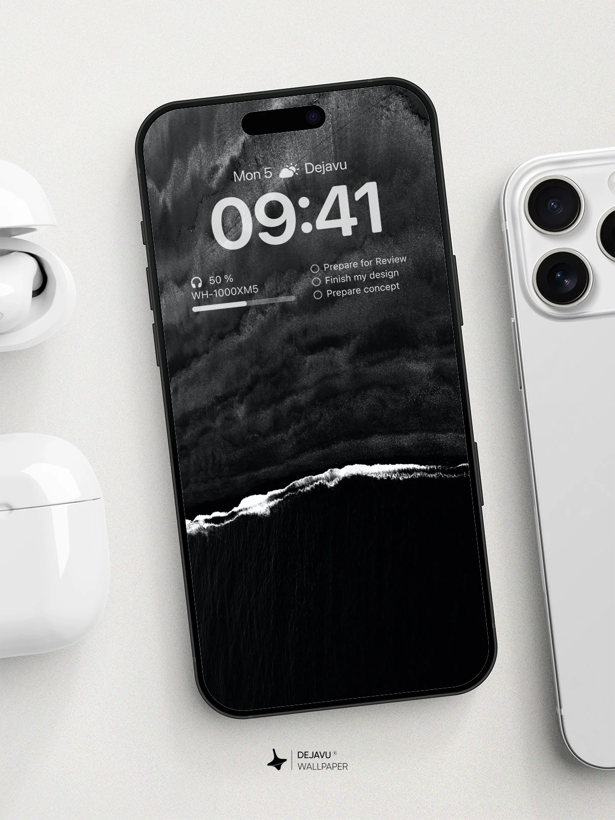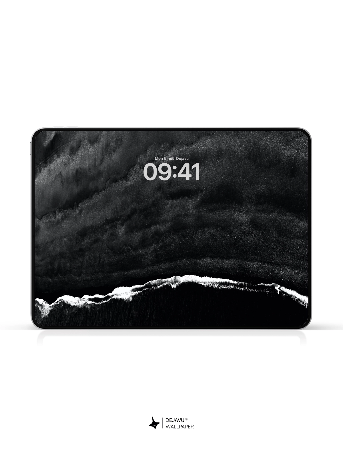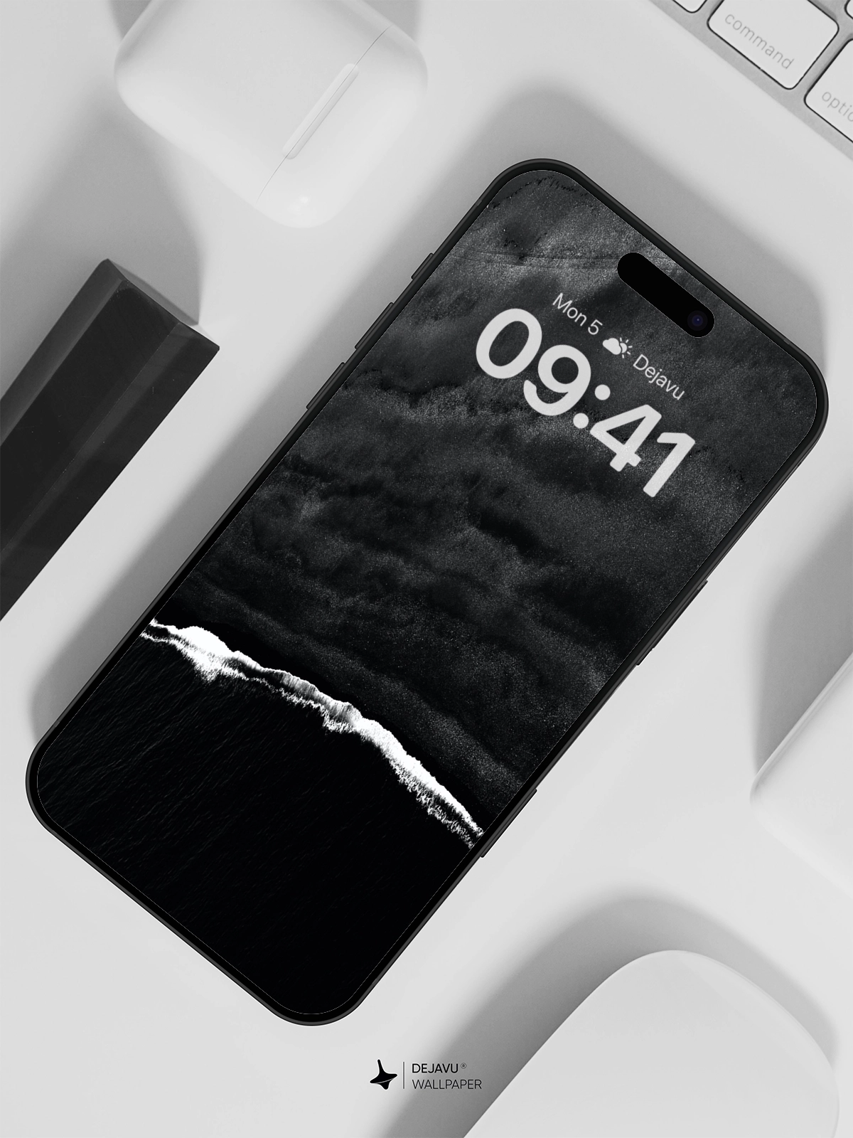 Dive into the tranquil world of this 8K minimal aesthetic black and white beach wallpaper. The stark contrast between the dark sand and the frothy waves creates a captivating visual experience. This wallpaper is perfect for enhancing the look of your iPhone, Android, or tablet screens, offering a blend of simplicity and elegance.