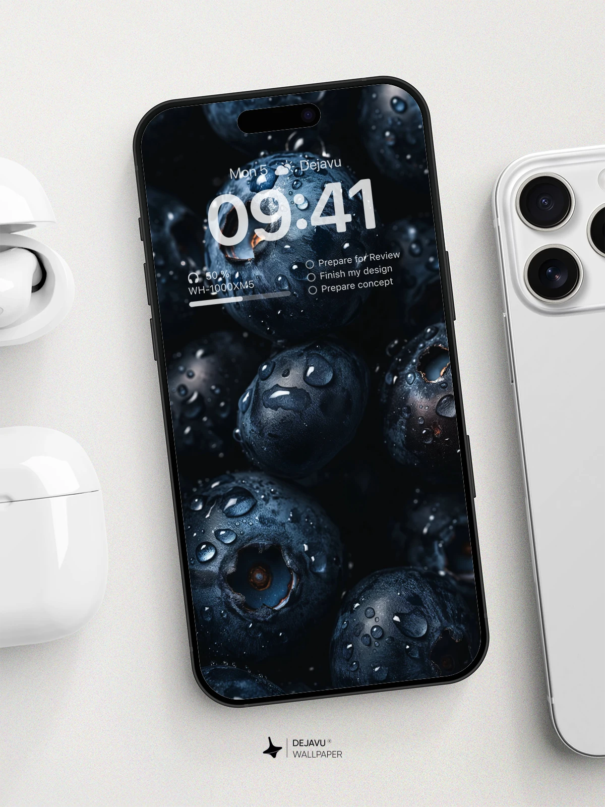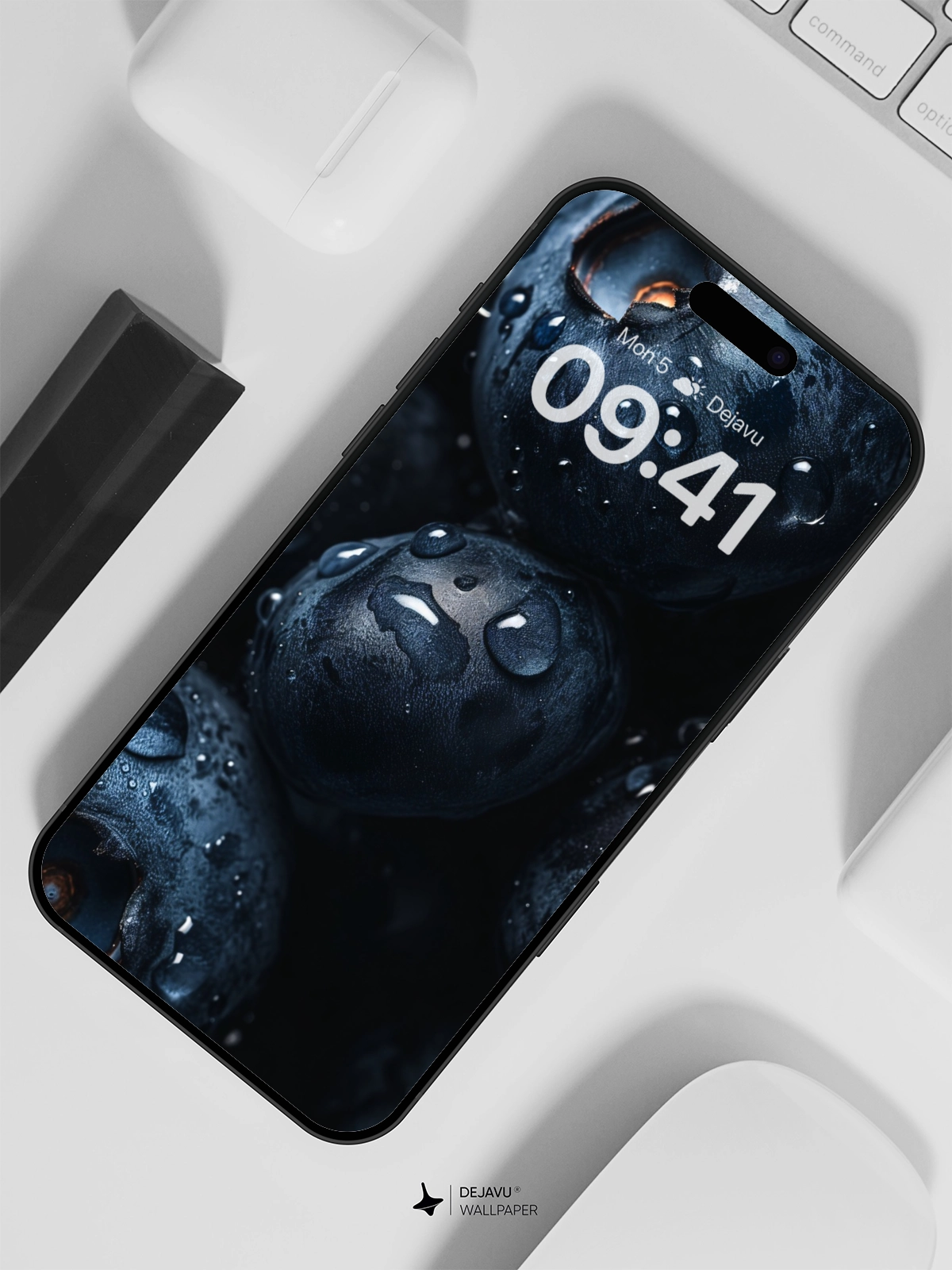 This 8K minimal aesthetic wallpaper showcases a close-up of fresh blueberries with glistening water droplets, capturing the essence of natural beauty and freshness. The high-resolution image is ideal for enhancing the screens of iPhone, Android, and tablets, offering a visually pleasing and calming background that complements any device.