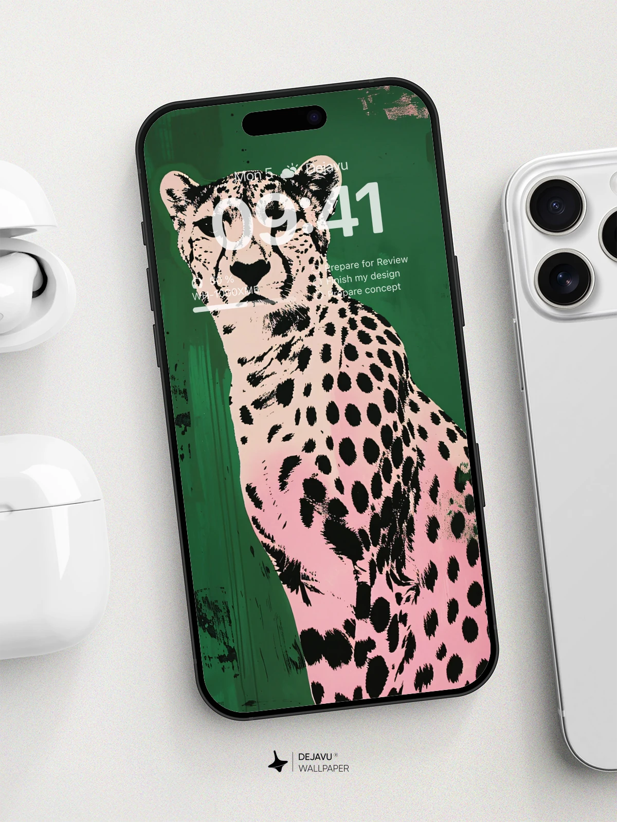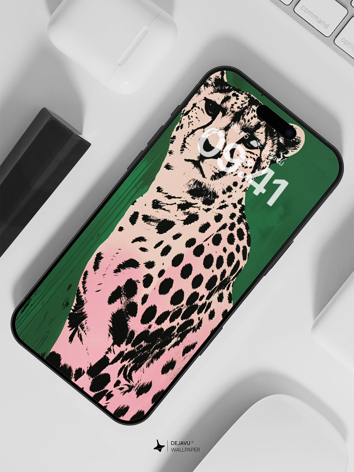 This 8K minimal aesthetic wallpaper showcases a beautifully illustrated cheetah with a striking contrast against a vibrant green and pink gradient background. The design is perfect for tech enthusiasts looking to add a touch of nature and color to their iPhone or Android devices. The high resolution ensures crisp and clear visuals, making it an ideal choice for both phones and tablets.