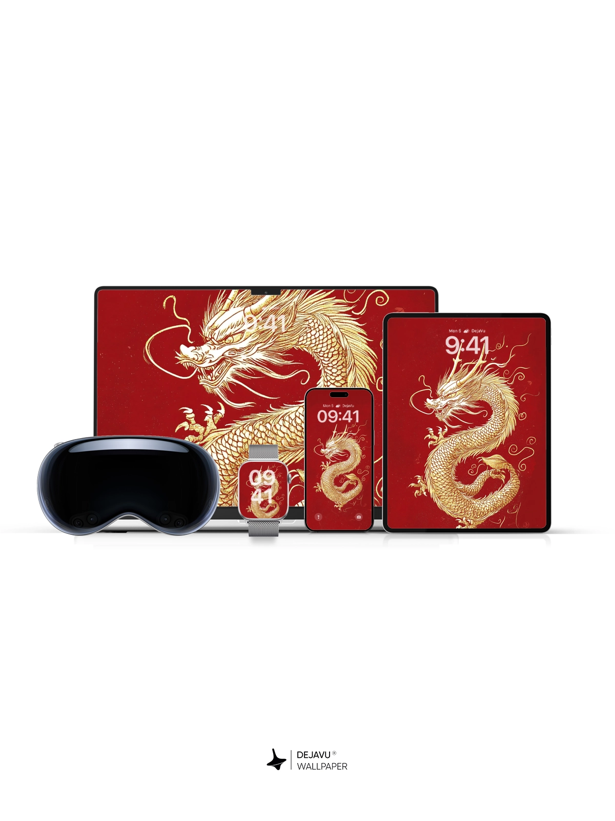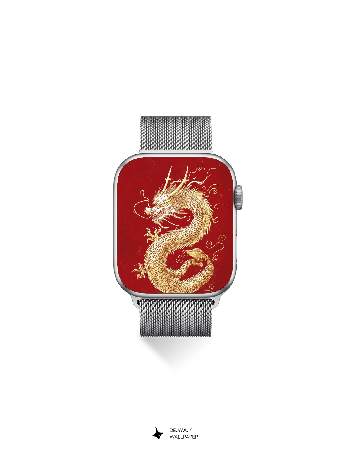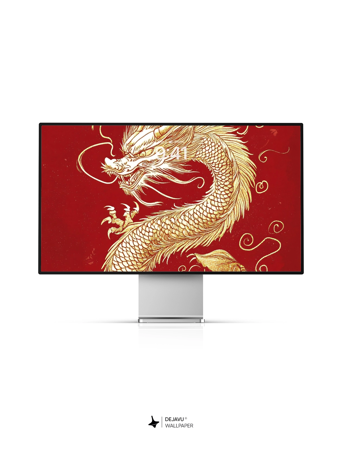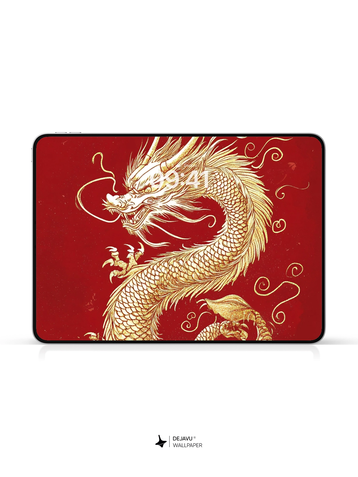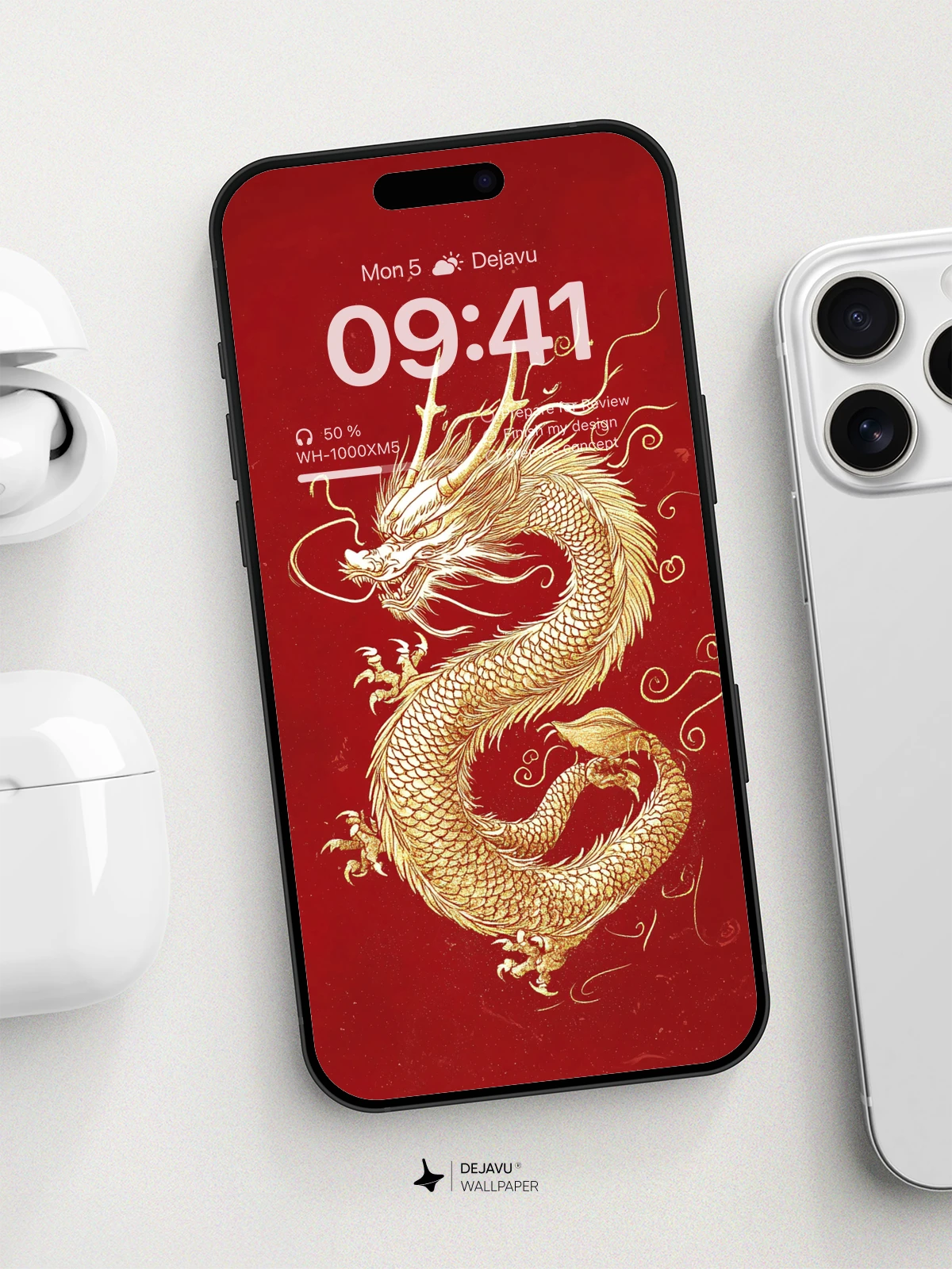 This 8K minimal aesthetic wallpaper showcases a beautifully detailed golden Chinese dragon set against a deep red background. The intricate design and vibrant colors make it a captivating choice for both iPhone and Android users looking to add a touch of elegance and cultural significance to their device screens.