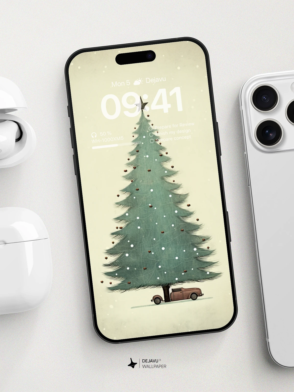 Transform your device with this 8K minimal aesthetic Christmas tree painting wallpaper. Featuring a whimsical design with a vintage car and a beautifully decorated tree, it captures the essence of holiday cheer. Perfect for both iPhone and Android devices, this wallpaper adds a touch of warmth and nostalgia to your screens.