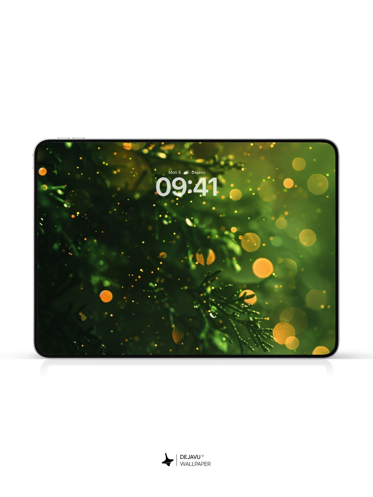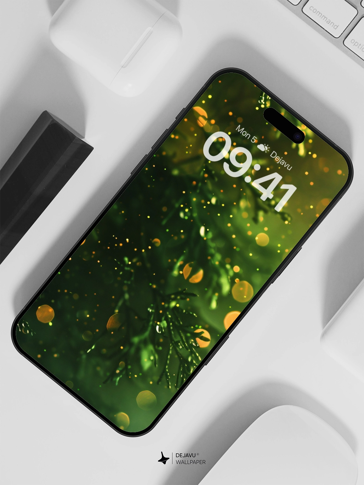 Transform your screen with this breathtaking 8K minimal aesthetic Christmas tree wallpaper. The image captures the essence of the holiday season with its vibrant green foliage and golden bokeh lights, creating a warm and festive atmosphere. Perfect for both iPhone and Android devices, this wallpaper adds a touch of elegance and joy to your daily interactions.