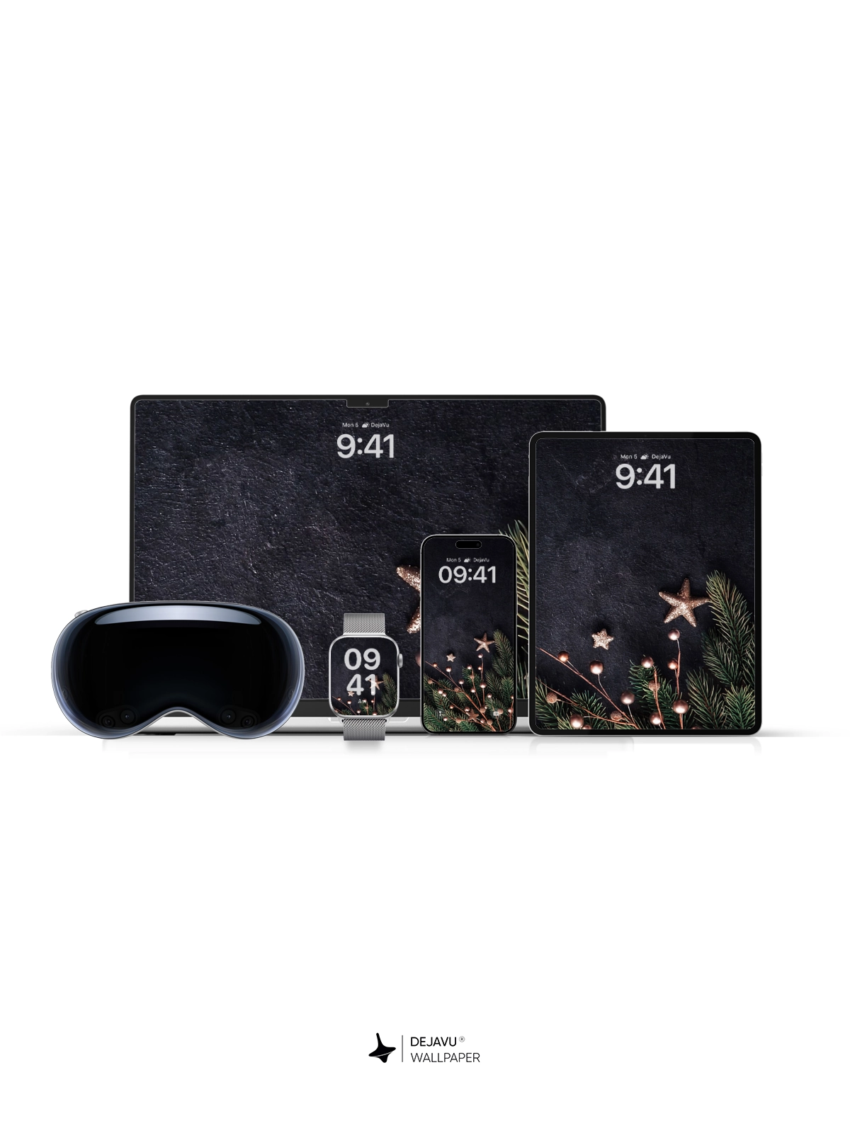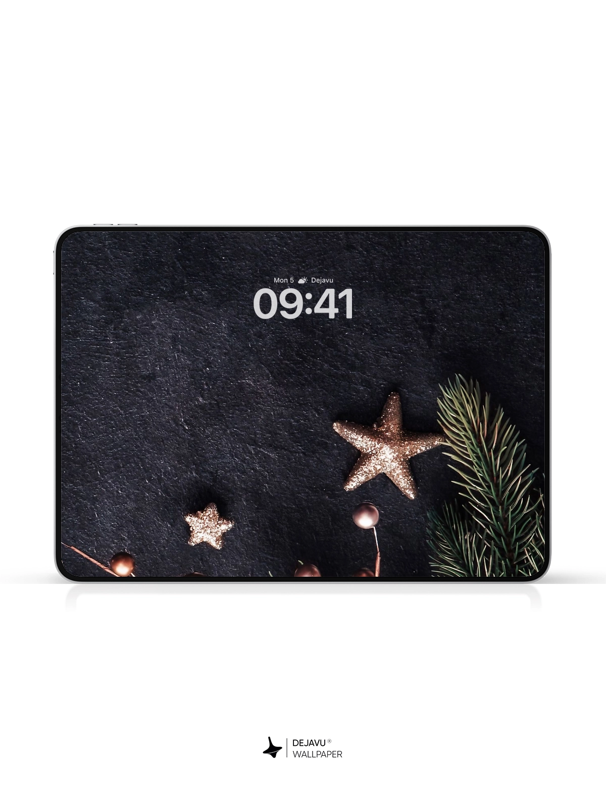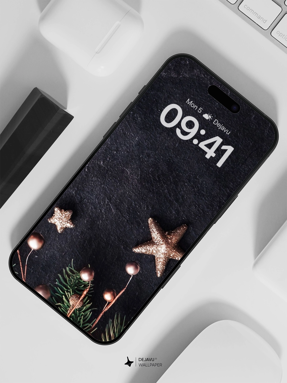 Transform your device with this 8K minimal aesthetic Christmas wallpaper. The design features lush pine branches adorned with delicate golden stars and beads, set against a deep black background. This wallpaper evokes a sense of calm and festive cheer, making it perfect for the holiday season. Compatible with both iPhone and Android devices, as well as tablets, it adds a touch of elegance to any screen.