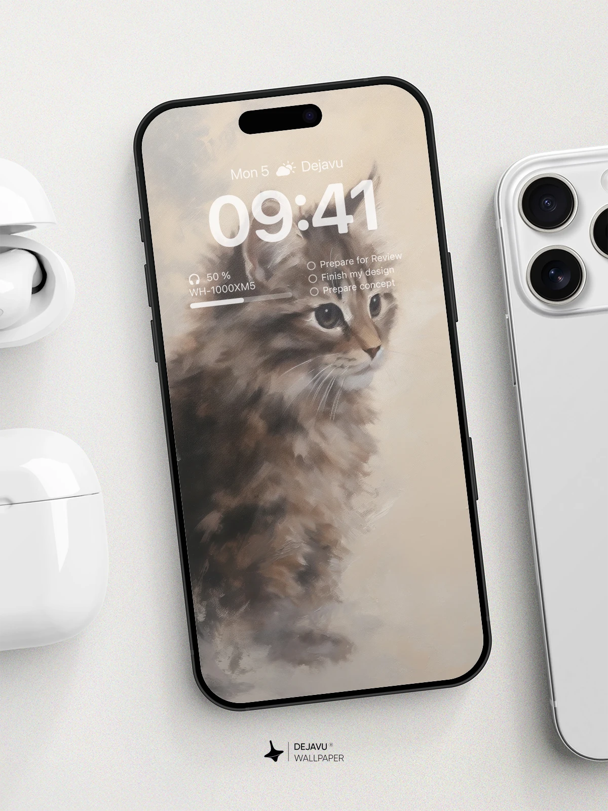 This 8K wallpaper features a charming cat painting with soft, gradient colors that evoke a sense of calm and warmth. Perfect for those who love minimal aesthetics, this image is compatible with both iPhone and Android devices, making it an ideal choice for your phone’s background.