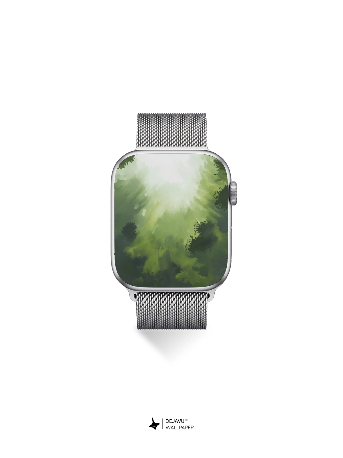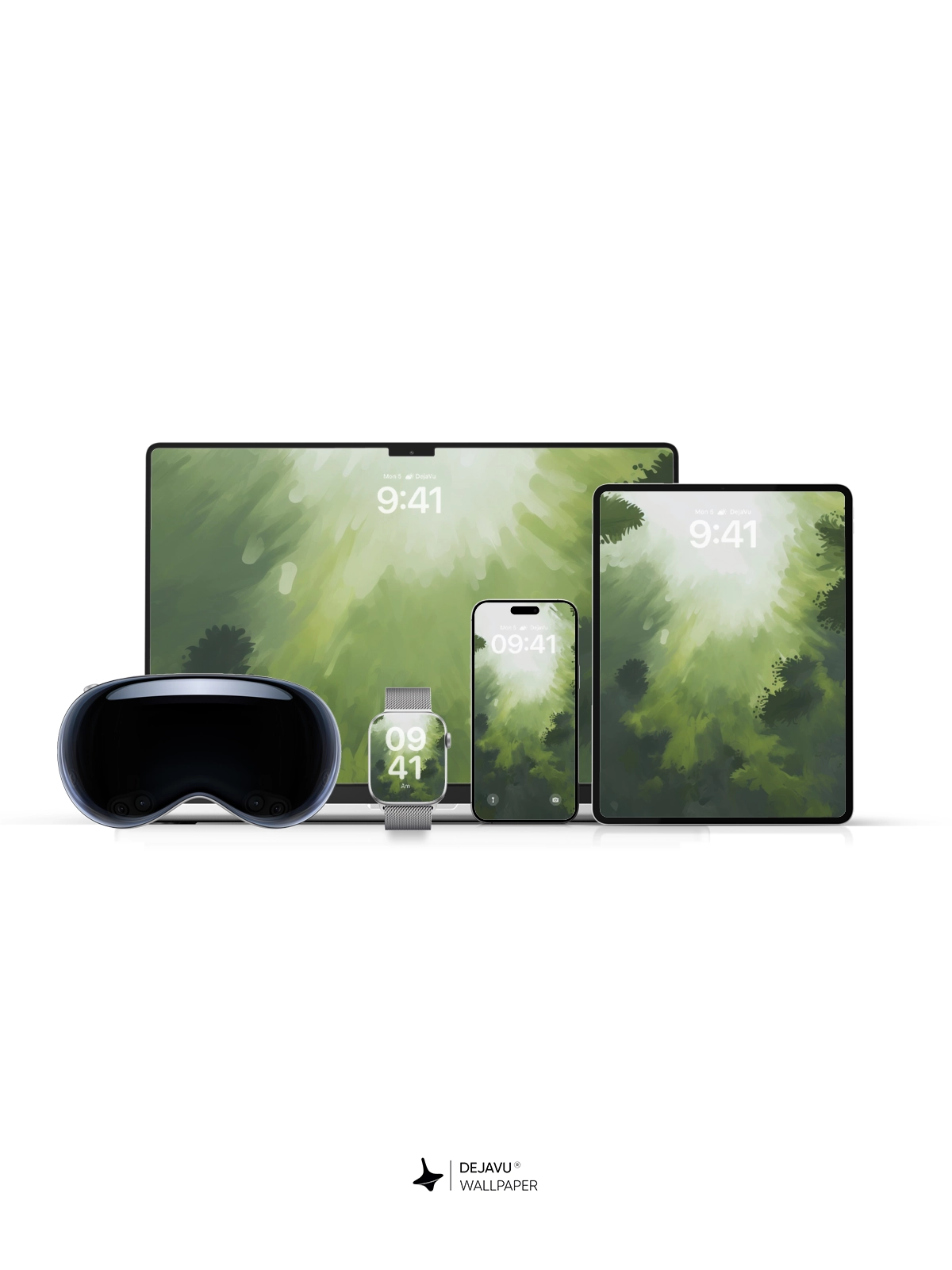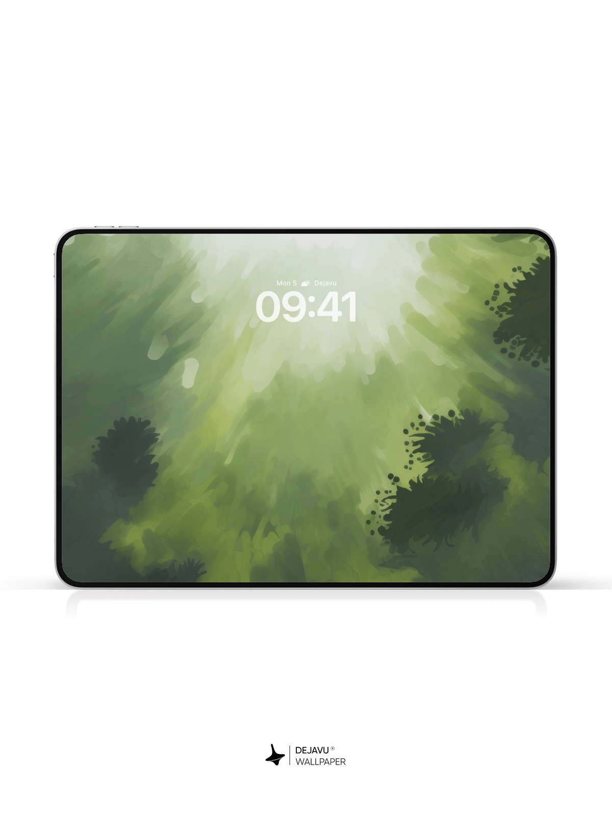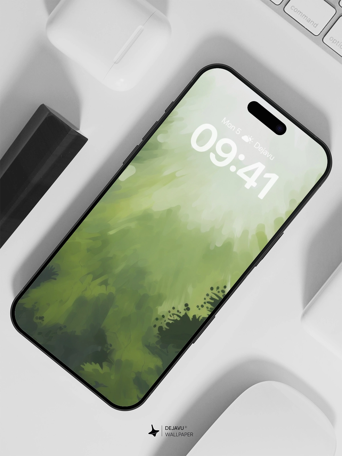Immerse yourself in the tranquil atmosphere of a dense forest with this stunning 8K minimalistic illustration wallpaper. The soft gradient of greens and the play of light through the canopy create a soothing and calming effect. This wallpaper is perfect for enhancing the aesthetic appeal of your iPhone or Android device, bringing a touch of nature’s tranquility to your screens.