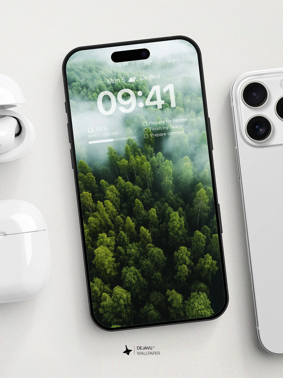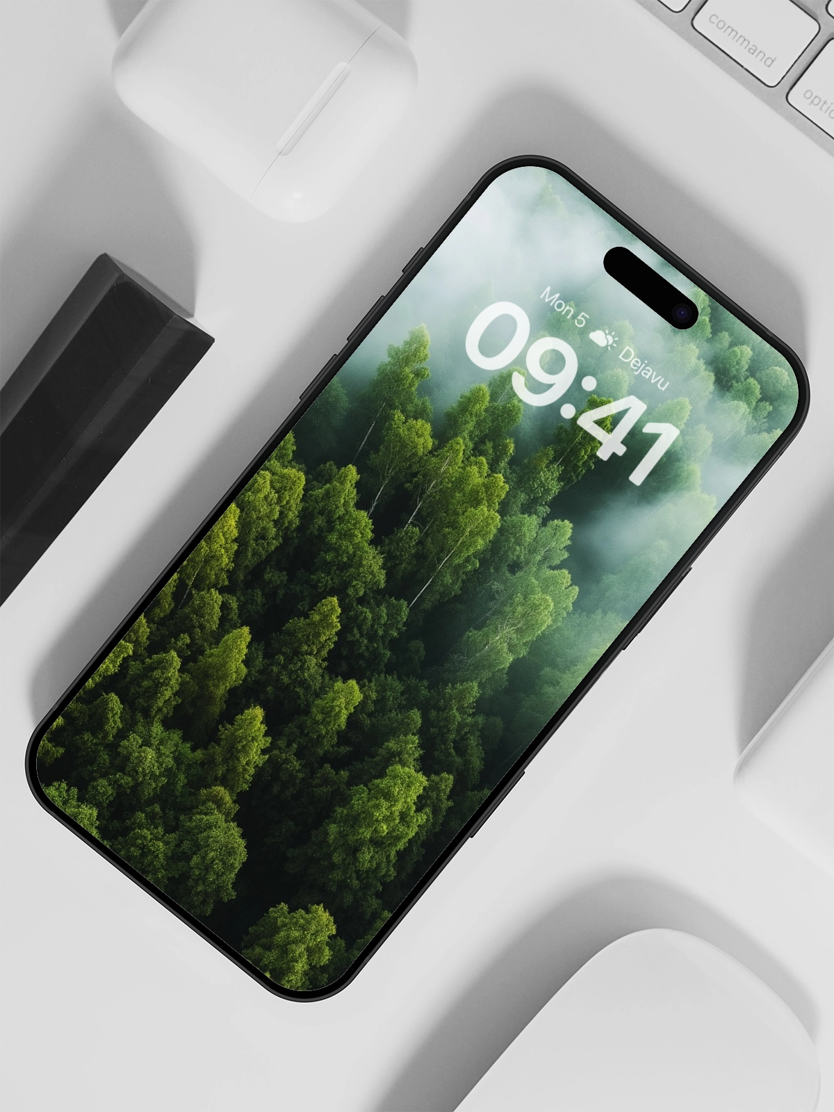 This 8K wallpaper captures the tranquil beauty of a dense forest enveloped in misty fog. The minimal aesthetic highlights the lush green trees, creating a calming and immersive experience. Ideal for enhancing the screens of your iPhone, Android, or tablets.