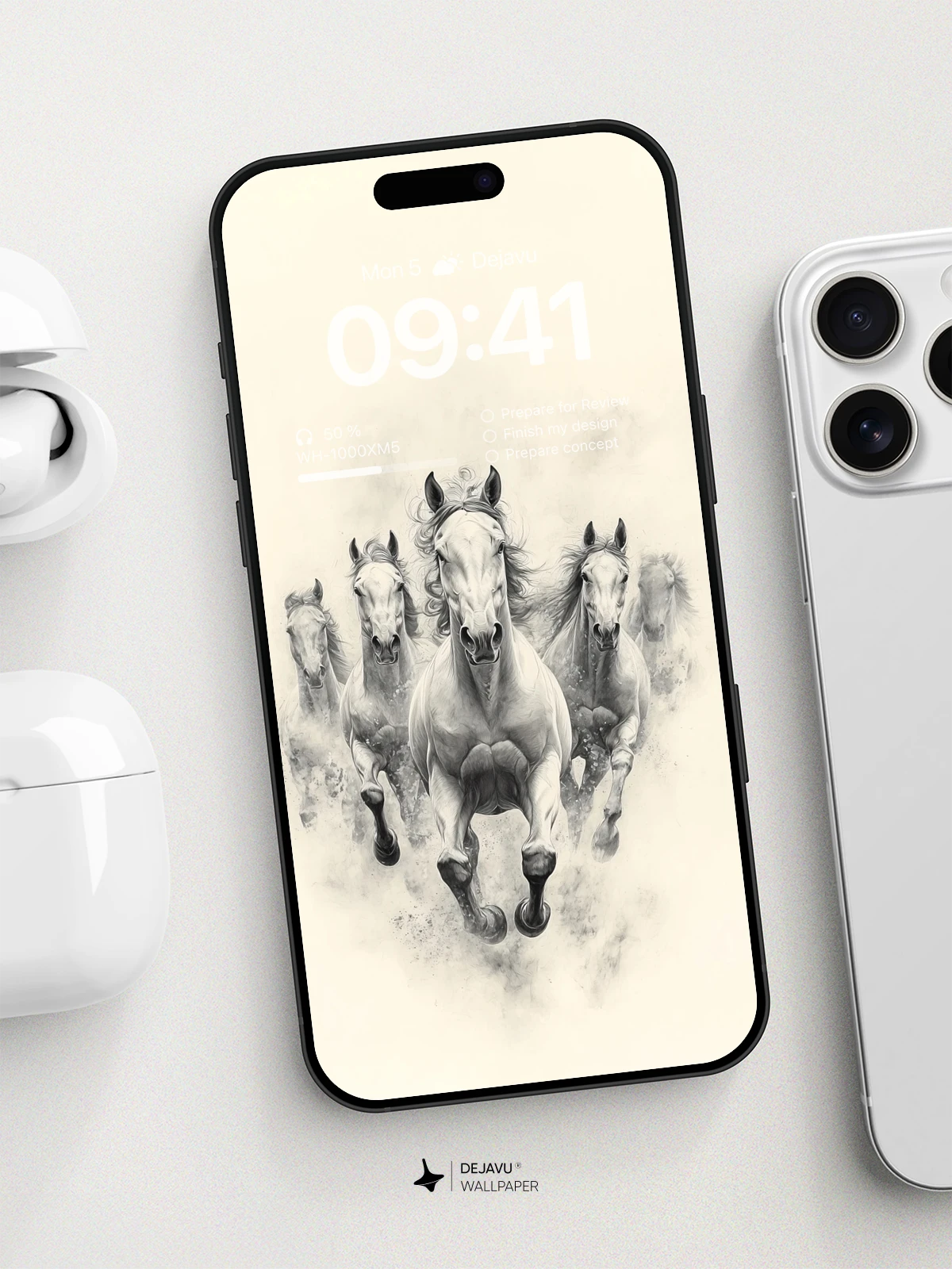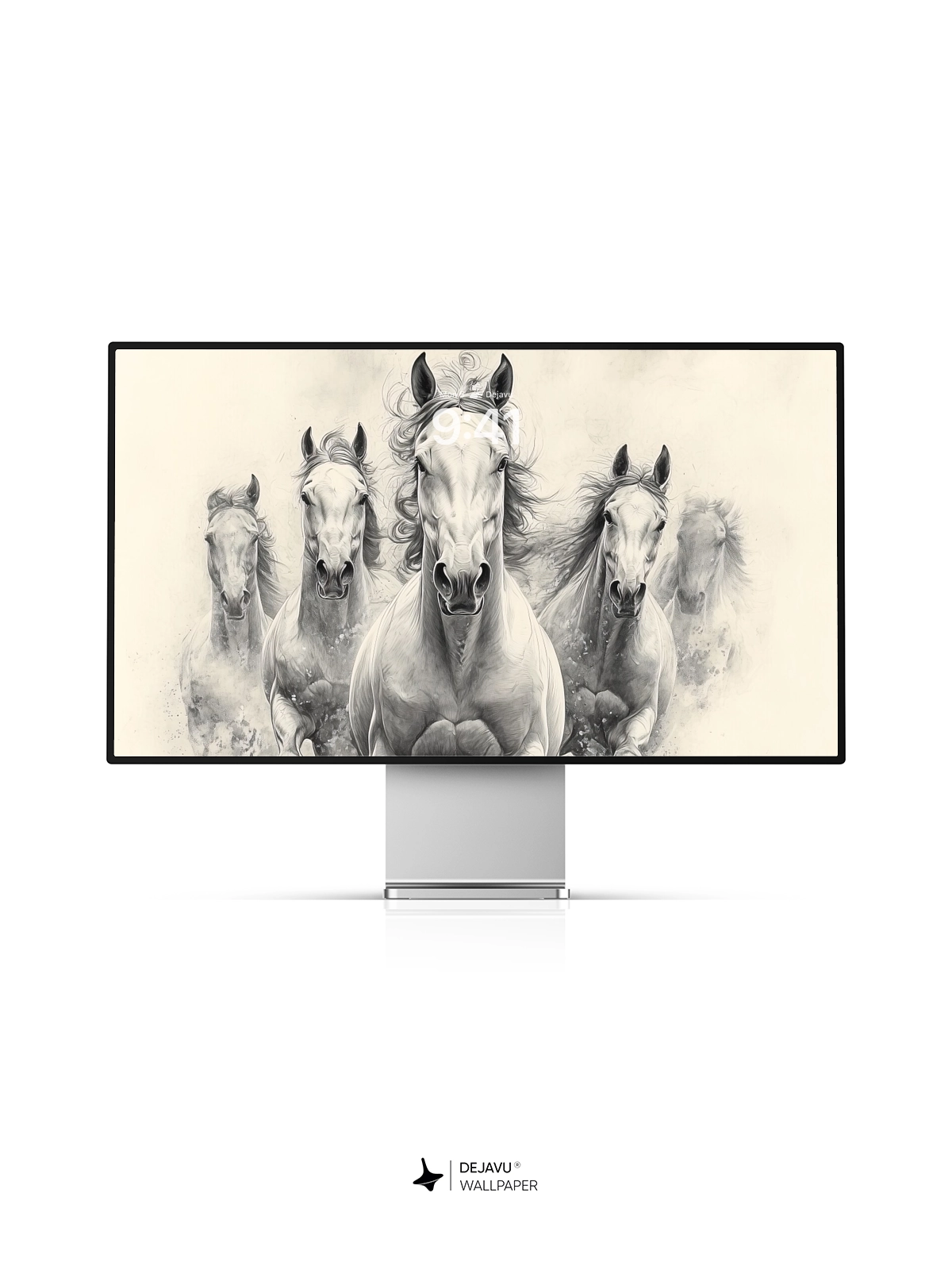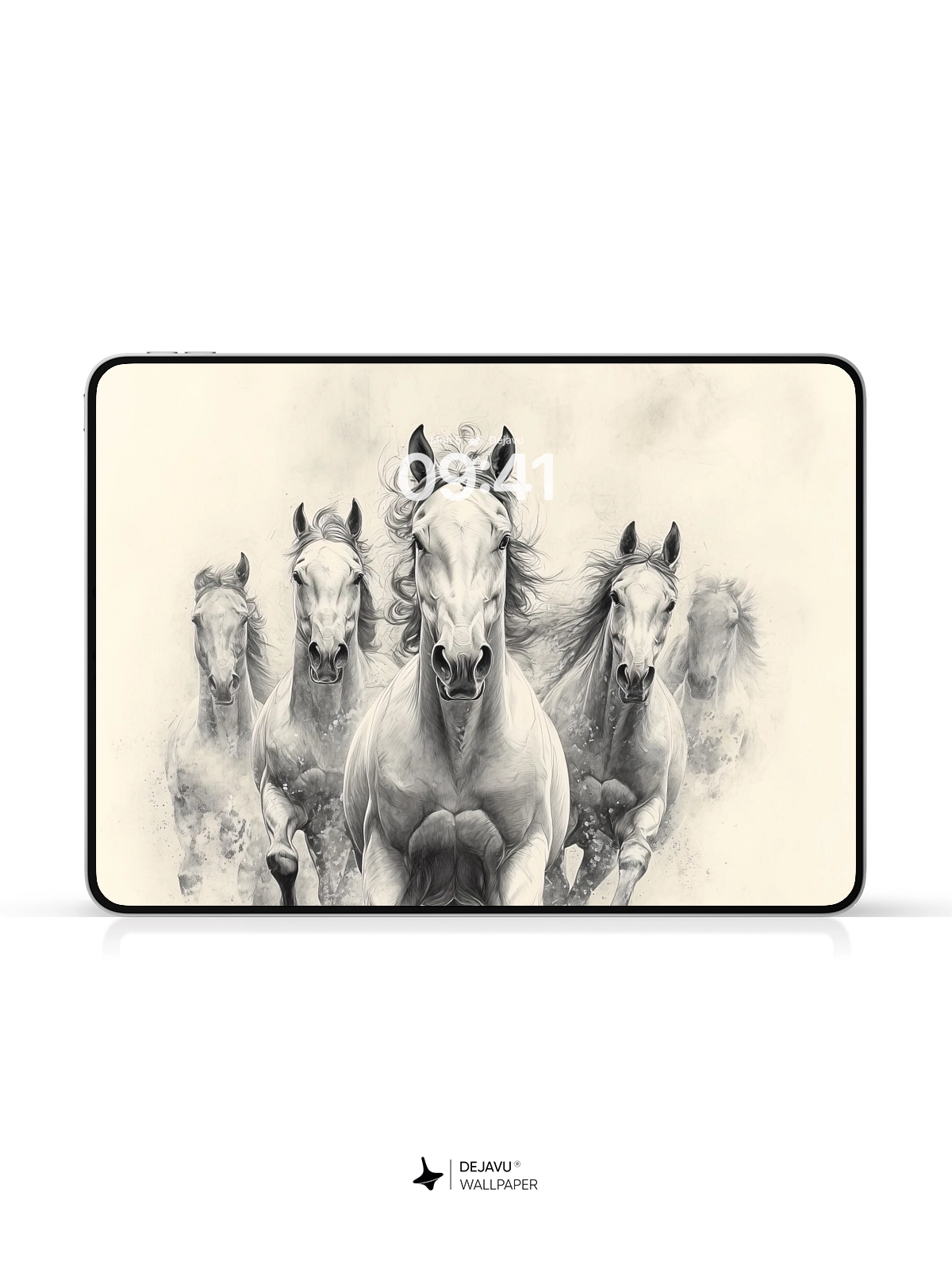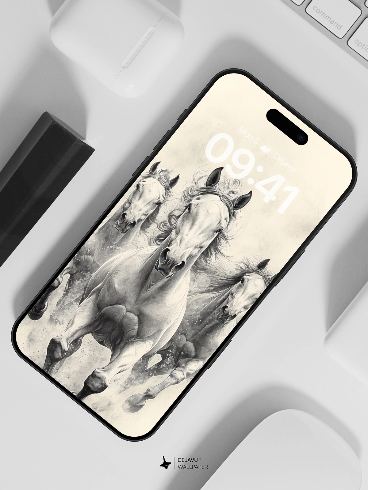 Experience the beauty and power of nature with this 8K minimal aesthetic horse illustration wallpaper. The monochromatic design captures the elegance and grace of a galloping herd, evoking a sense of freedom and movement. Ideal for enhancing the look of your iPhone or Android device, this wallpaper brings a touch of artistic sophistication to your screen.