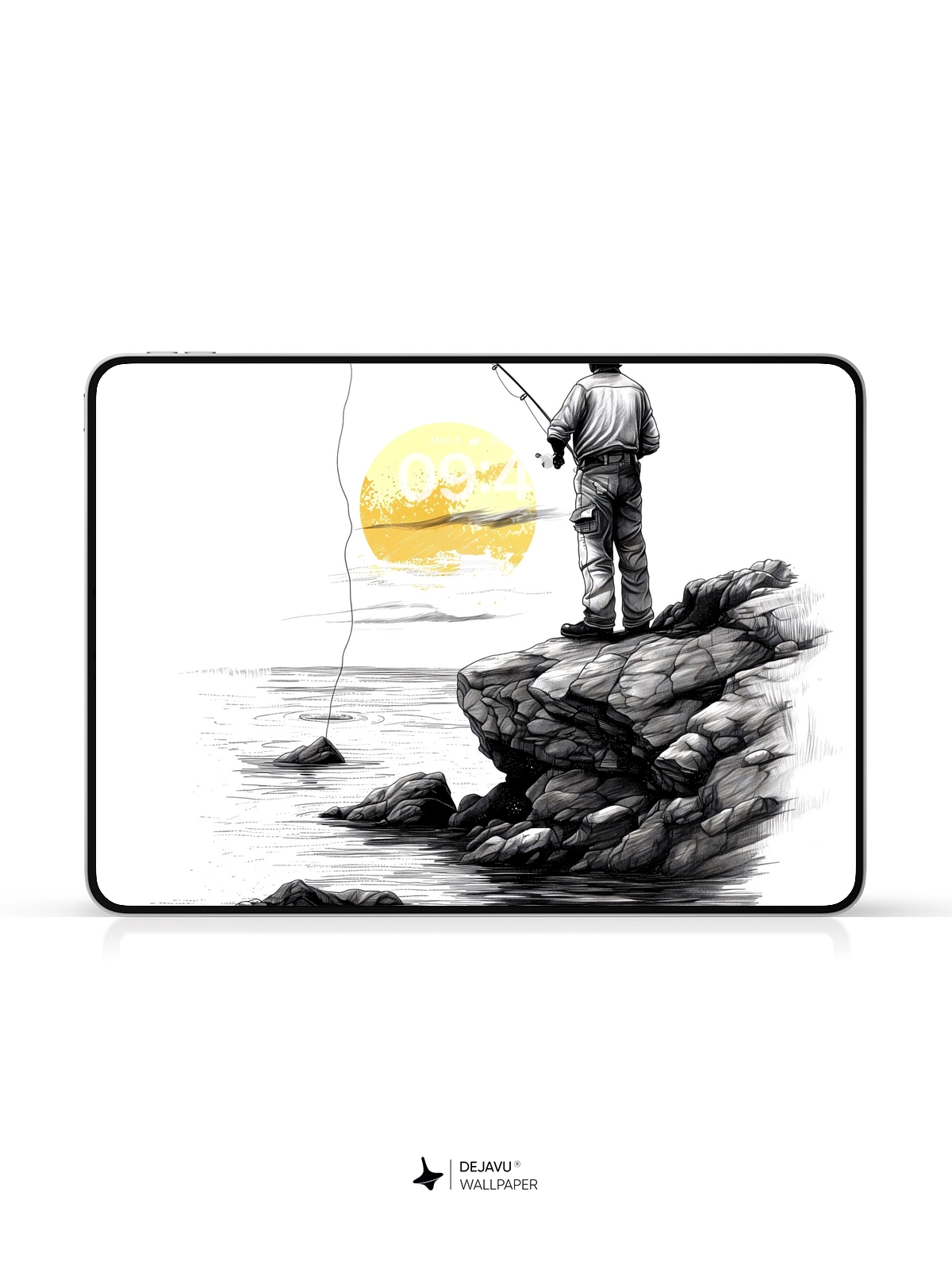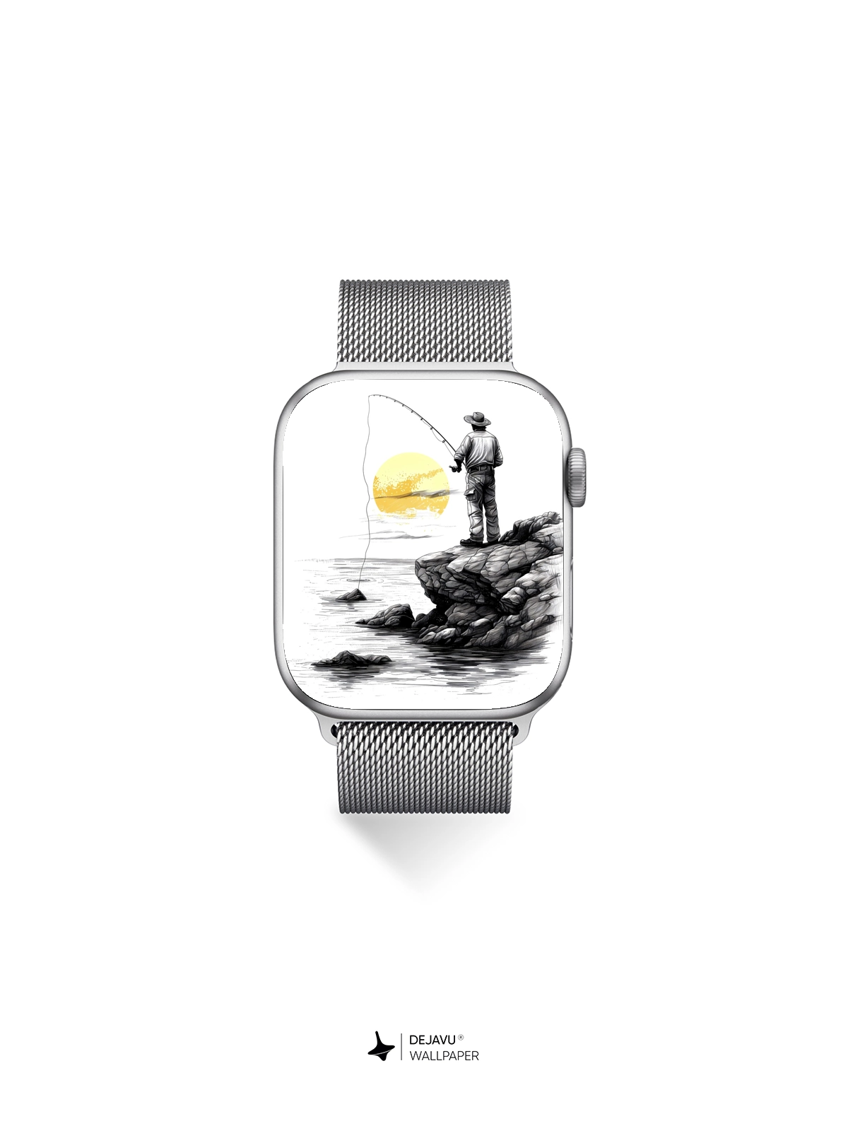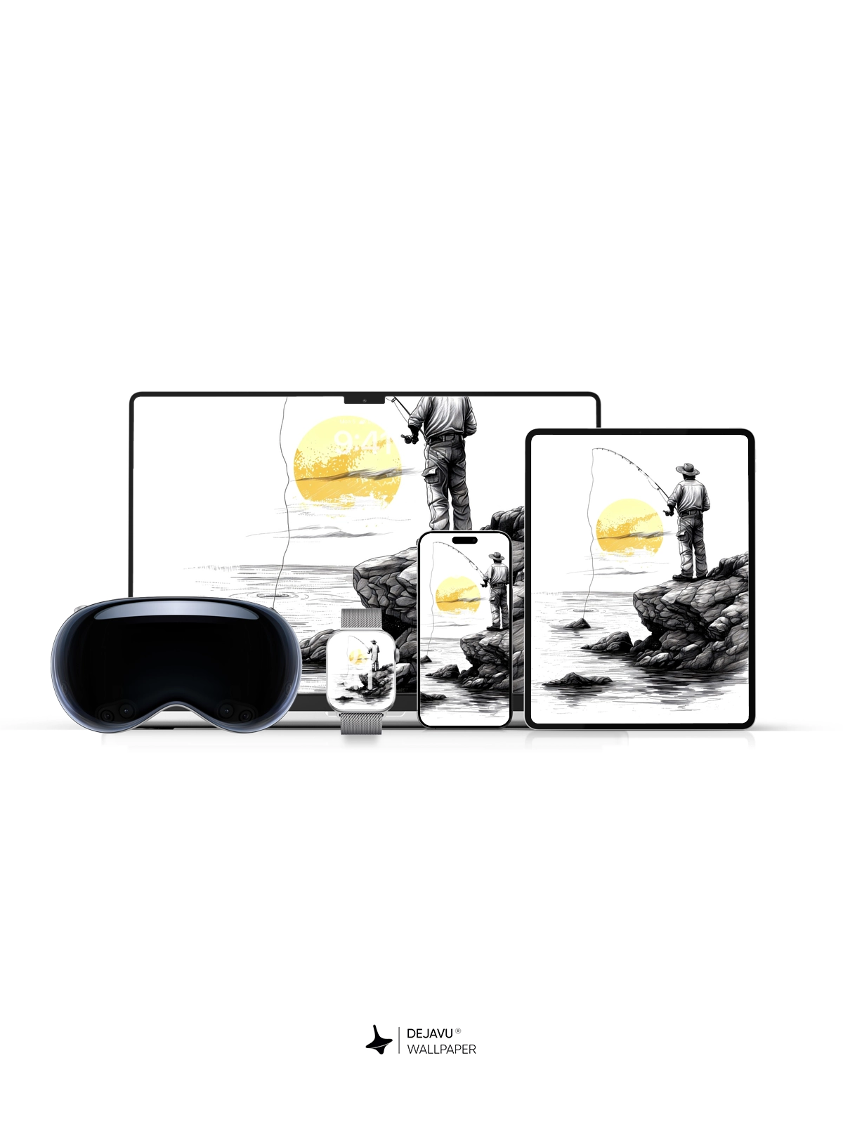 This 8K minimalistic illustration captures the tranquil moment of a fisherman casting his line into the water as the sun sets. The monochrome palette with a splash of yellow adds a touch of warmth and serenity. Ideal for those who appreciate minimalist art, this wallpaper is compatible with iPhone, Android, and tablets, offering a peaceful and calming backdrop.