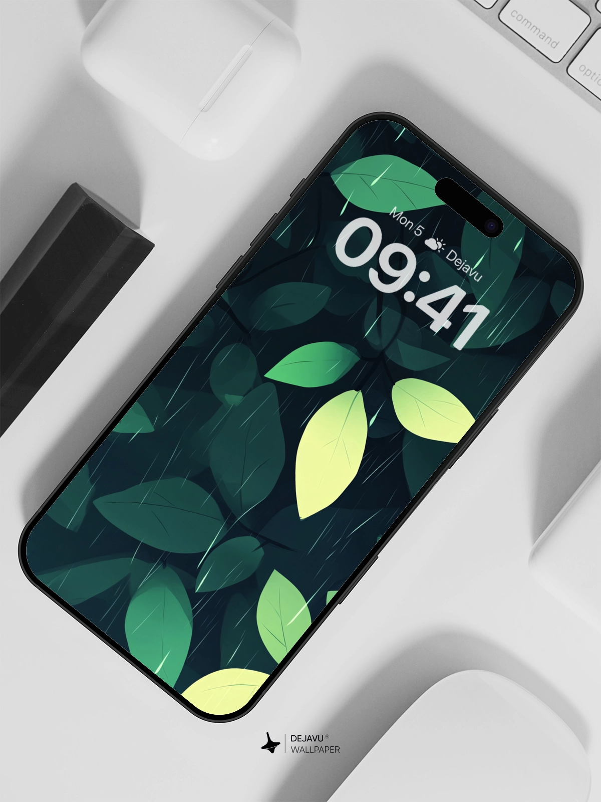 Experience the calming beauty of nature with this 8K minimal aesthetic illustration of rainy leaves. The soft gradient and subtle colors create a soothing atmosphere, making it an ideal wallpaper for your iPhone or Android device. Perfect for those who appreciate the simplicity and tranquility of natural elements.