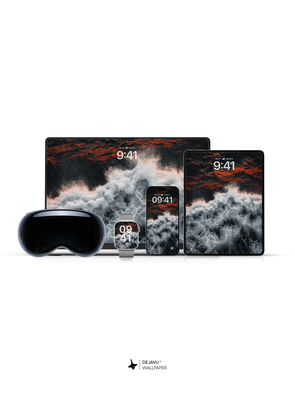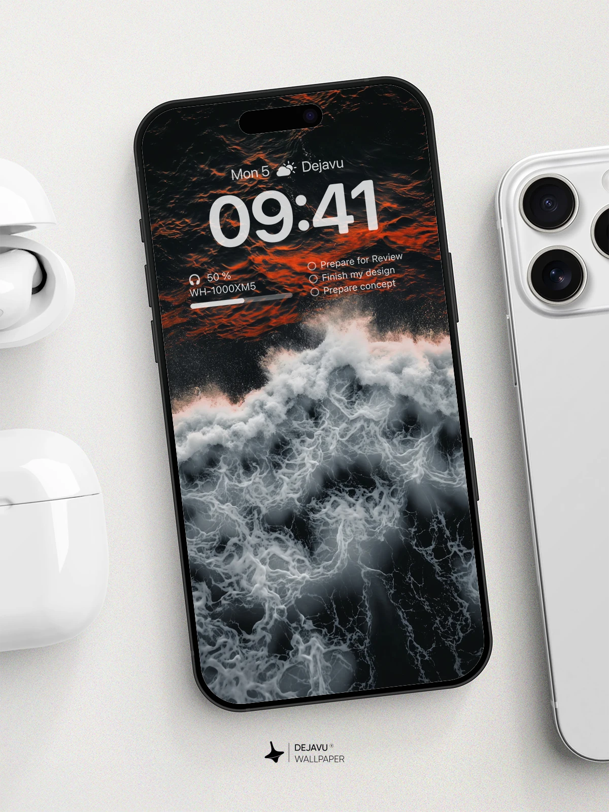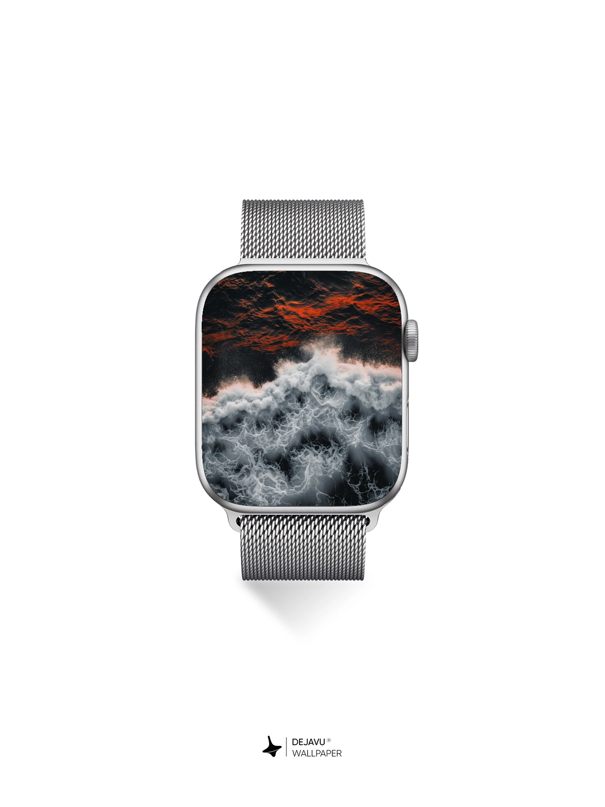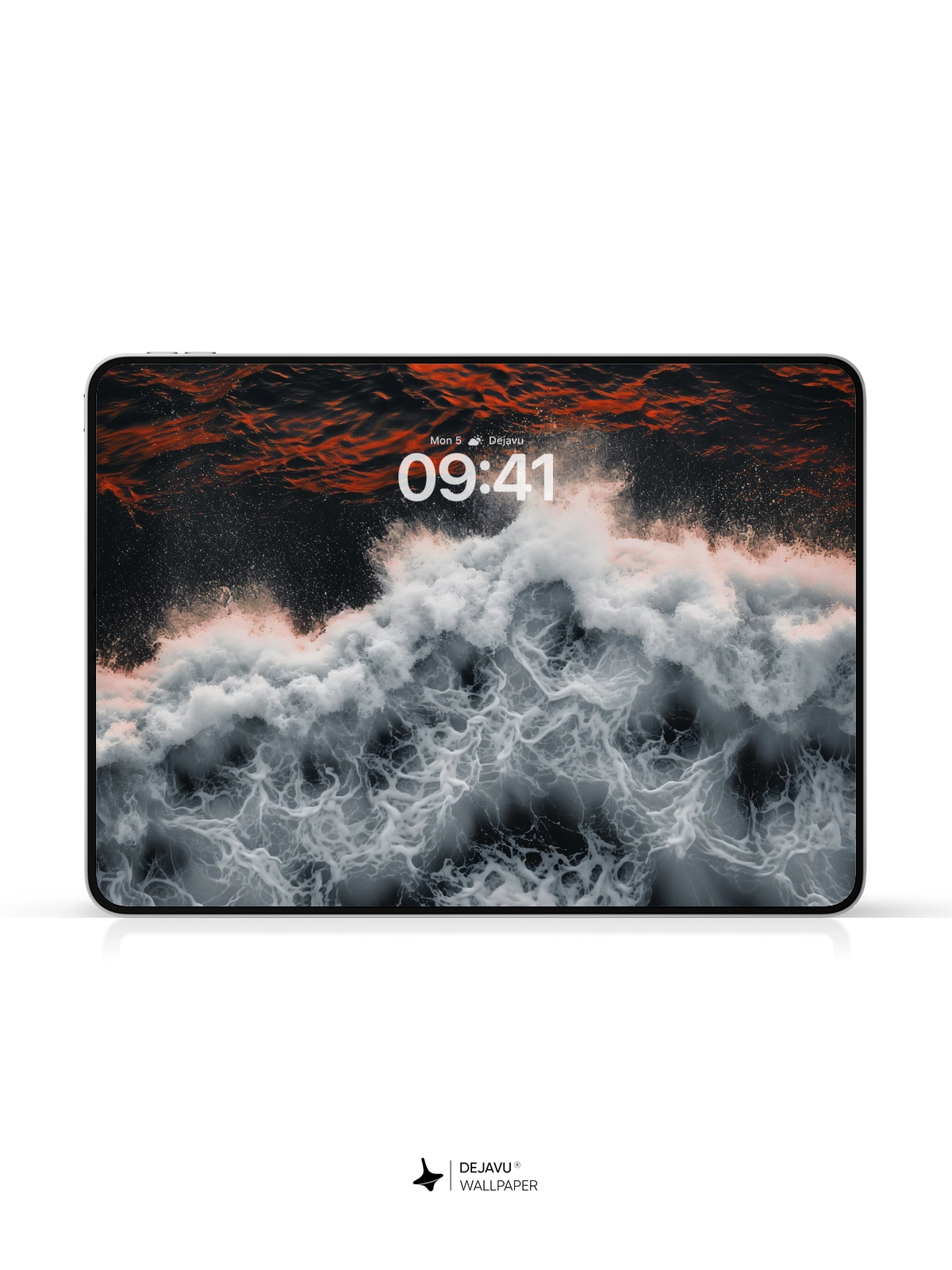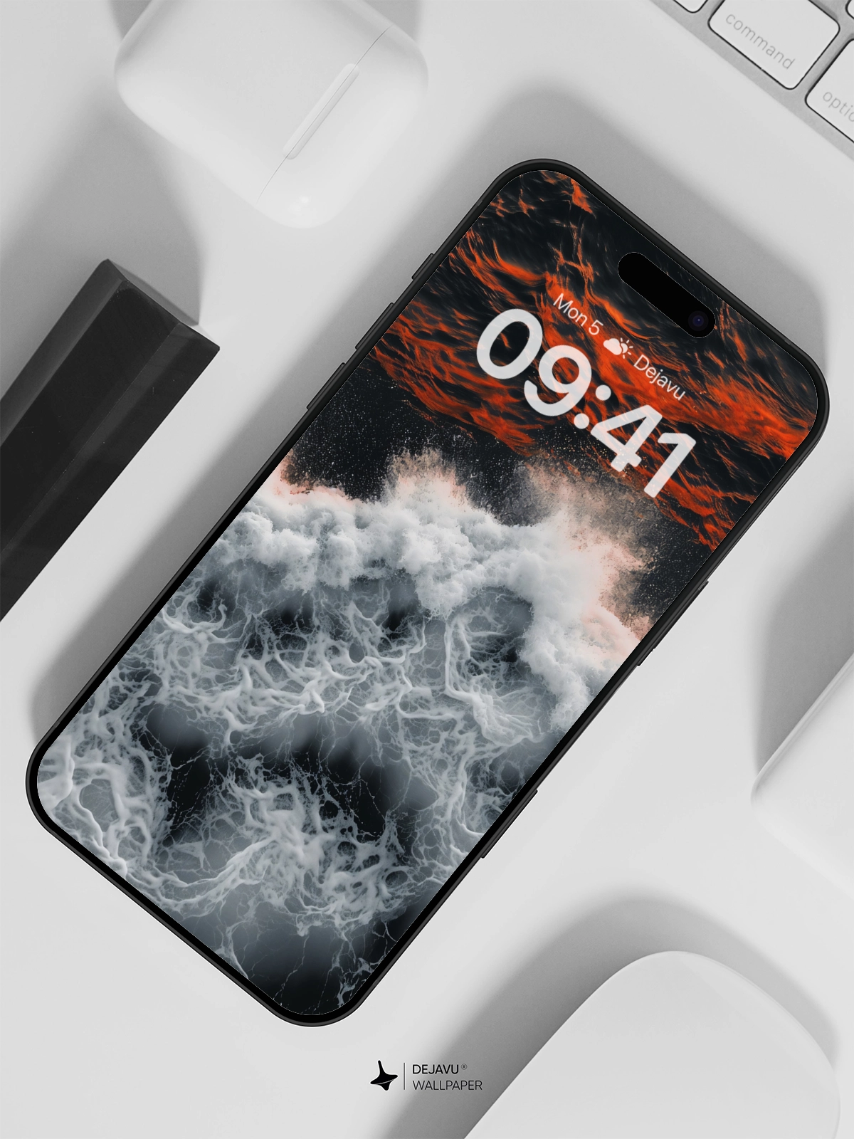 This 8K wallpaper captures the raw beauty of the ocean with its dramatic waves and fiery red contrasts against a deep black background. The minimalist design evokes a sense of awe and tranquility, making it ideal for those who appreciate high-quality, visually striking wallpapers on their iPhone or Android devices.