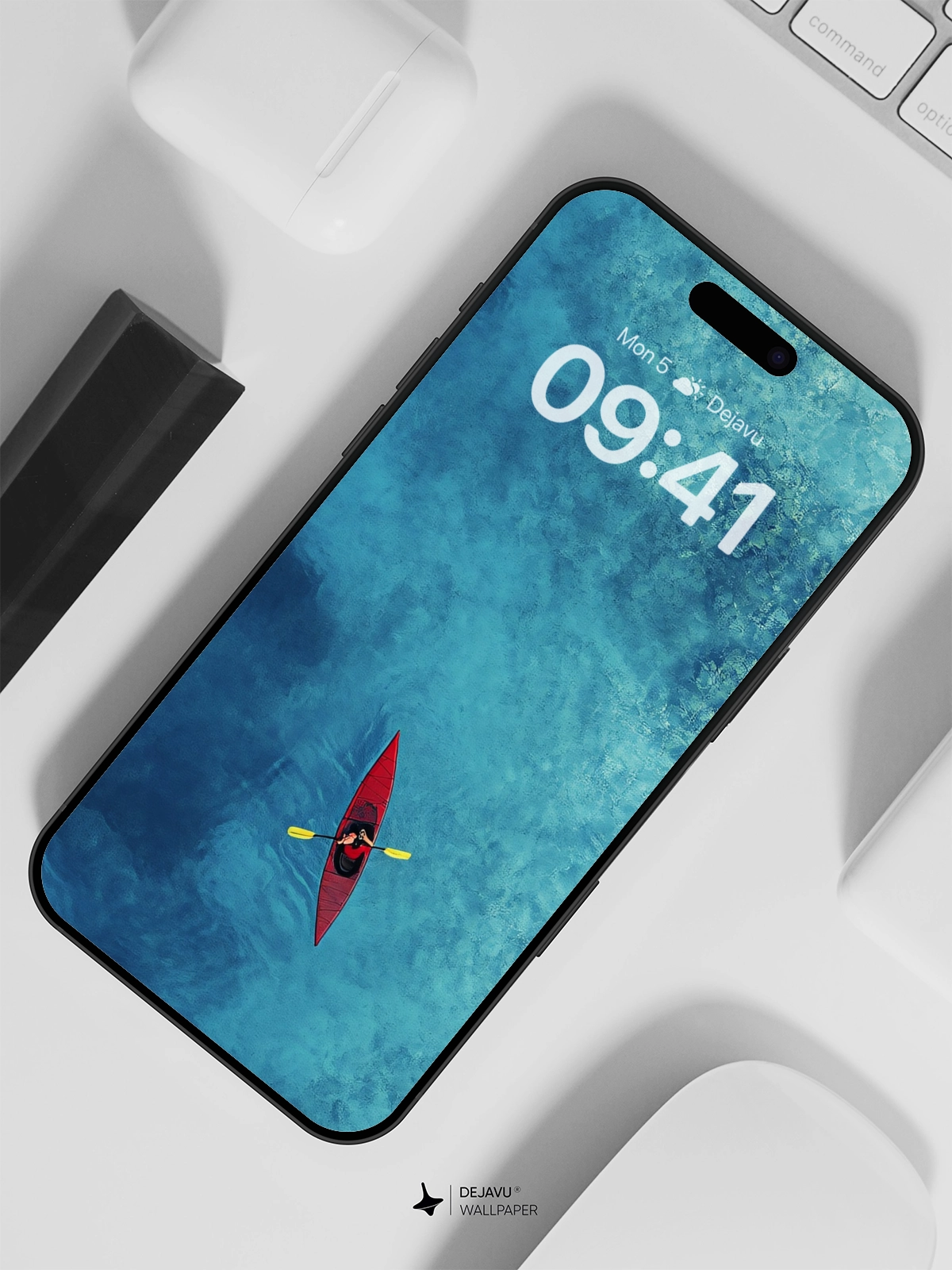 Experience the tranquil beauty of kayaking with this stunning 8K minimal aesthetic wallpaper. The image captures a solitary red kayak on a vast, crystal-clear ocean, evoking a sense of peace and adventure. Ideal for enhancing the screens of your iPhone, Android, or tablets, this wallpaper brings a touch of nature’s serenity to your device.