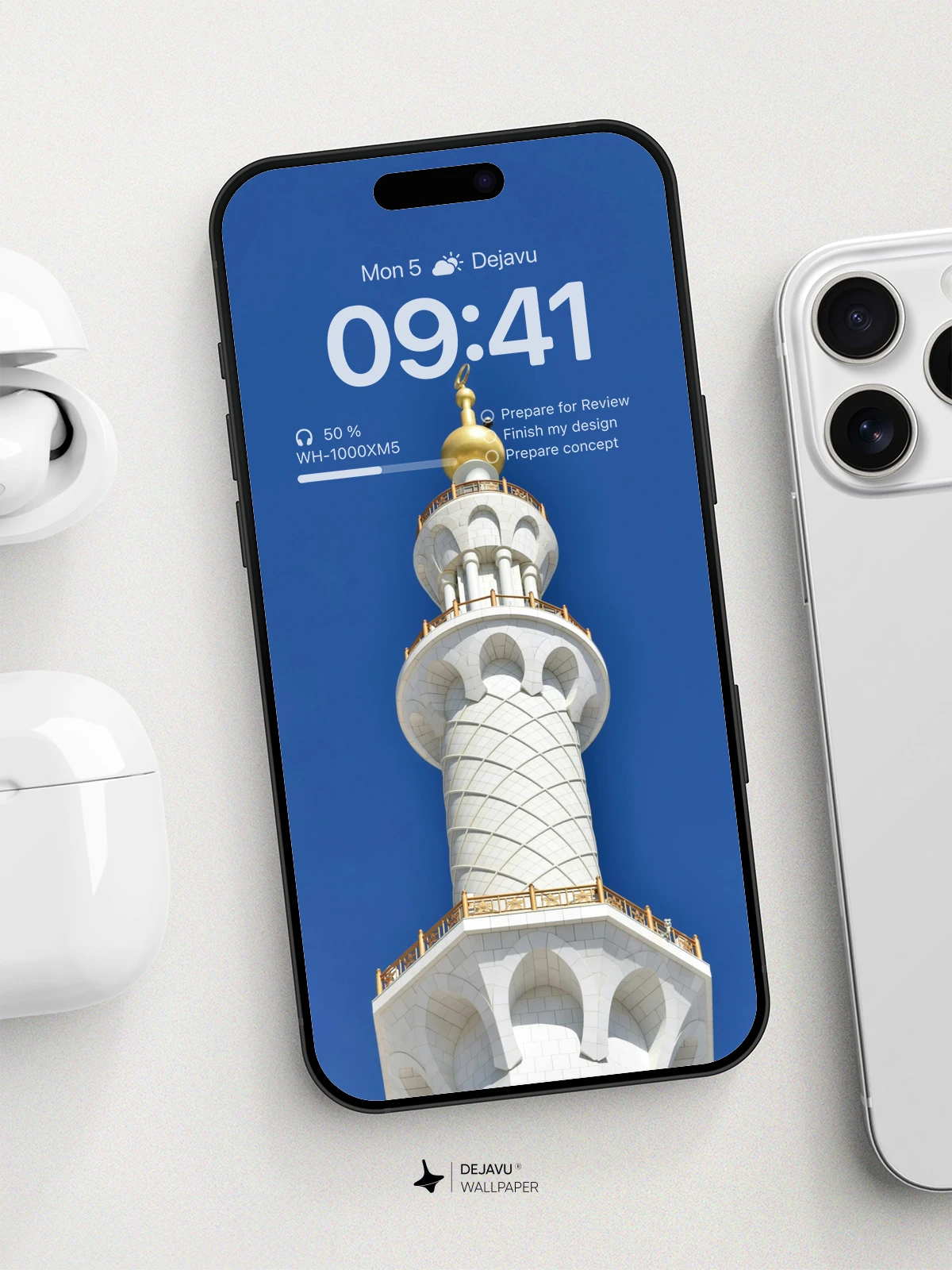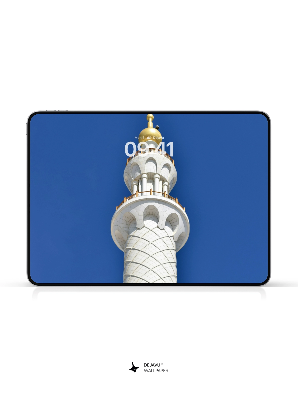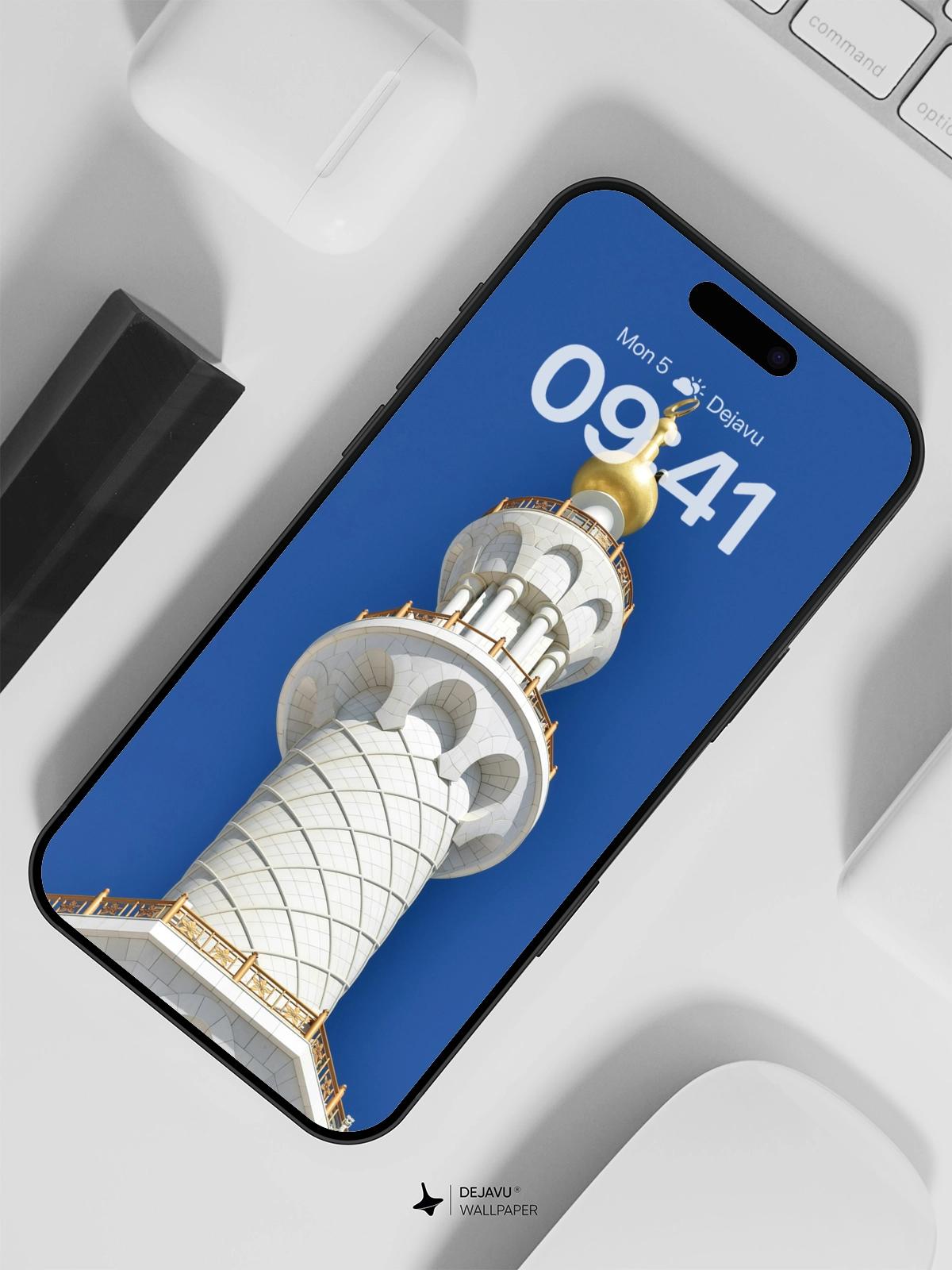 Explore the tranquil elegance of this 8K minimal aesthetic mosque tower wallpaper. The intricate design and serene colors make it a perfect choice for enhancing your iPhone, Android, or tablet screens. Download now to bring a touch of calm and beauty to your device.