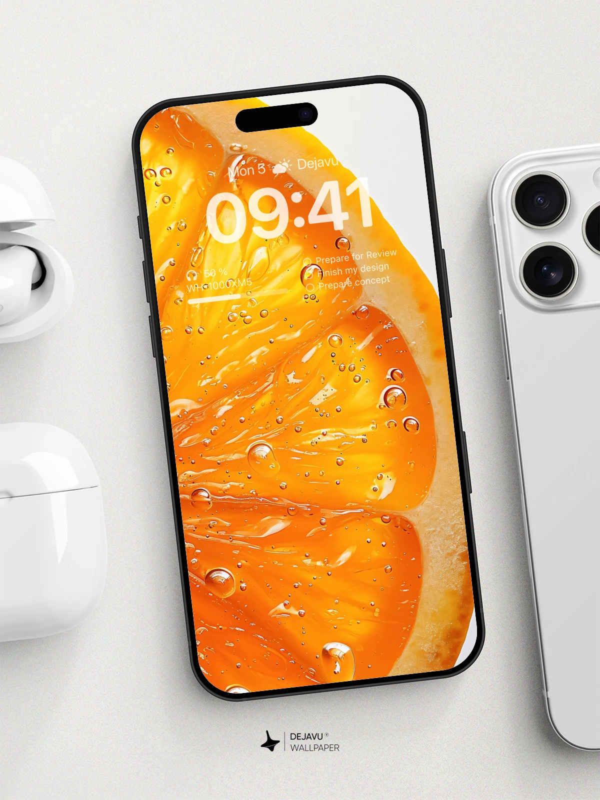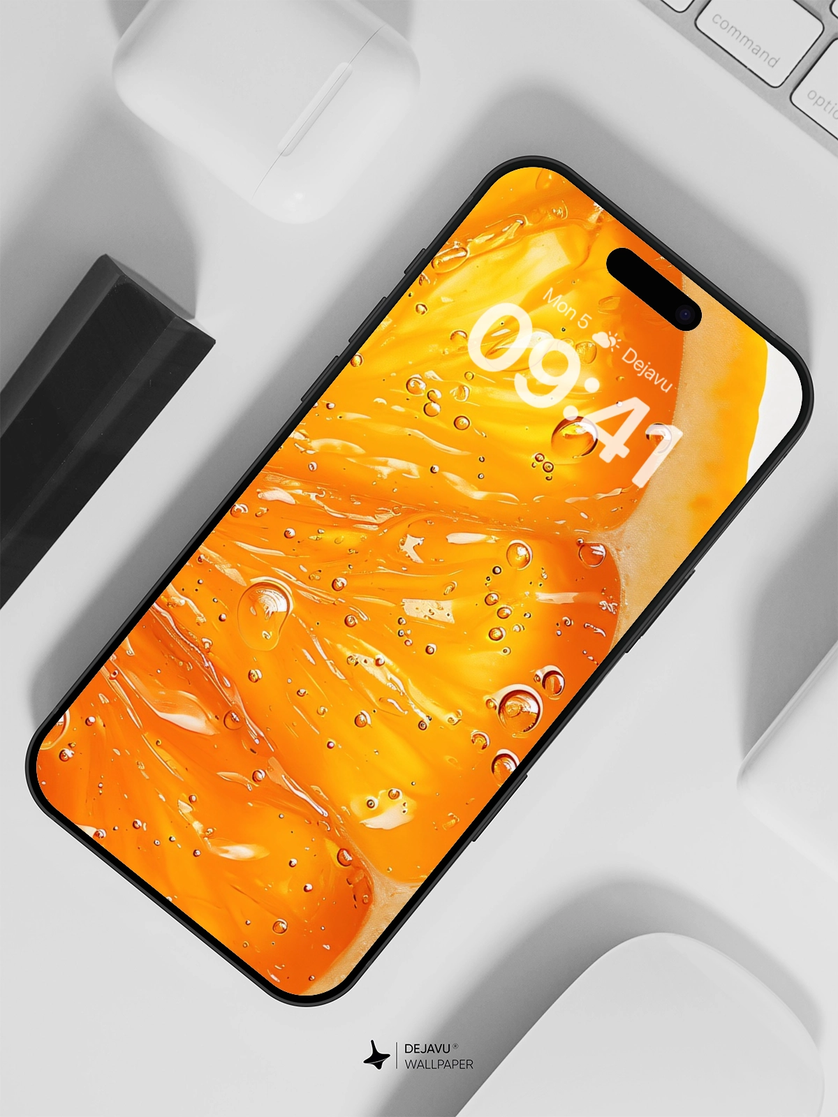 This 8K minimal aesthetic wallpaper showcases a vibrant orange slice with intricate details and water droplets, capturing the essence of freshness and purity. Ideal for enhancing the look of your iPhone or Android device, this wallpaper brings a touch of nature’s beauty to your screen.