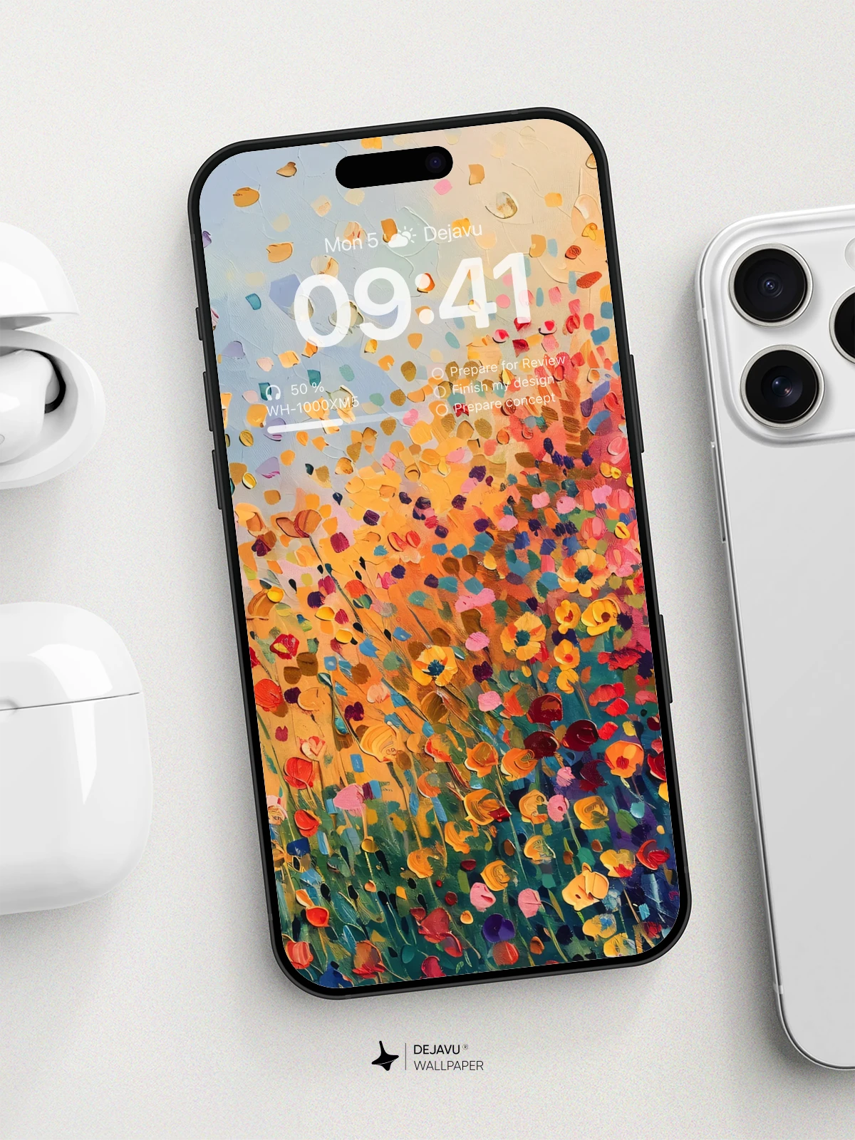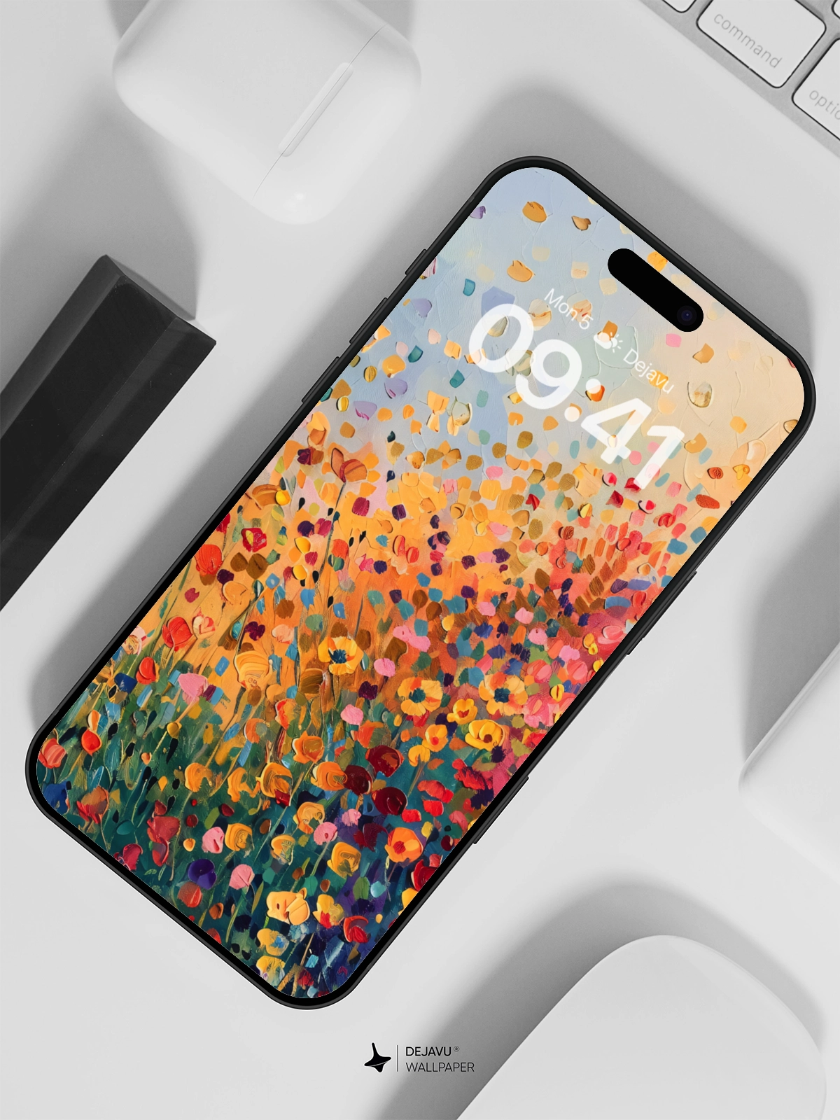 Transform your device with this stunning 8K minimal aesthetic wallpaper. The image captures a beautiful abstract painting of a flower field in vivid colors, creating a serene and uplifting atmosphere. Ideal for both iPhone and Android devices, this wallpaper adds a touch of artistry and tranquility to your screens.