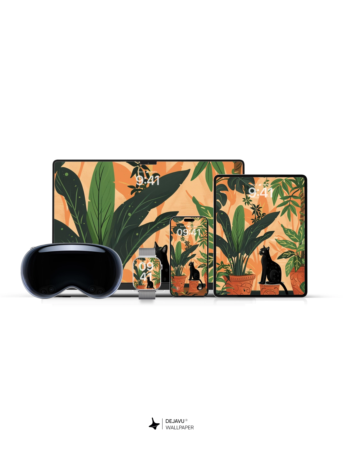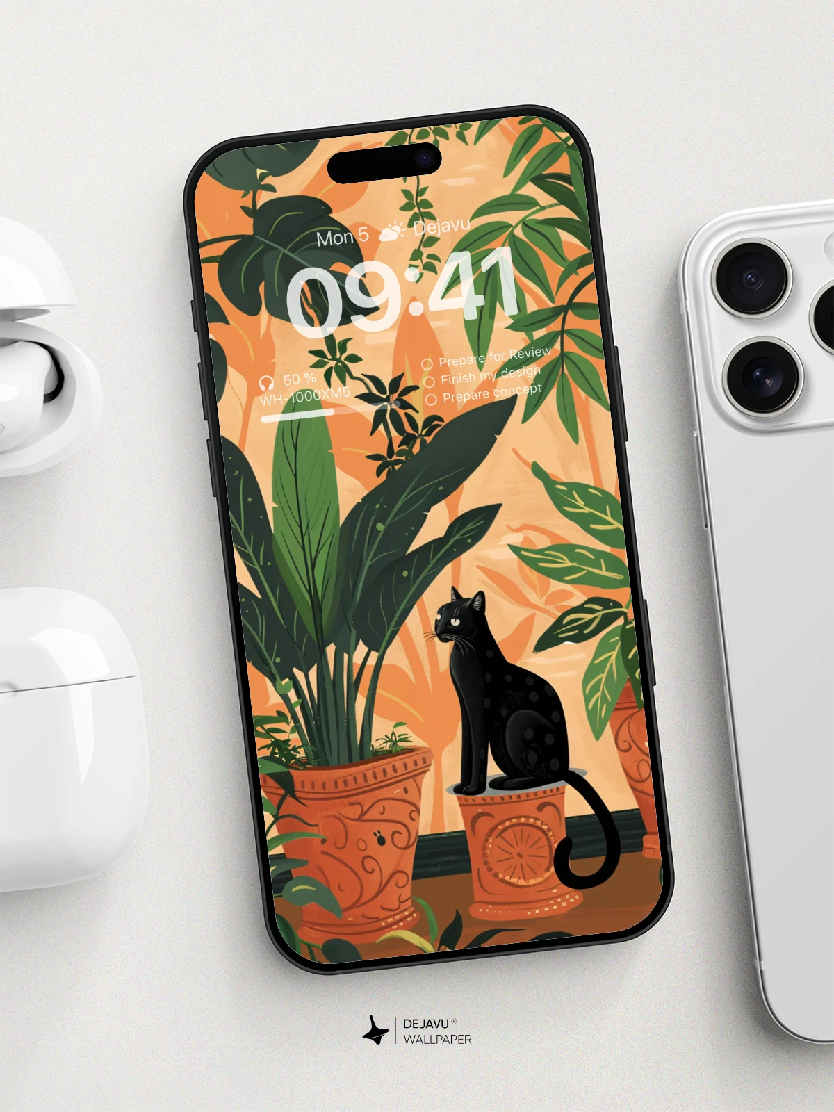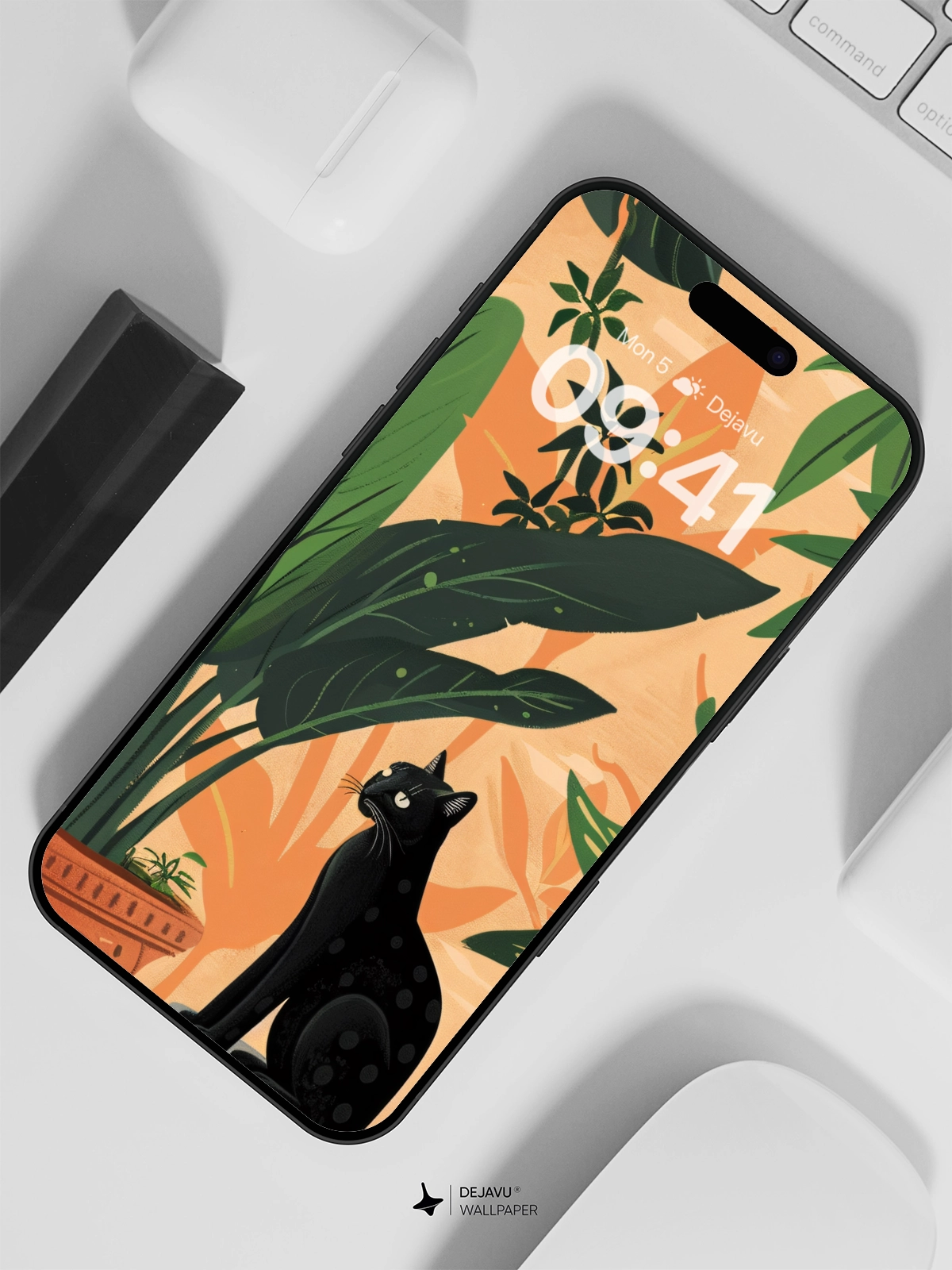 Transform your device with this 8K minimal aesthetic painting wallpaper. Featuring a charming black cat nestled among vibrant, lush plants, this design evokes a sense of calm and tranquility. Ideal for both iPhone and Android devices, this wallpaper adds a touch of elegance and nature-inspired beauty to your screen.