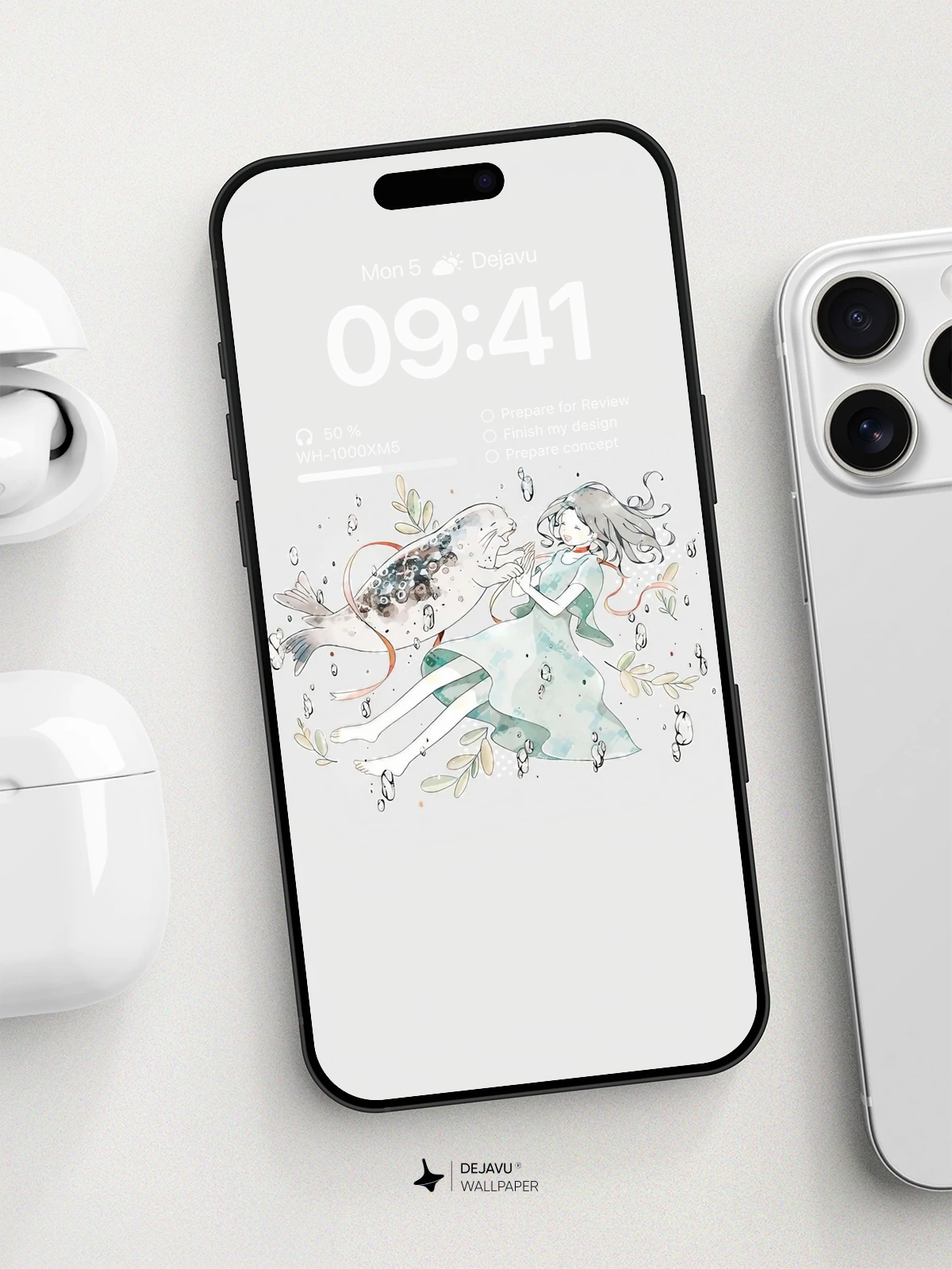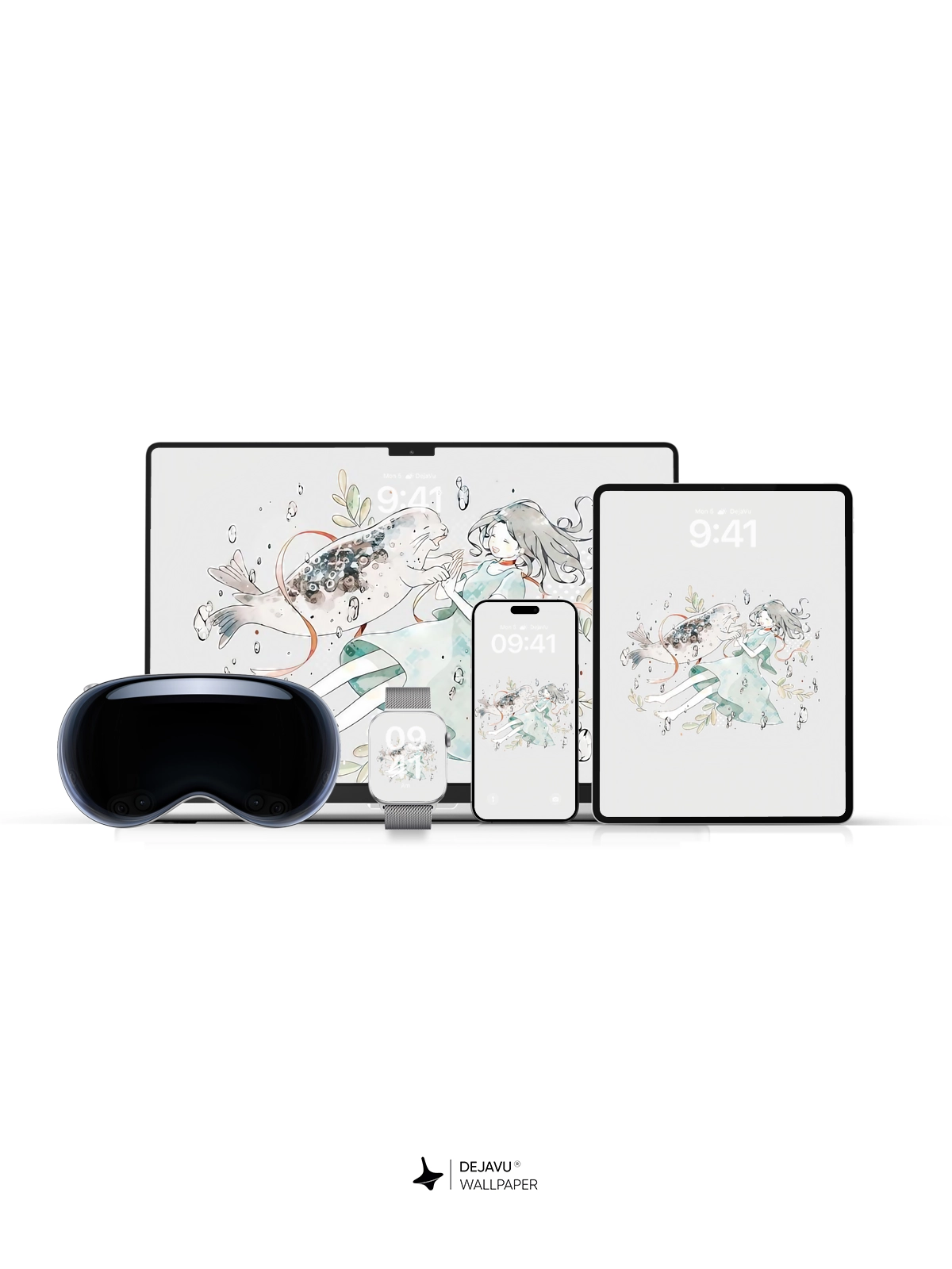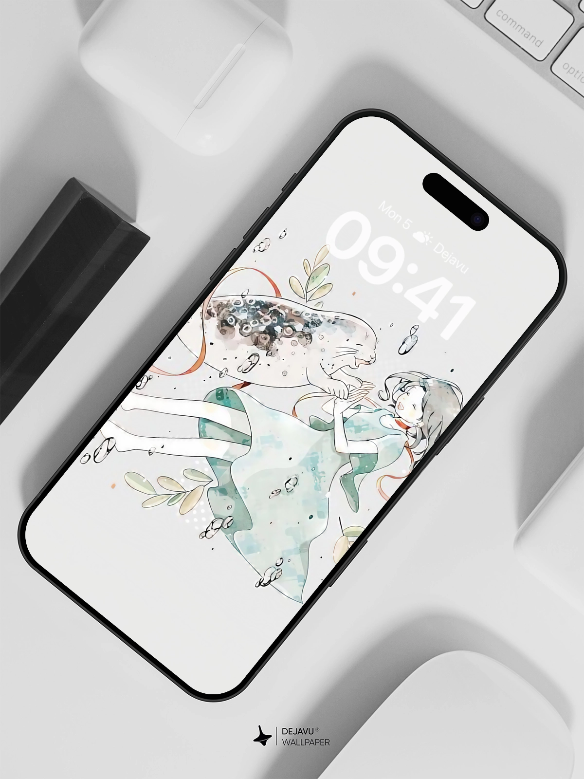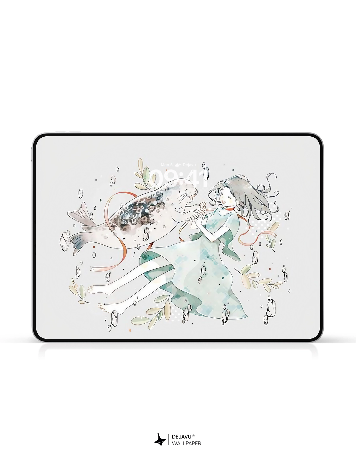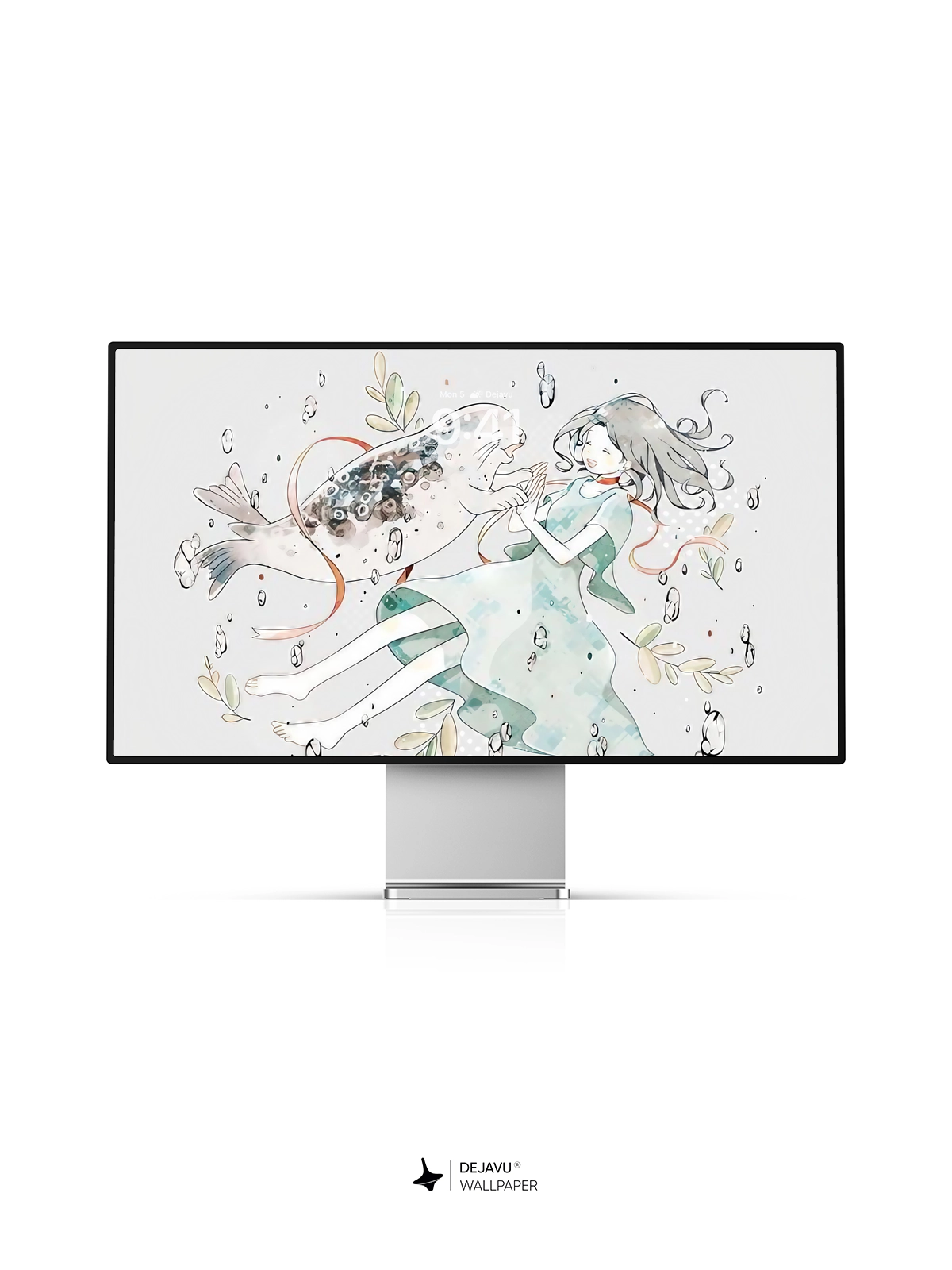 This 8K minimal aesthetic painting wallpaper captures the essence of tranquility and whimsy with its delicate illustration of a girl and a fish. The soft color palette and intricate details make it a perfect choice for those who appreciate fine art. Compatible with both iPhone and Android devices, this wallpaper will bring a touch of elegance and charm to your screen.