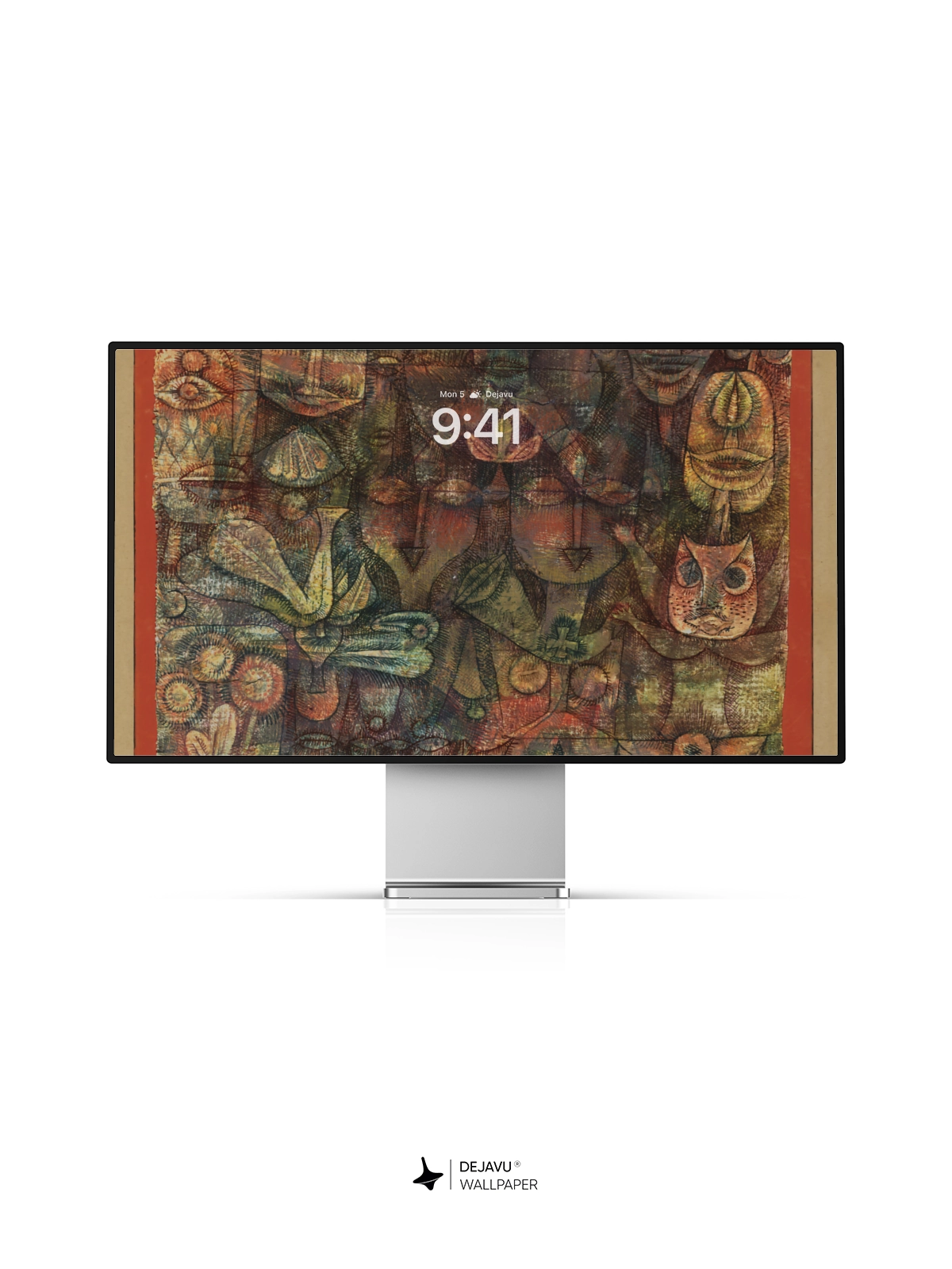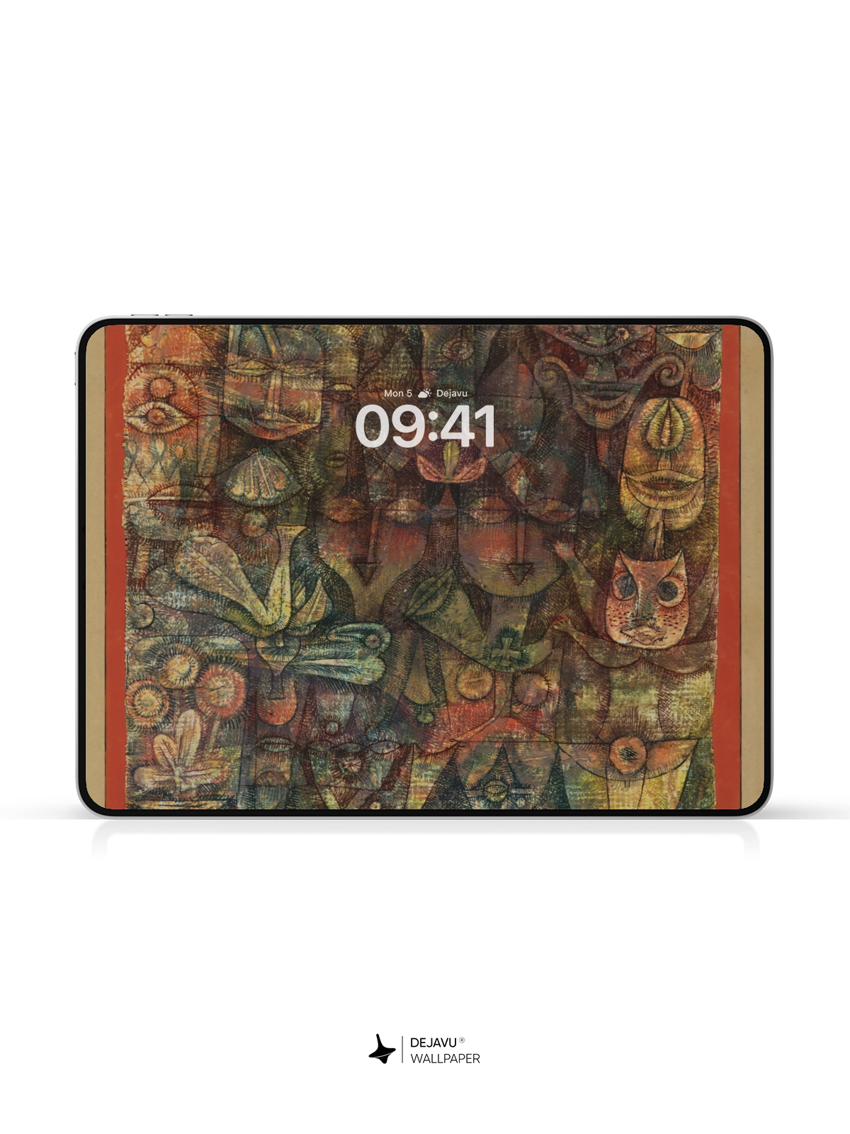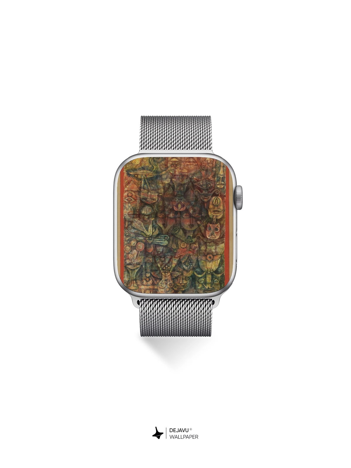 This 8K wallpaper features a surreal and intricate painting filled with vibrant colors and abstract forms. Perfect for enhancing the aesthetic of your iPhone or Android device, it brings a unique blend of art and technology. The detailed design evokes a sense of mystery and wonder, making it an engaging backdrop for your screens.