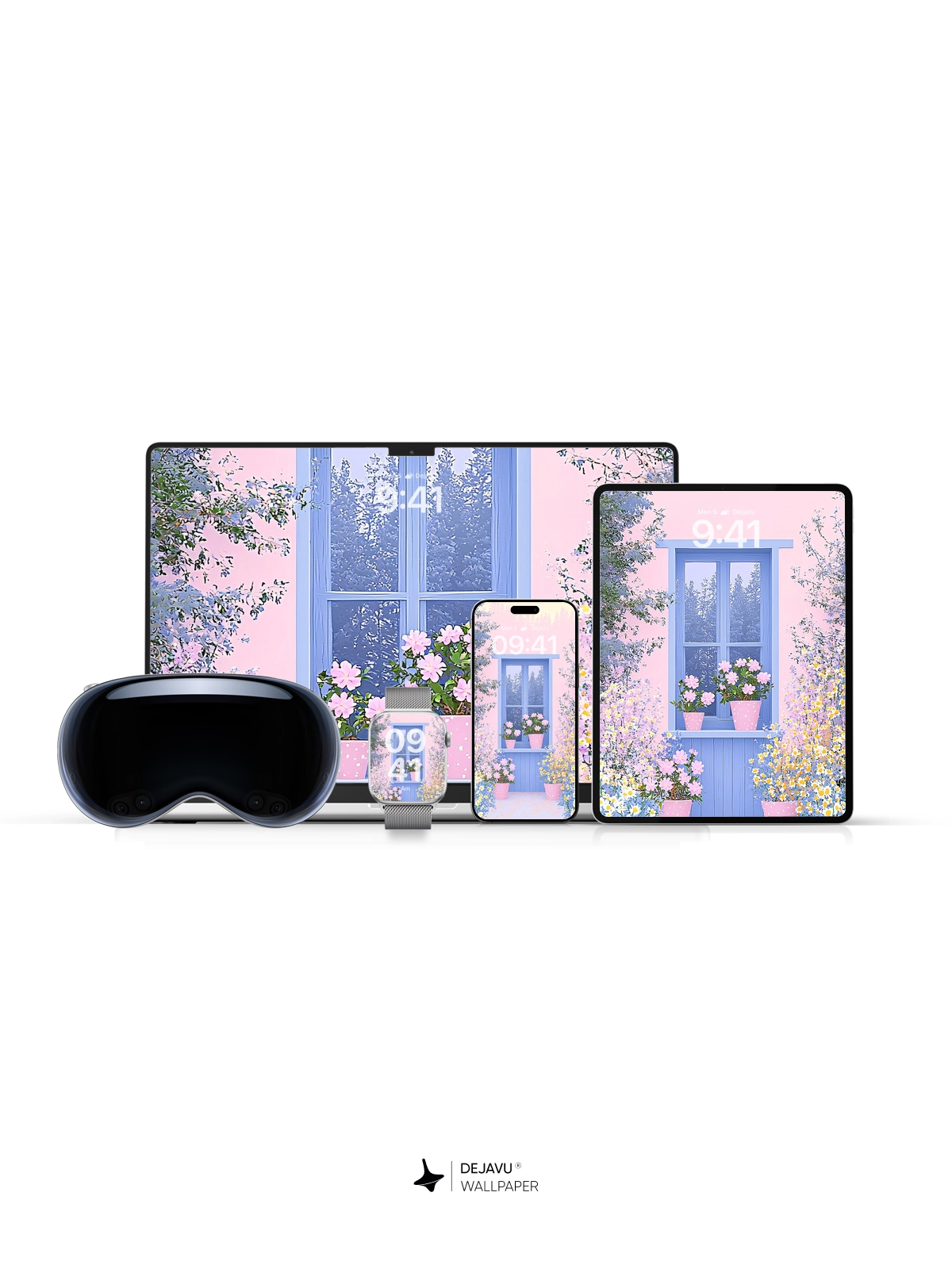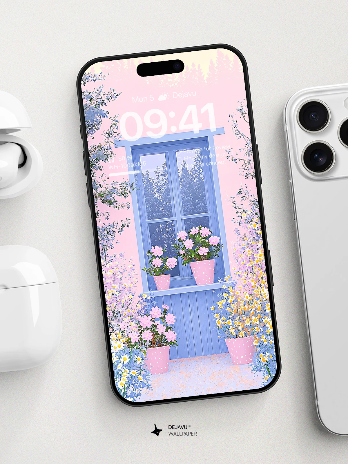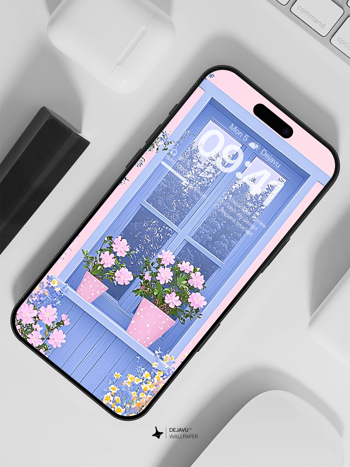 Experience the tranquility of a pastel garden with vibrant flowers and a quaint window in this 8K minimal aesthetic illustration. This wallpaper captures the essence of nature’s beauty, perfect for enhancing your iPhone or Android device with a touch of soft, gradient colors.