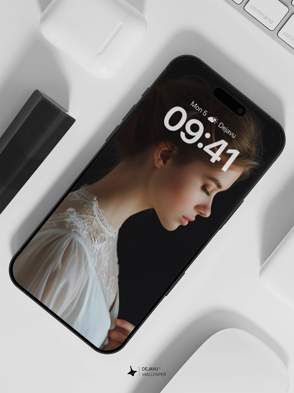 This 8K minimal aesthetic portrait features a serene expression and soft lighting, creating a tranquil and elegant atmosphere. Perfect for enhancing the screens of your iPhone, Android, or tablets with its high-resolution detail and calming presence.