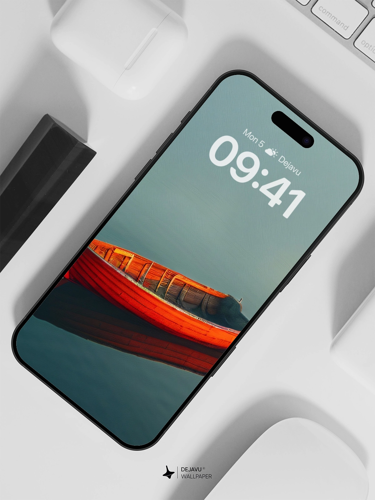 This 8K wallpaper captures the tranquility of a red boat floating on still waters, offering a minimalist and aesthetic appeal. The image evokes a sense of peace and solitude, ideal for setting as a desktop background on iPhone, Android, or tablets. The high resolution ensures stunning clarity and detail.