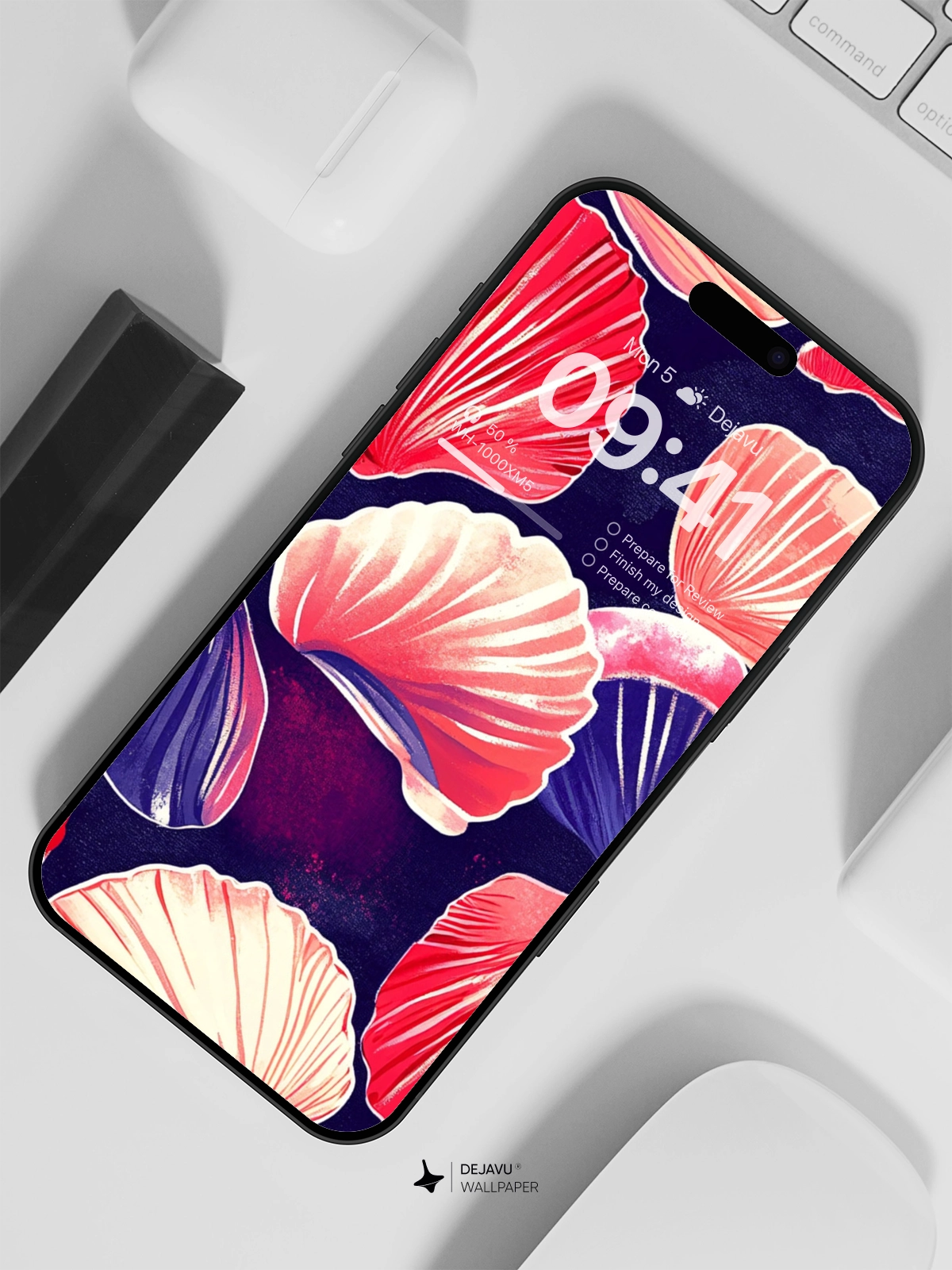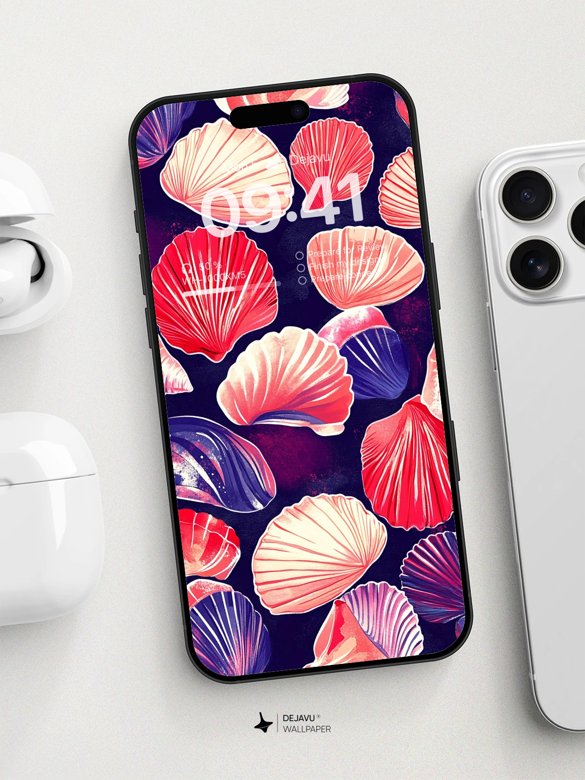 This 8K wallpaper showcases a beautiful array of seashells in a minimalistic yet vibrant design. The colorful shells, ranging from deep blues to bright reds, create an abstract and aesthetic appeal. Perfect for enhancing the look of your iPhone or Android device with a touch of nature-inspired art.