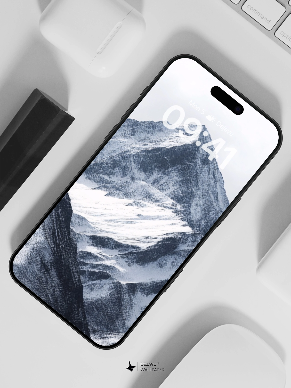 Experience the serene beauty of a snow-covered mountain peak with this 8K minimal aesthetic wallpaper. Perfect for enhancing the look of your iPhone or Android device, this image captures the raw and majestic essence of nature. The crisp details and monochromatic tones make it a stunning addition to any screen.