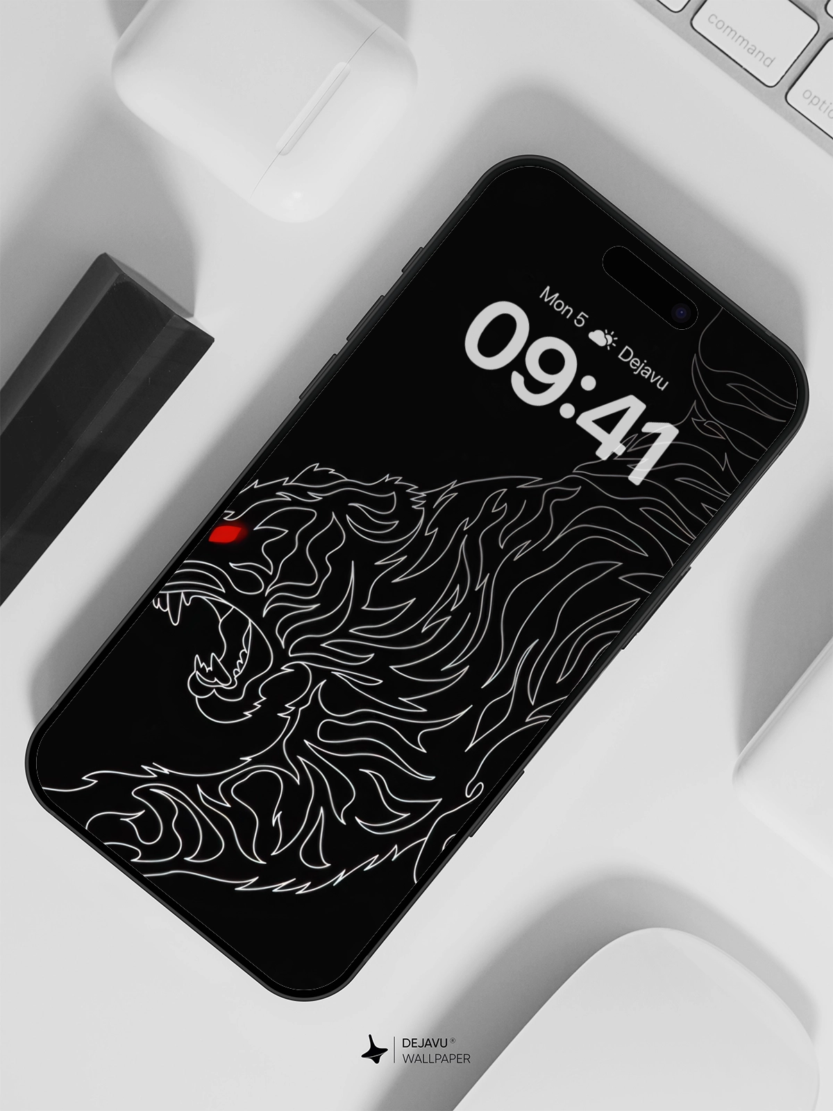 Experience the raw power and elegance of this 8K minimal tiger illustration wallpaper. The glowing red eye adds a touch of mystery and intensity, making it ideal for tech and gaming fans. Compatible with iPhone, Android, and tablets, this wallpaper is a stunning addition to any device.