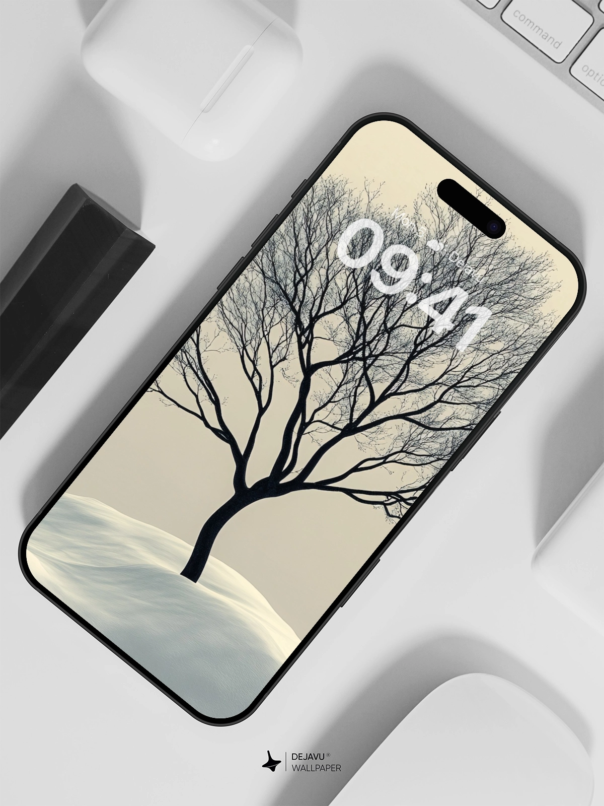 This 8K wallpaper features a minimalist and aesthetic design of a solitary tree standing tall on a snow-covered hill. The monochromatic color scheme and soft gradients create a tranquil and peaceful atmosphere. Ideal for iPhone, Android, and tablet screens, this wallpaper brings a touch of nature’s calmness to your device.