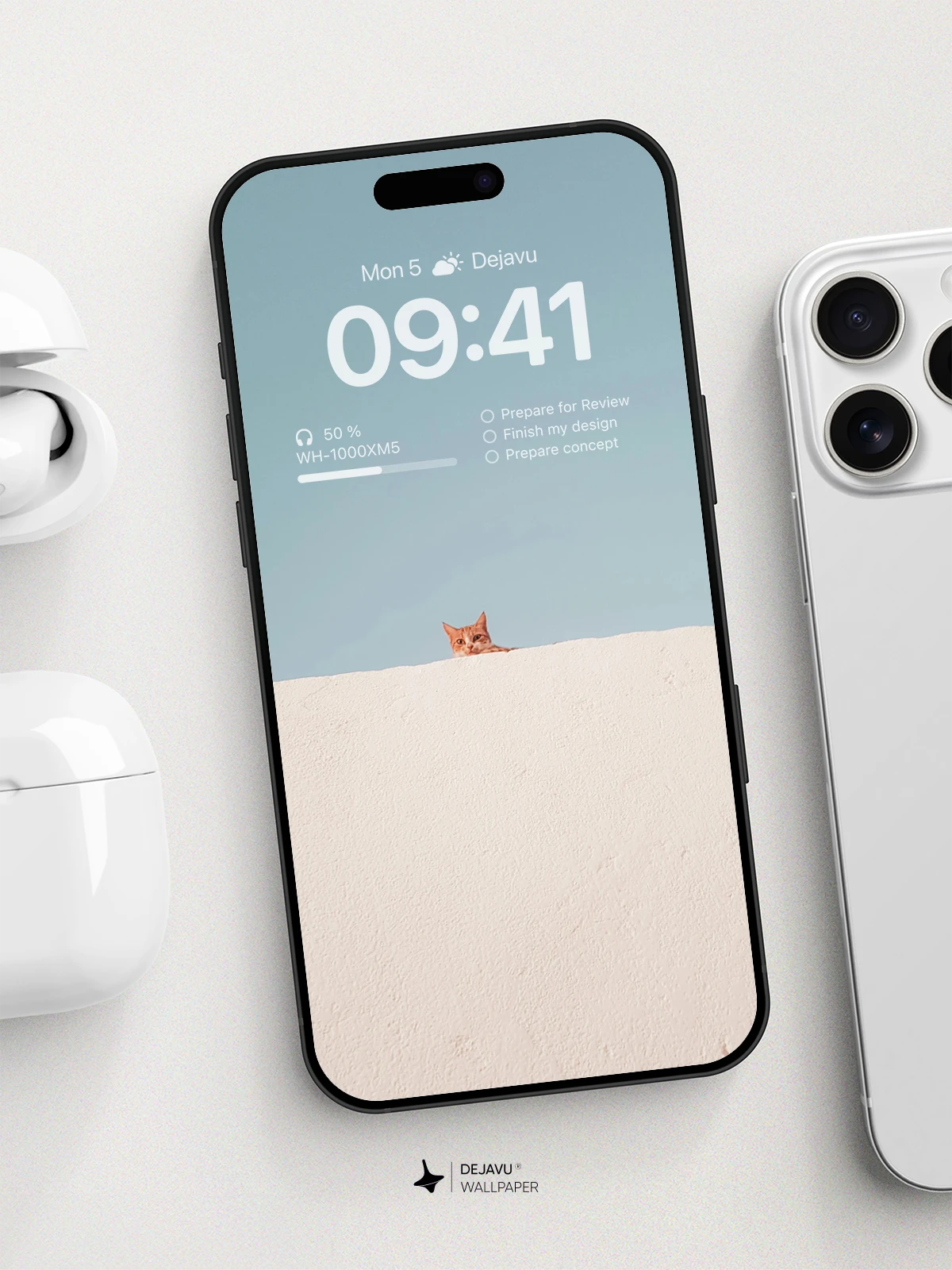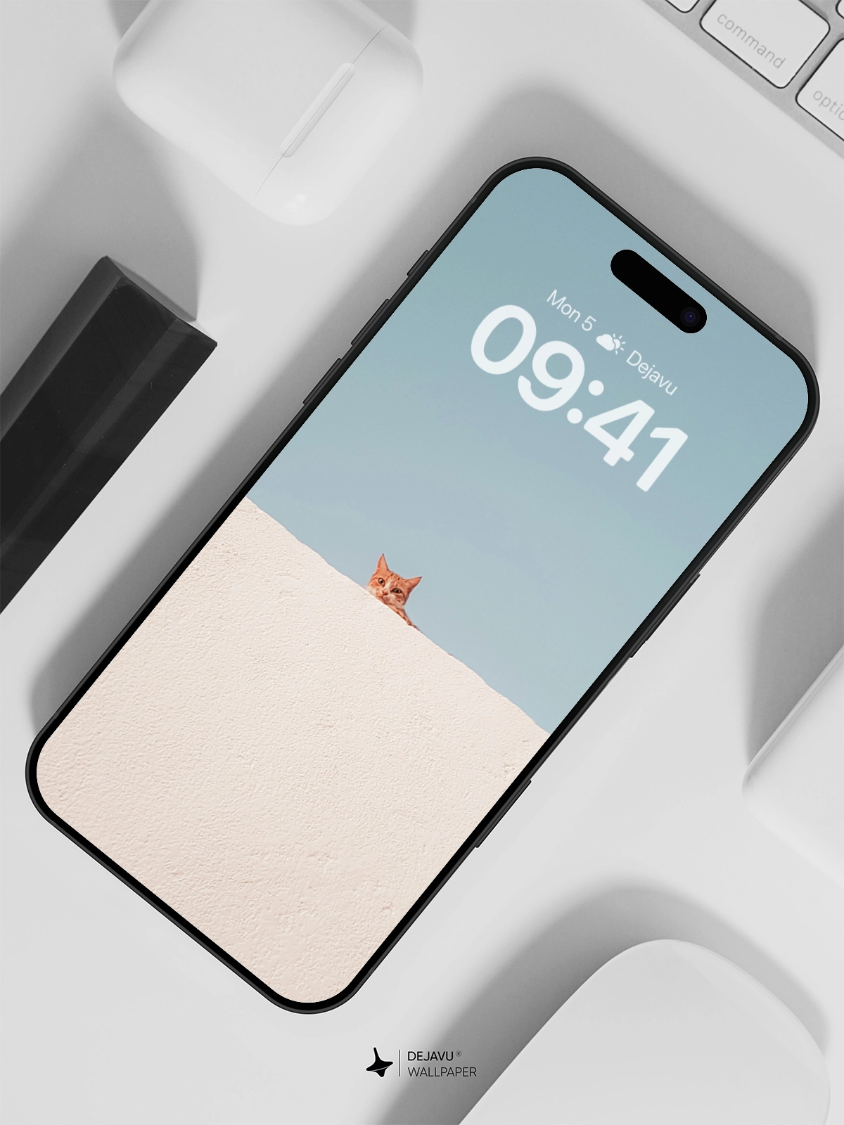 This 8K minimalist aesthetic wallpaper captures the playful essence of a curious cat peeking over a white wall against a clear sky. Perfect for adding a touch of whimsy and charm to your iPhone or Android screen, this wallpaper combines simplicity with a dash of humor.