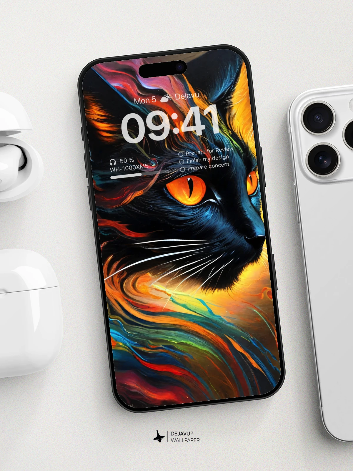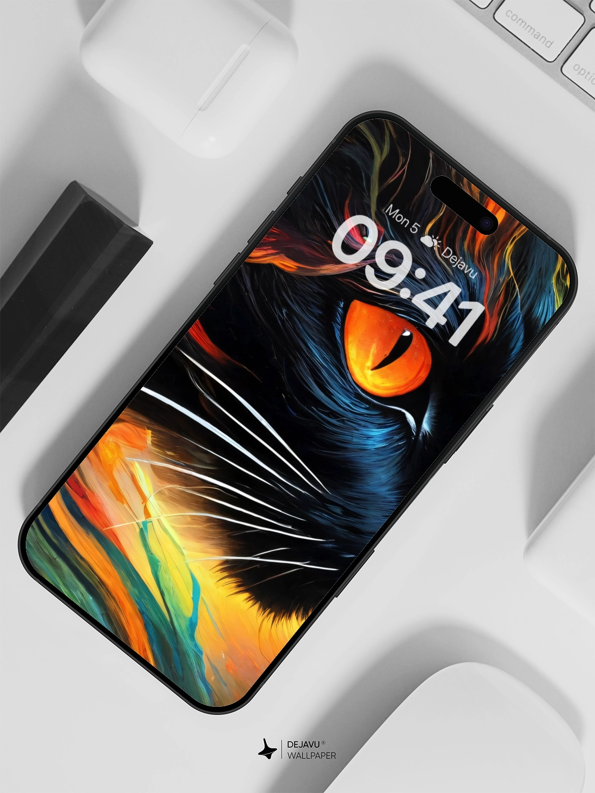 Immerse yourself in the beauty of this 8K vibrant cat painting wallpaper. The minimalistic design combines vivid colors and intricate details, creating a captivating visual experience. Inspired by the elegance and mystery of cats, this wallpaper is perfect for enhancing the aesthetics of your iPhone, Android, or tablet screens.