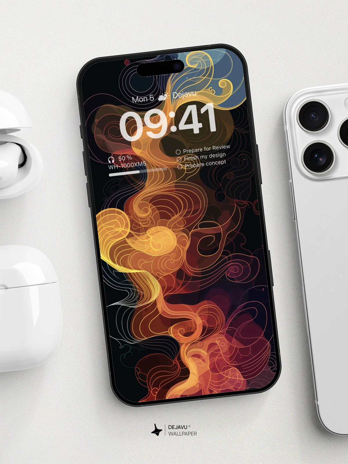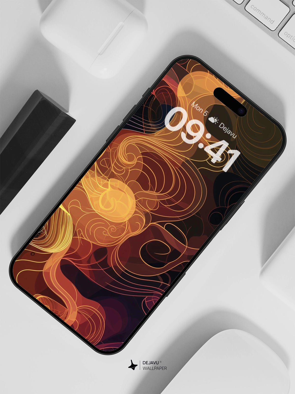 This 8K minimal aesthetic wallpaper features an intricate design of swirling patterns in a blend of warm and cool tones. The abstract art evokes a sense of movement and depth, making it a perfect choice for tech enthusiasts looking to add a touch of sophistication to their iPhone or Android screens.