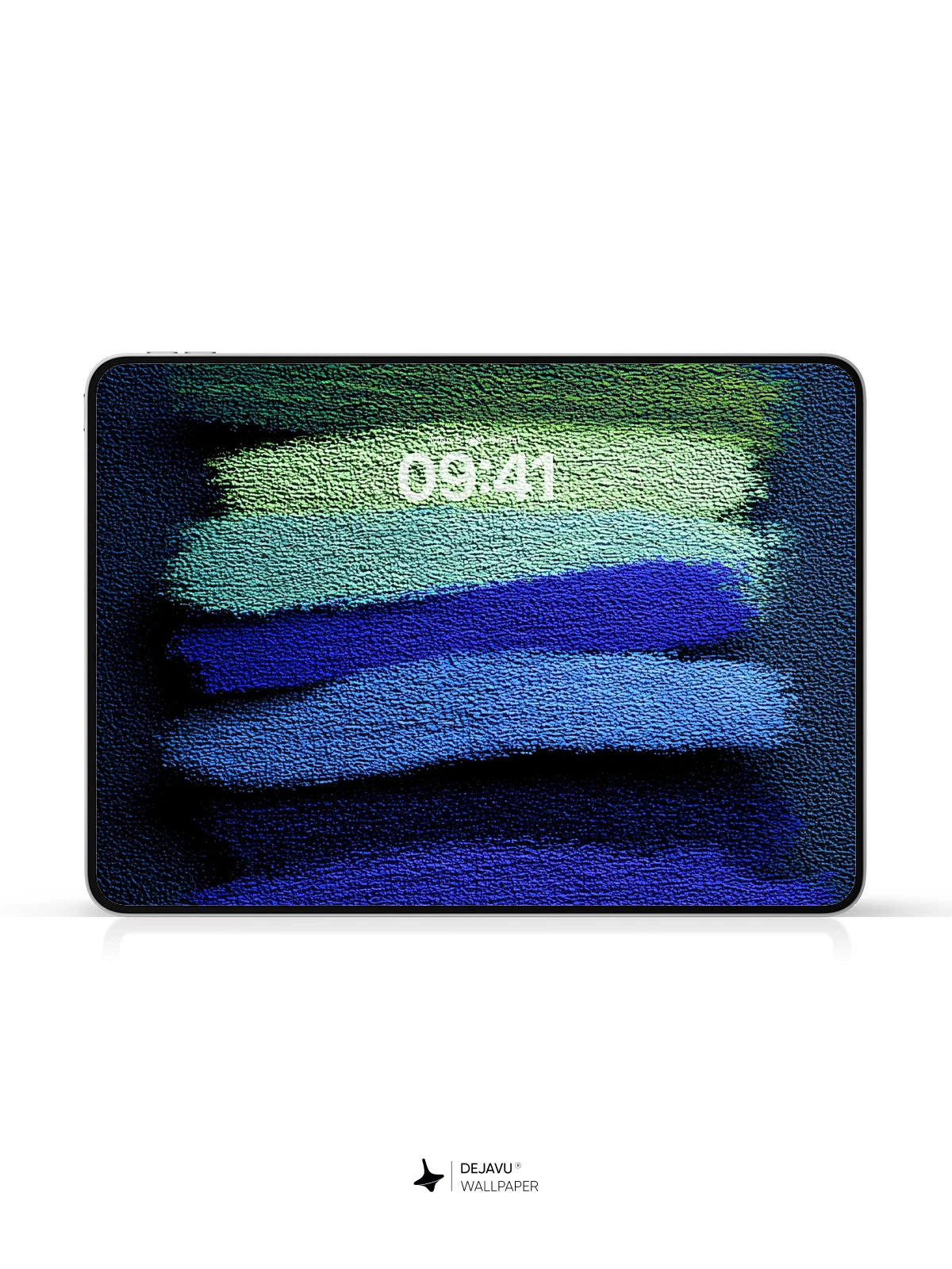 This abstract artwork features layered horizontal strokes in rich shades of blue and green, creating a dynamic yet calming visual rhythm. The textured surface adds depth and dimension, evoking the tactile quality of chalk on canvas. Ideal for iPhone, Android, or tablet screens, this 8K wallpaper brings a serene, contemporary aesthetic to your device. Its minimalist style and soothing palette make it a perfect choice for those who appreciate quiet elegance and artistic expression in everyday tech.