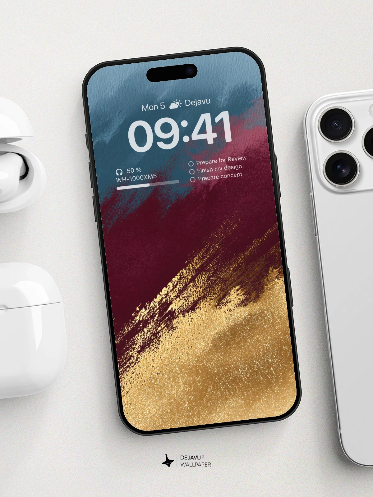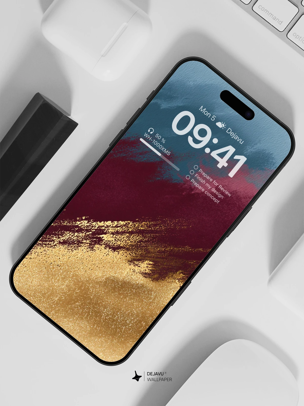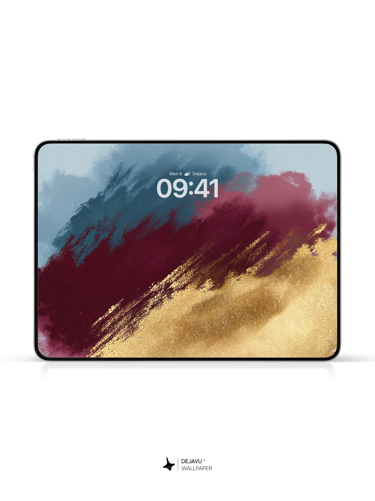 This striking abstract wallpaper features bold, expressive brushstrokes in rich burgundy, shimmering gold, and cool teal, blending like a painterly fusion of emotion and elegance. Inspired by contemporary expressionist techniques, the layered textures evoke depth and movement, making it an ideal high-resolution 8K background for iPhone, Android, and tablets. Perfect for those who appreciate artistic flair on their mobile screens.