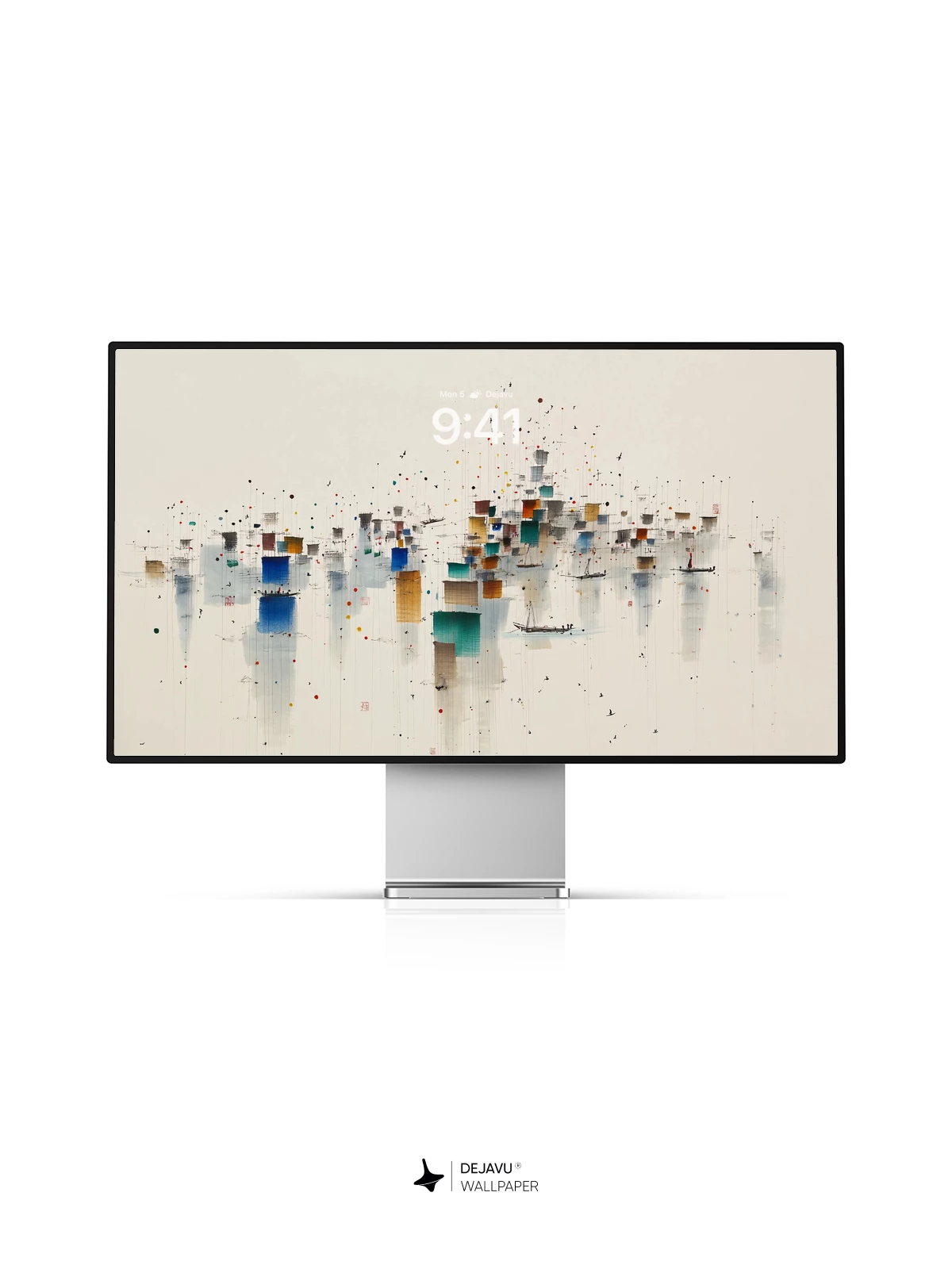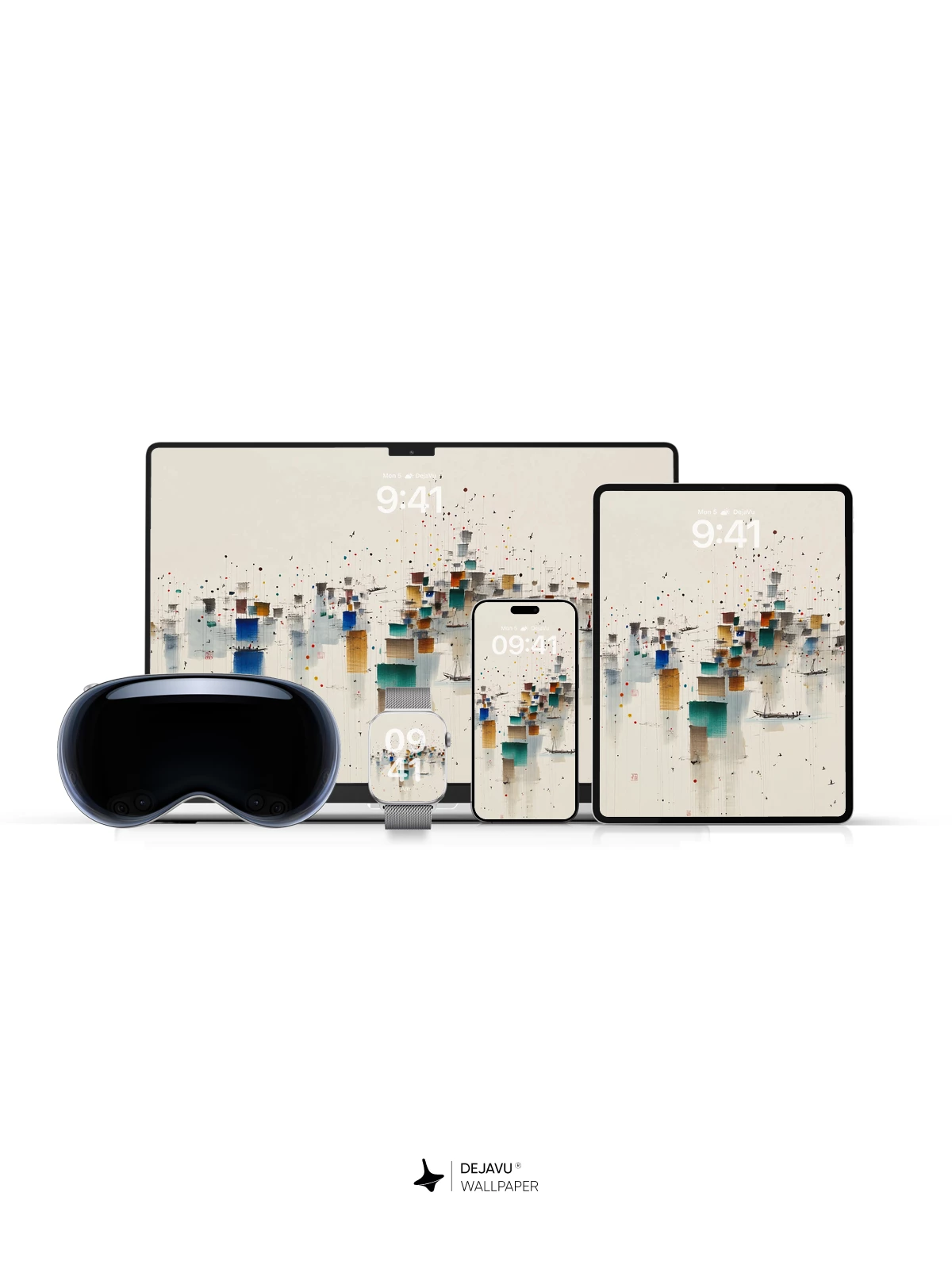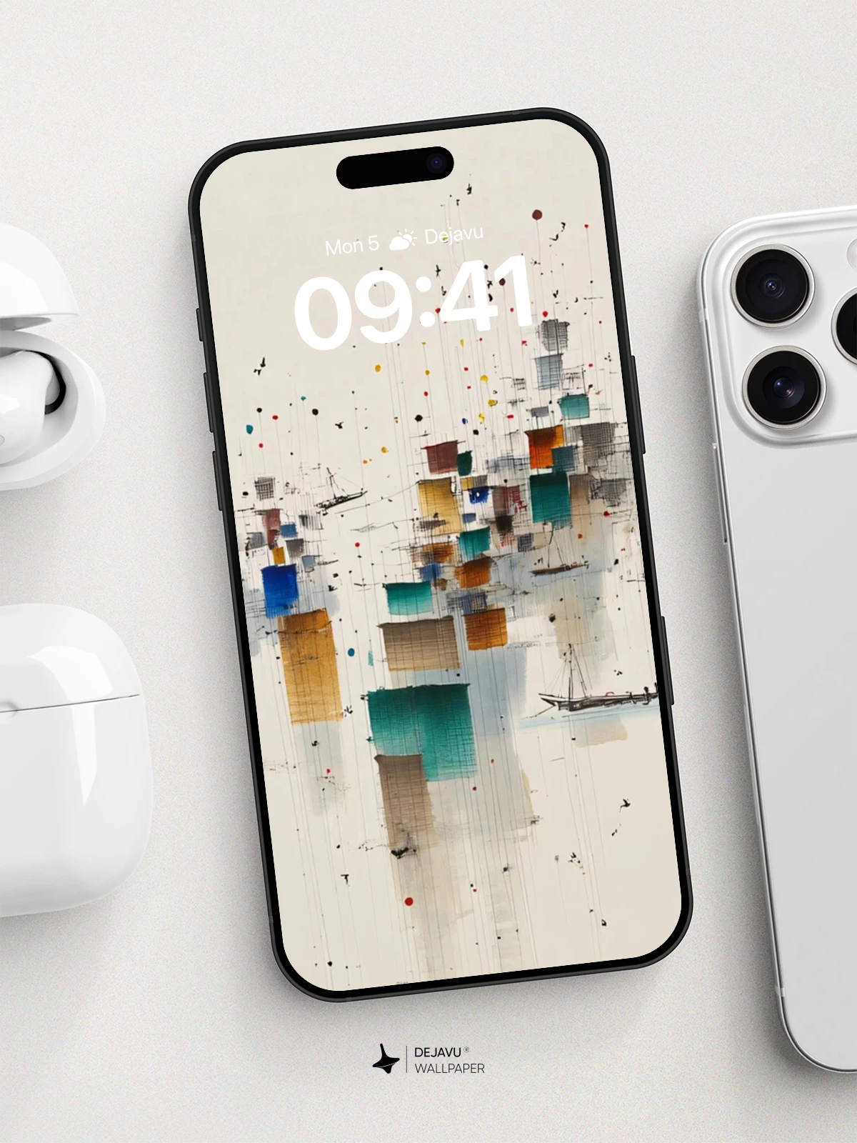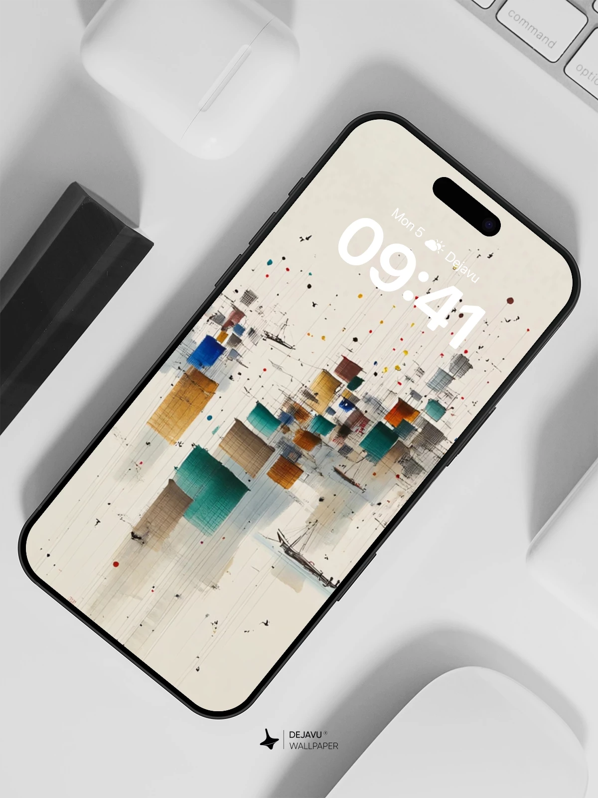 This captivating abstract cityscape blends geometric buildings with watercolor textures and dynamic splatters, evoking a dreamlike urban atmosphere. Inspired by contemporary digital art, it features subtle reflections and scattered color particles that suggest movement and life. Ideal as a high-resolution 8K wallpaper for iPhone, Android, or tablets, this design offers a fresh, artistic aesthetic that elevates any device screen with its serene yet energetic vibe.