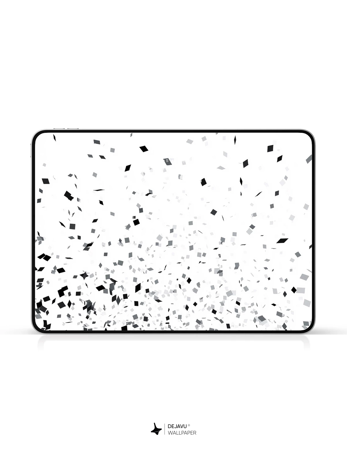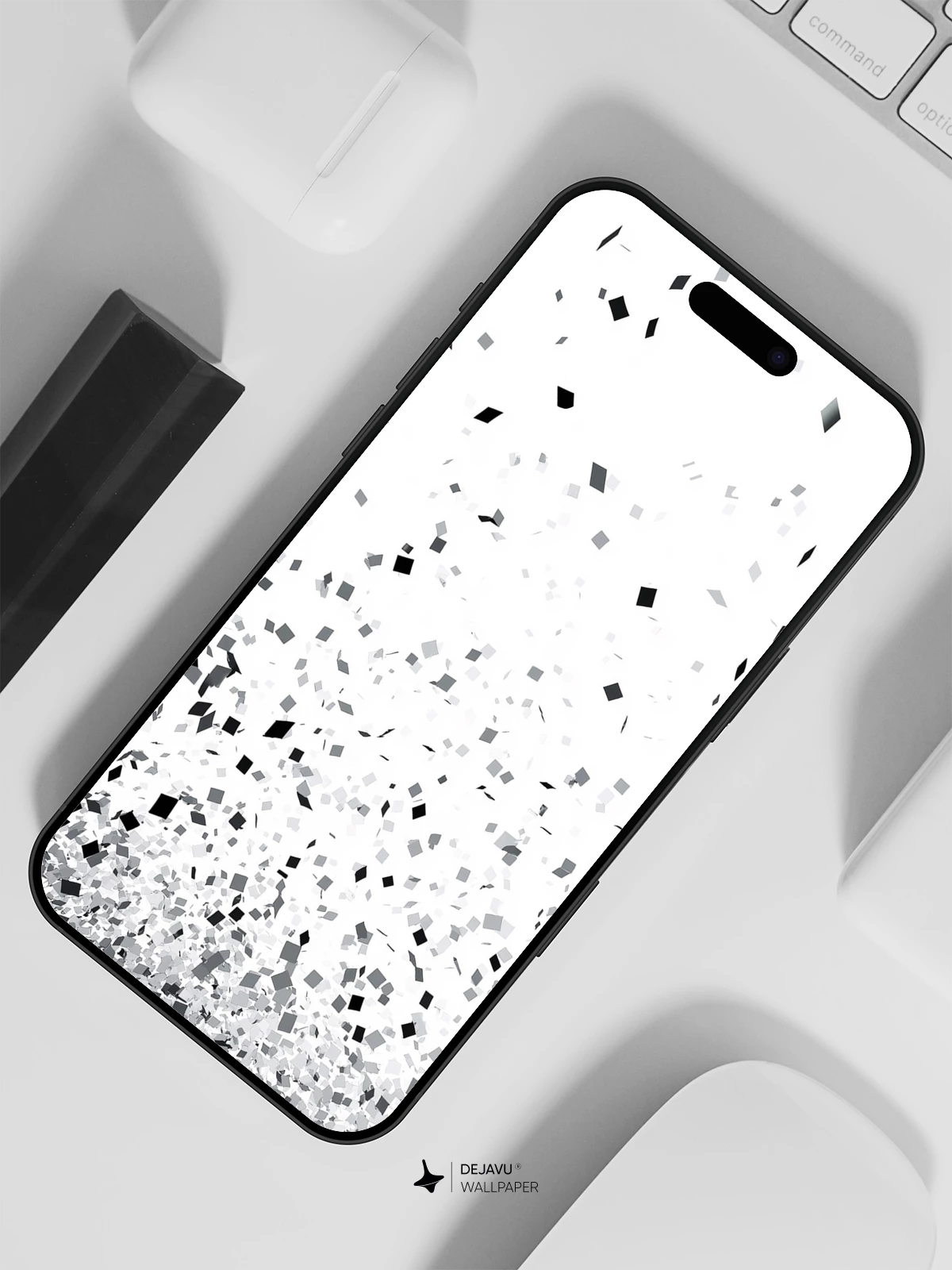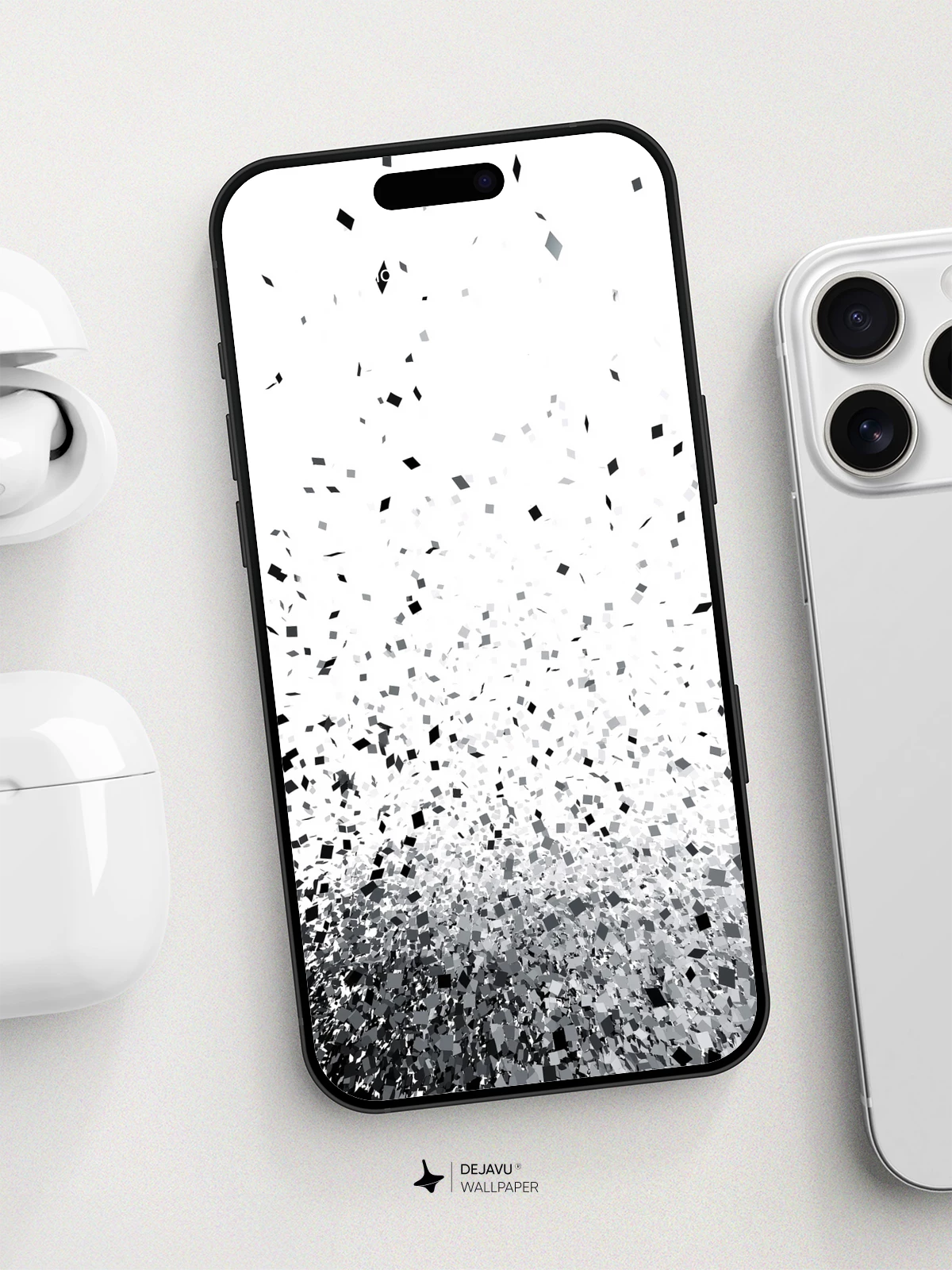 This captivating 8K wallpaper features a dramatic cascade of black and white geometric confetti particles rising from the bottom in a celebratory explosion. The minimalist yet vibrant design combines motion and contrast, creating a sense of joy and movement ideal for any iPhone or Android screen. With its clean lines and abstract elegance, it’s a perfect fusion of modern art and digital style—ideal for those who appreciate bold, expressive visuals without clutter.