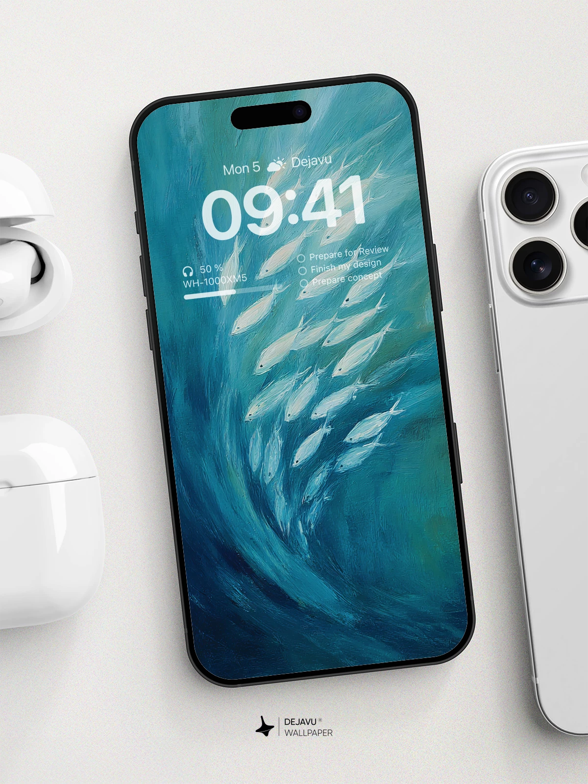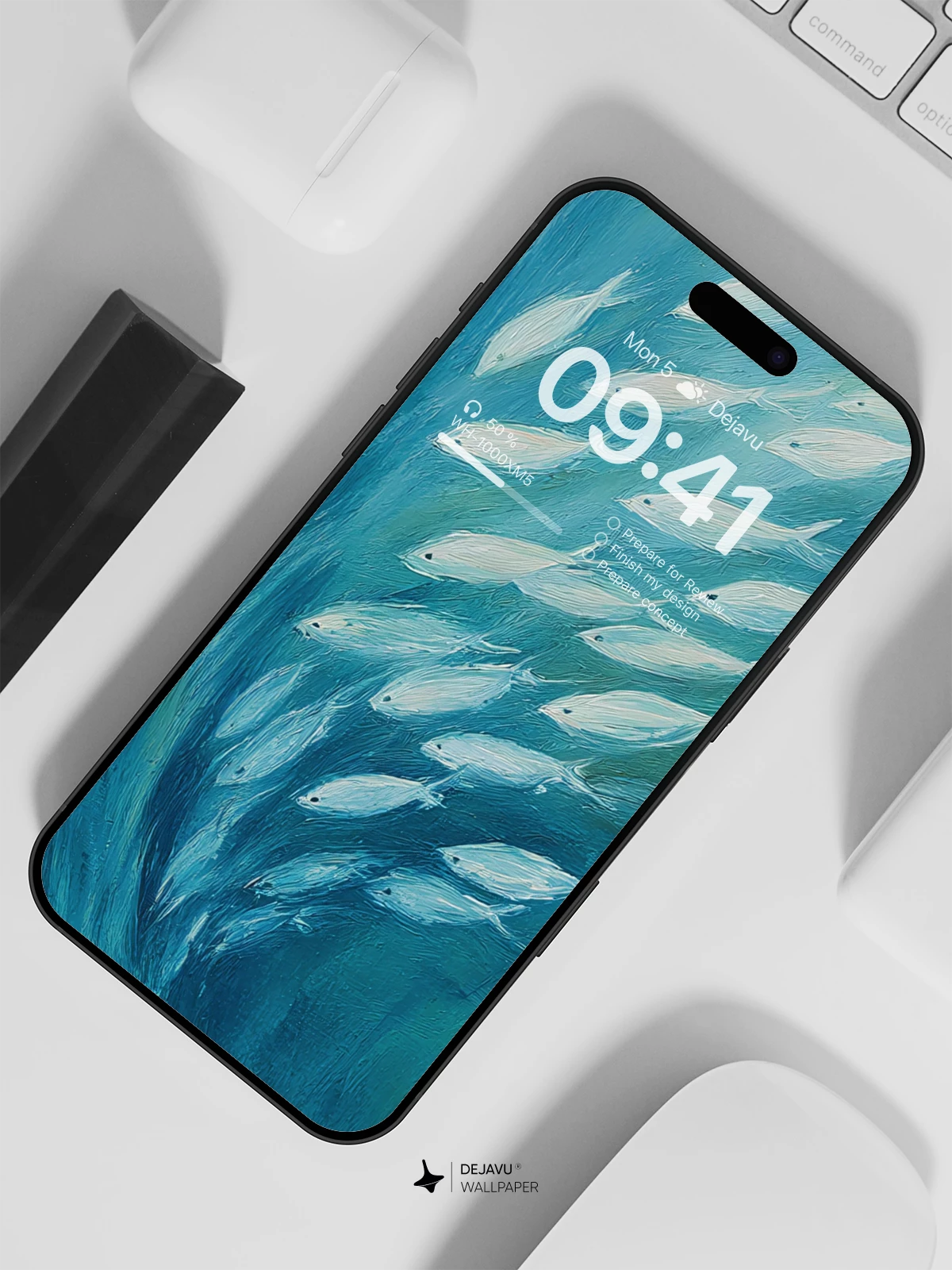 Immerse yourself in the tranquil depths of the ocean with this stunning Abstract Fish Swarm Wallpaper 8K, meticulously designed for both iPhone and Android devices. The artwork captures a school of fish gracefully navigating through swirling blue currents, symbolizing unity and harmony amidst nature’s flow. The fluid brushstrokes and dynamic composition evoke a meditative state, making it an ideal backdrop for screens of all sizes, from phones to tablets. This high-resolution wallpaper not only enhances visual appeal but also inspires a sense of peace and connection with the natural world, transforming any device into a portal to an underwater paradise.