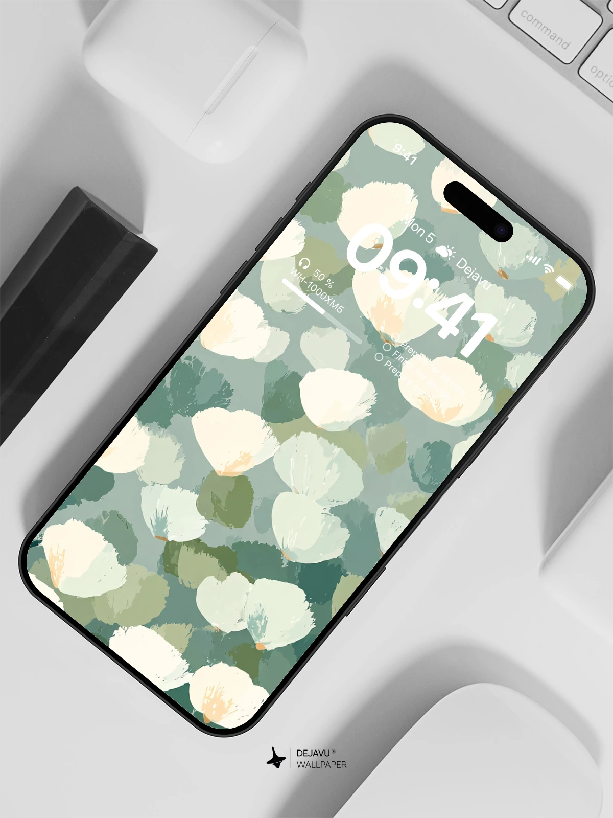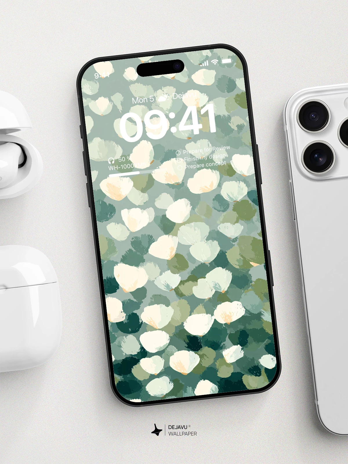 This wallpaper features an abstract floral design with soft, painterly strokes in muted tones of white, green, and gray. The delicate arrangement offers a calming, elegant aesthetic that complements any screen. Perfect for enhancing the visual appeal of your iPhone, Android, or tablet with its sophisticated and understated charm.