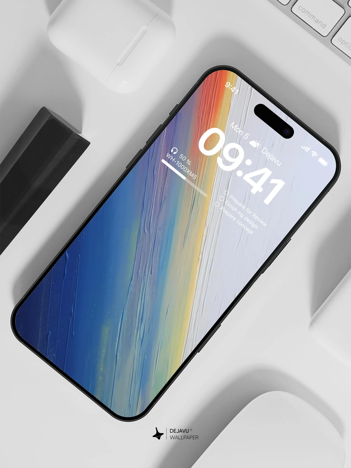 Layered strokes in warm and cool tones create depth, while the diagonal composition adds movement. This 8K wallpaper enhances iPhone, Android, and tablet displays with its rich, painterly finish.
