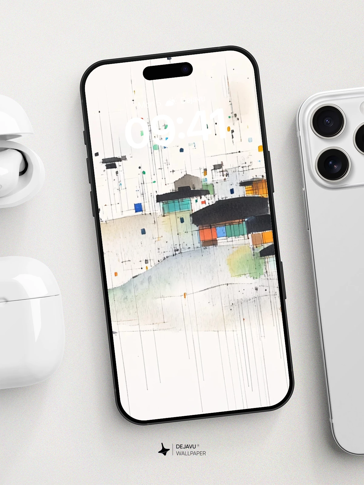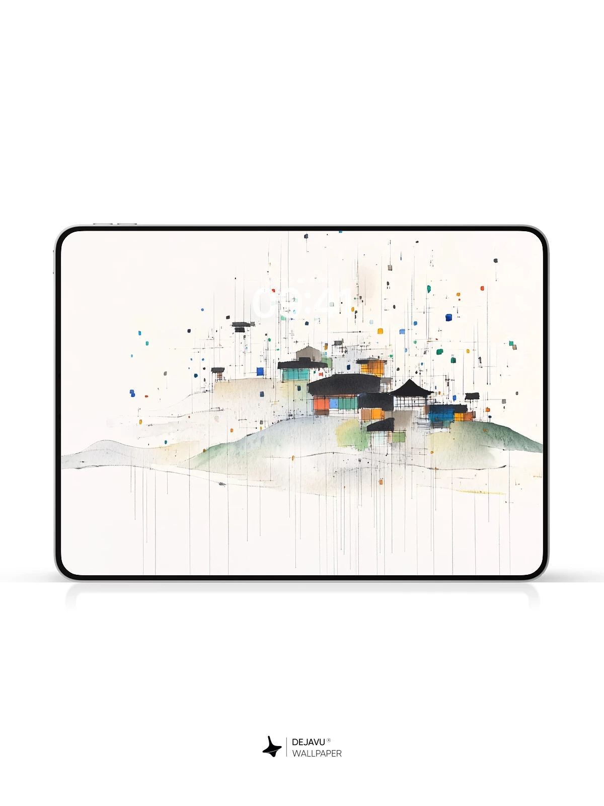 This ethereal digital artwork reimagines a traditional Korean village through a modern abstract lens, evoking the tranquil beauty of ink wash painting with colorful, dynamic splatters. Inspired by the delicate balance of nature and culture in East Asian art, the composition blends minimalist forms with expressive brushwork, creating a dreamlike landscape ideal for iPhone, Android, or tablet wallpapers. The soft gradients and floating elements convey peace and harmony, making it a perfect choice for those seeking artistic depth and cultural resonance in high-resolution mobile backgrounds.