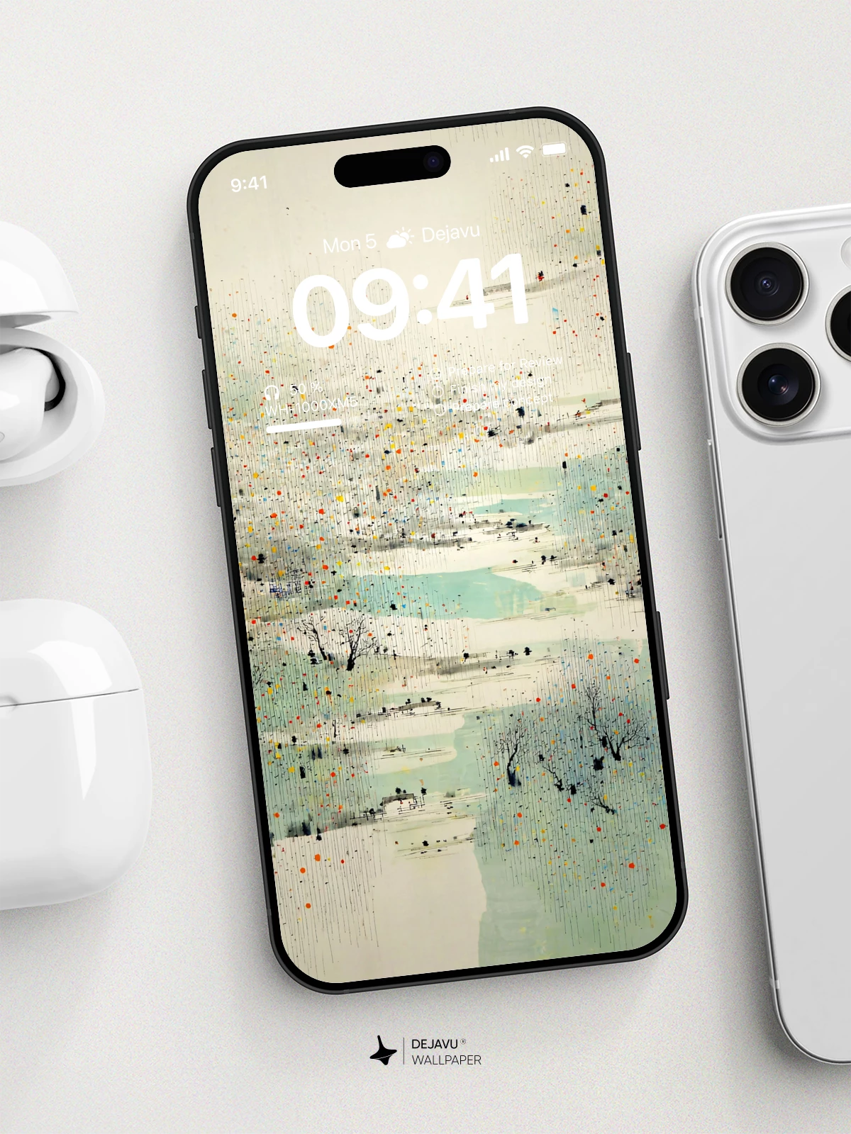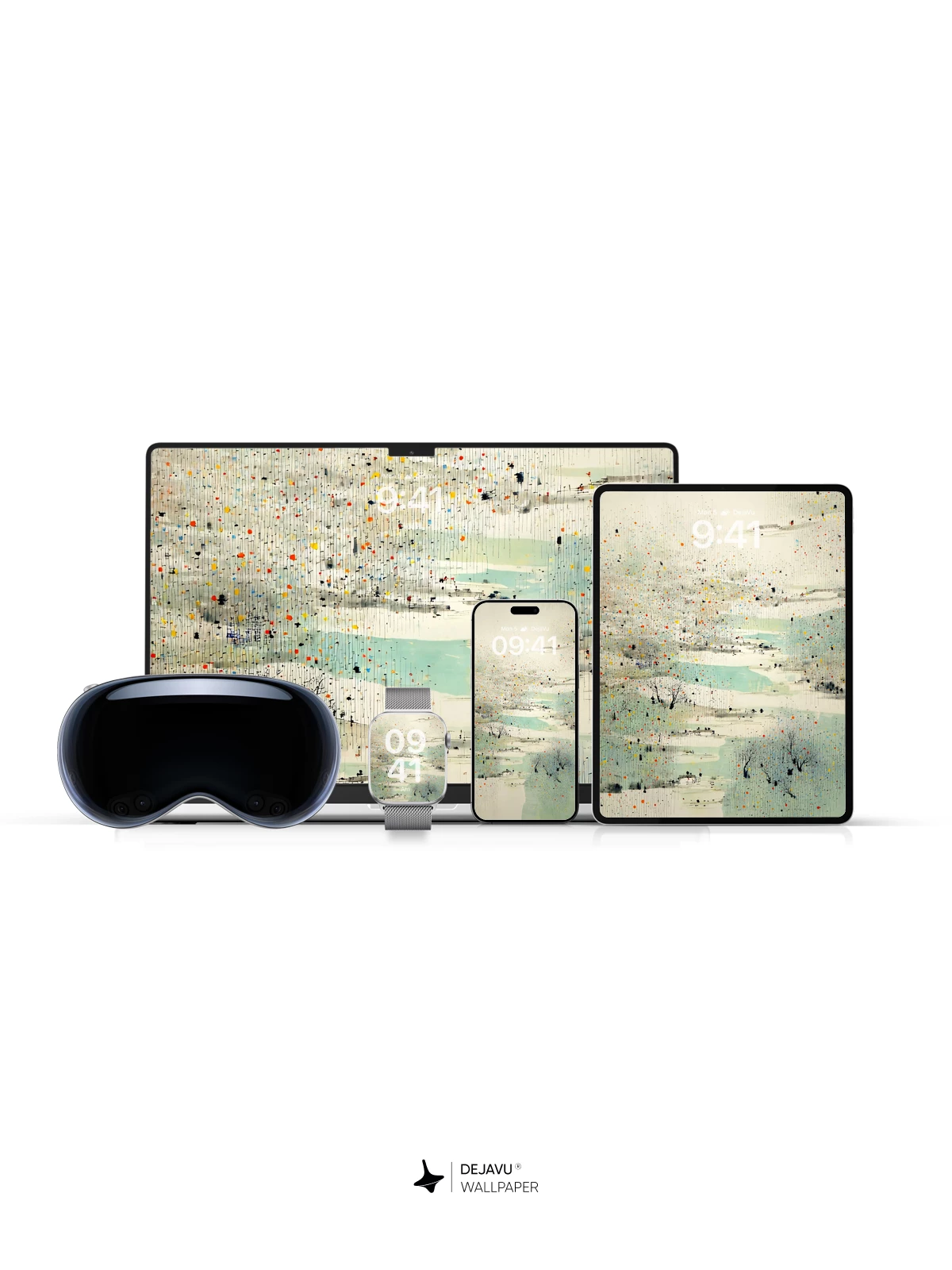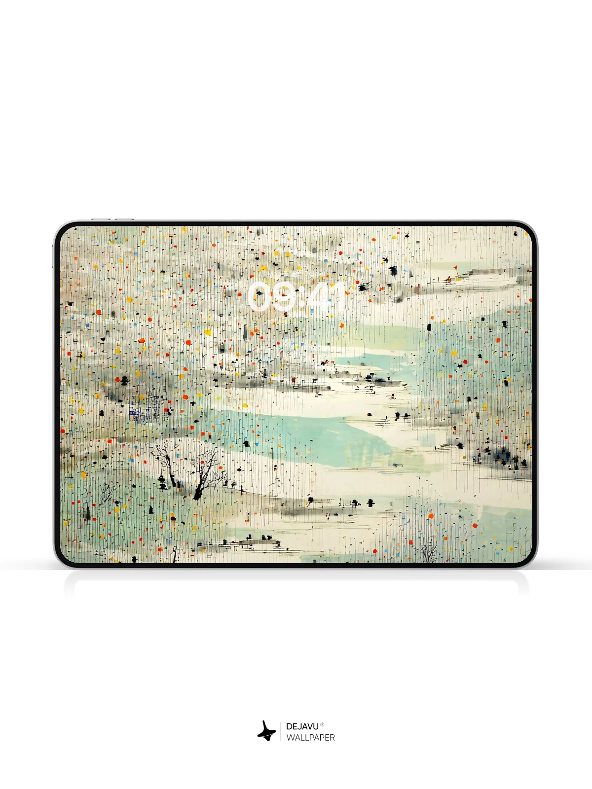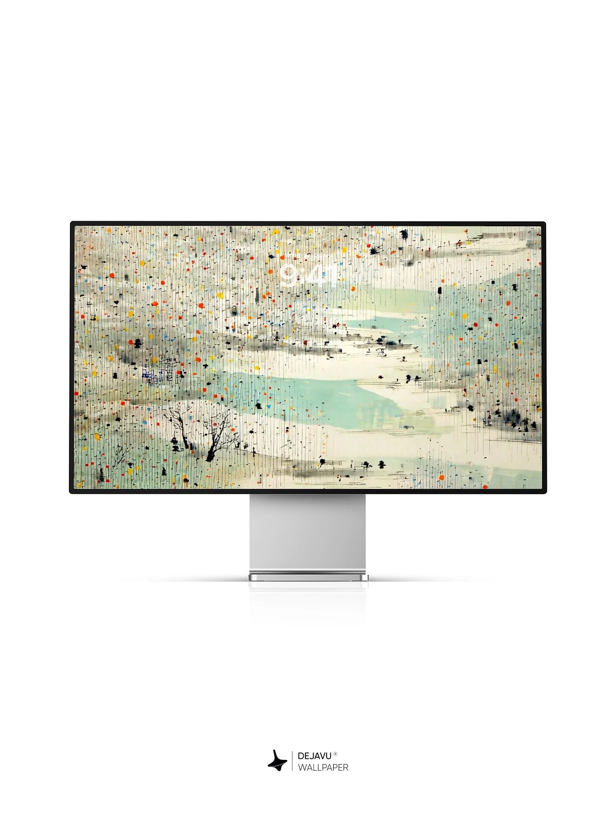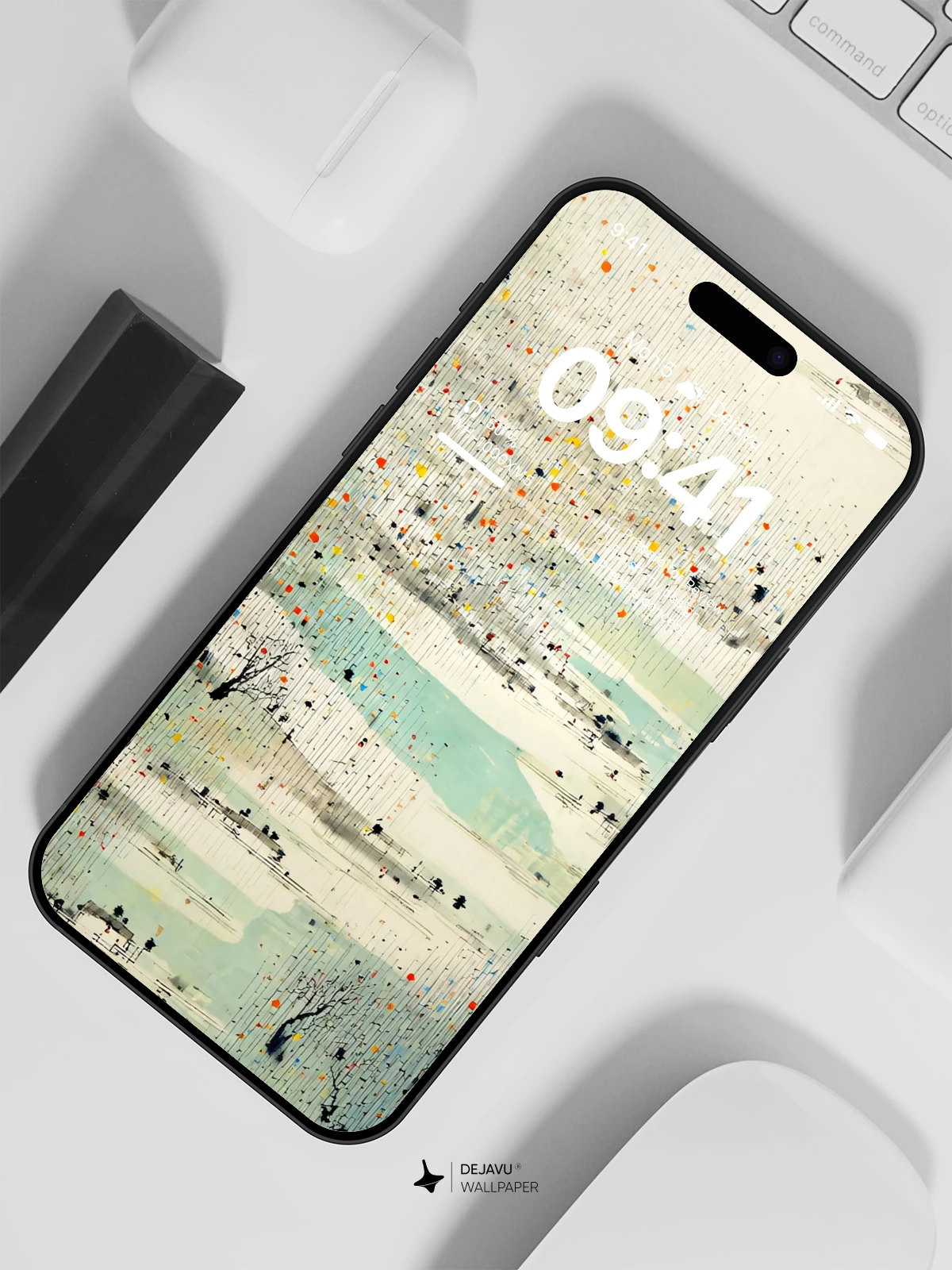 This 8K wallpaper showcases an abstract landscape with delicate textures and colorful specks, offering a serene yet dynamic backdrop. Ideal for iPhone, Android, and tablets, it brings a touch of artistic elegance to your screen.