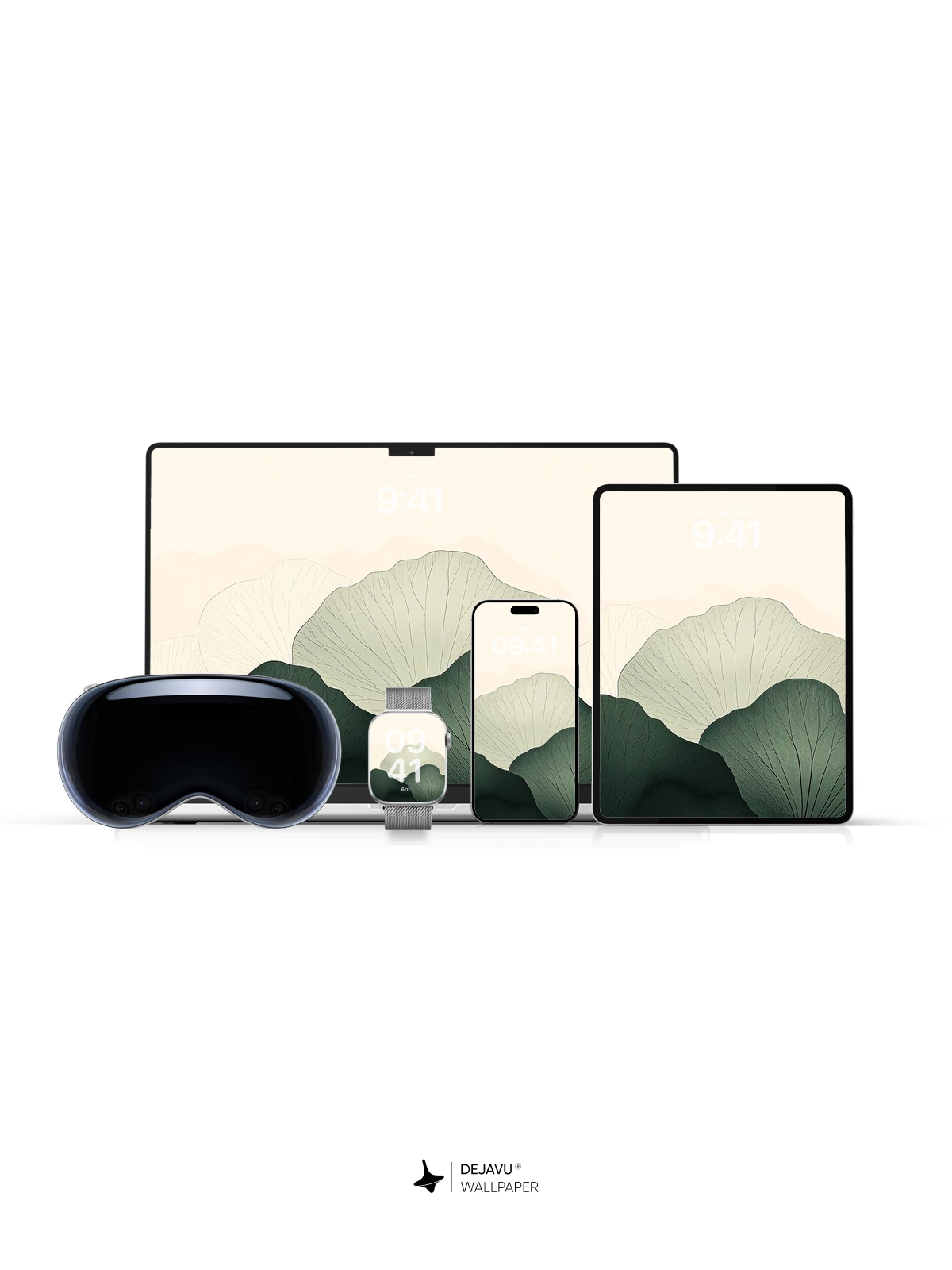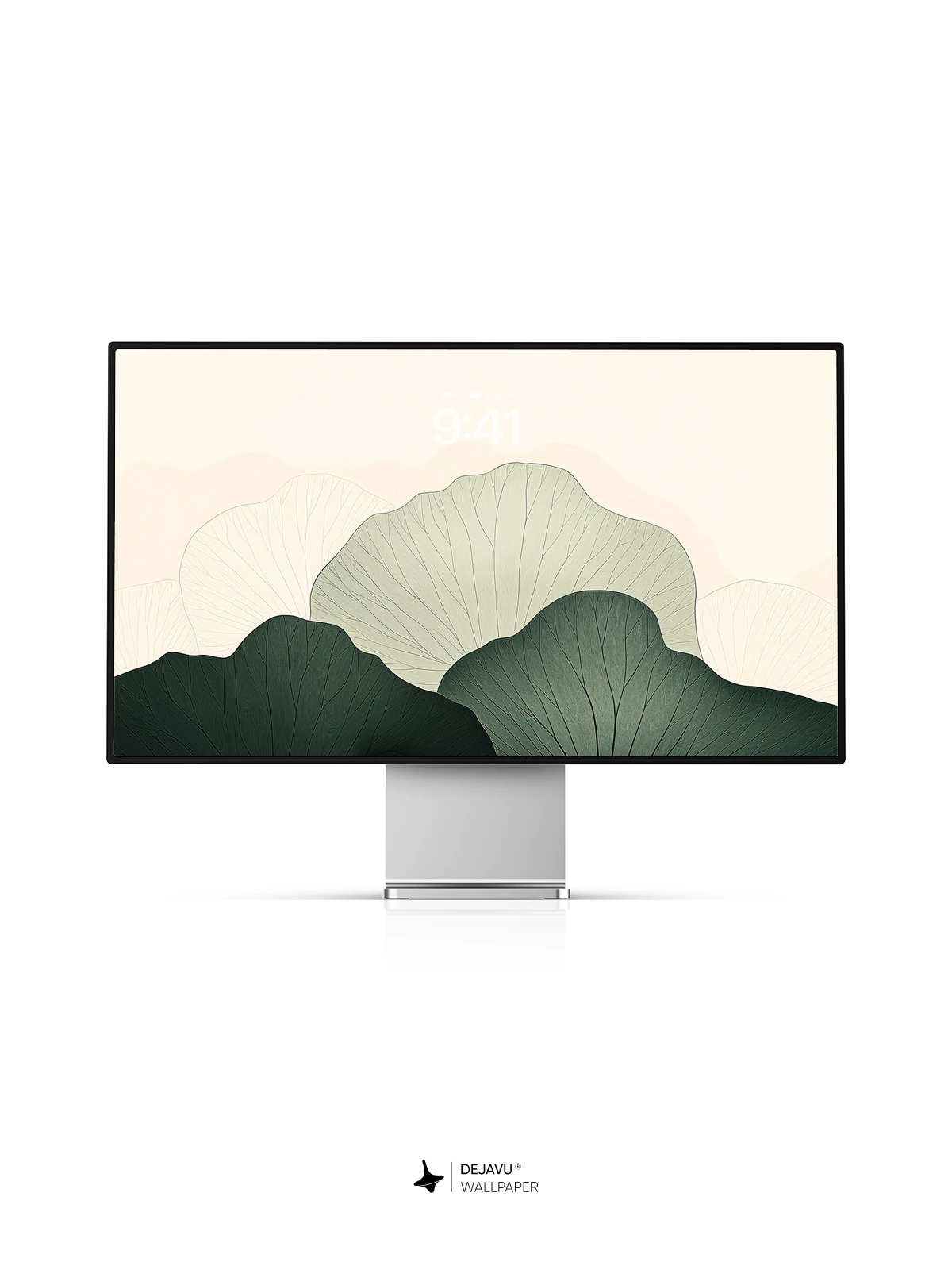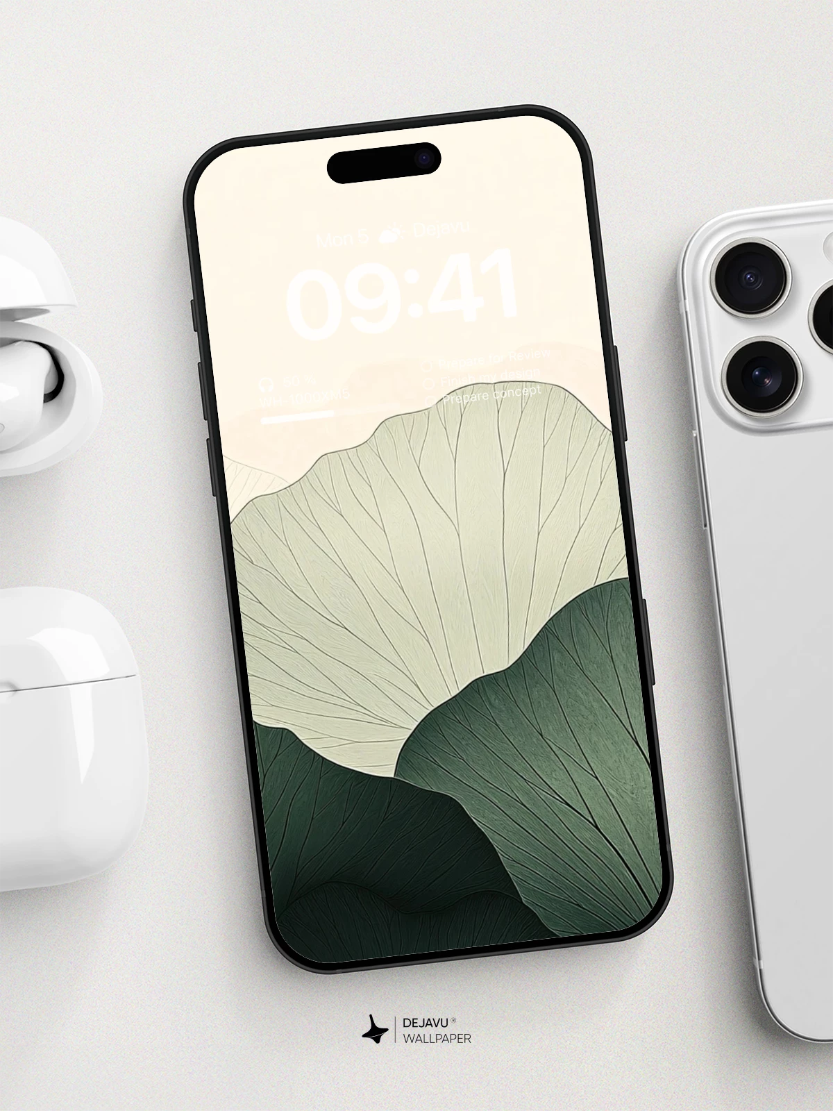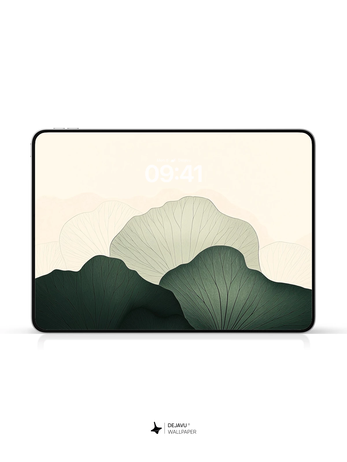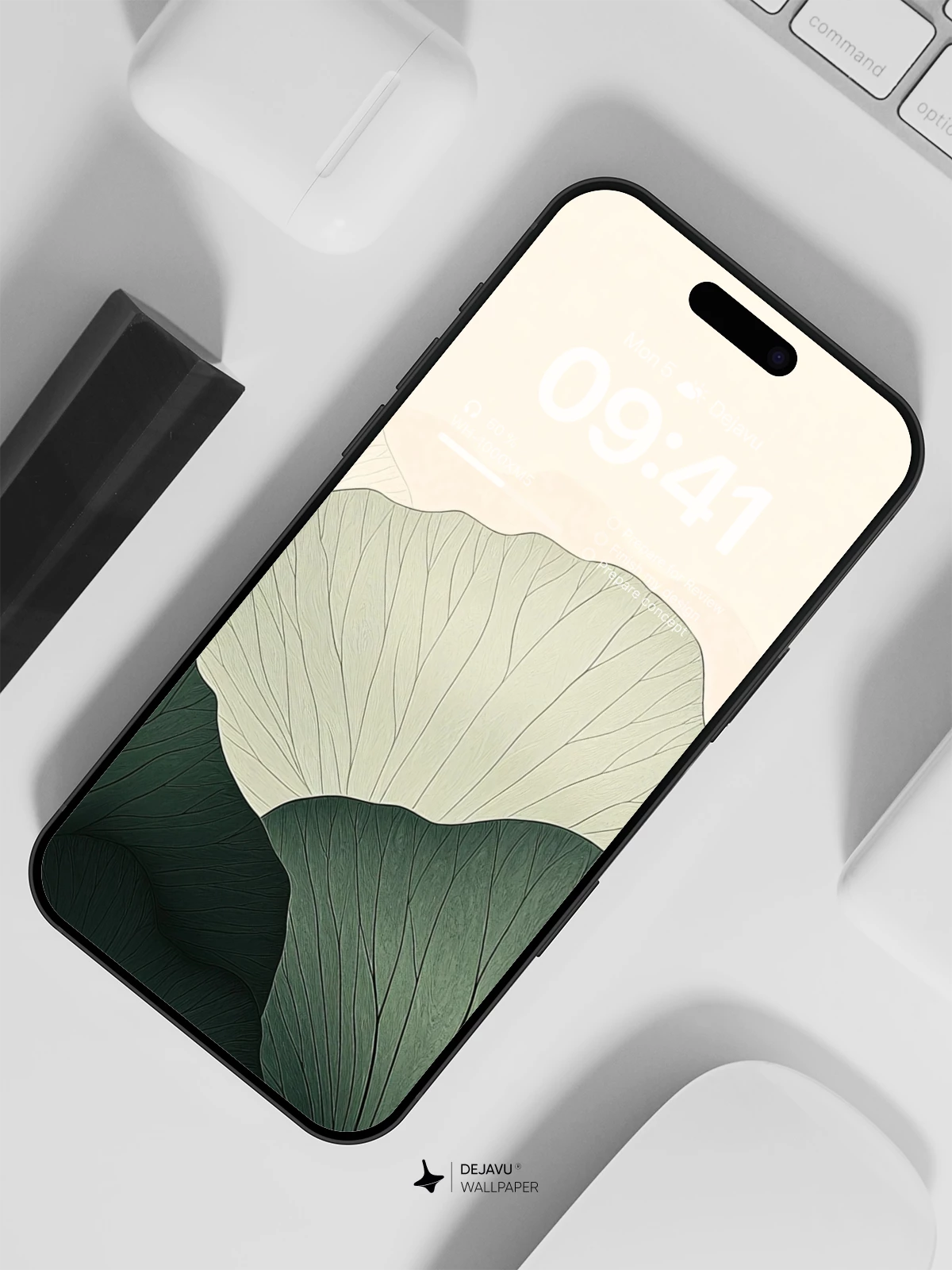 This tranquil 8K wallpaper features stylized lotus leaves in layered shades of green and cream, evoking a sense of peaceful stillness and natural harmony. Inspired by the delicate beauty of nature, the design blends minimalist aesthetics with organic forms, creating a soothing visual experience ideal for iPhone, Android, and tablet screens. The subtle gradients and fine vein details add depth and texture, making it a perfect choice for those who appreciate elegant, nature-inspired digital art.