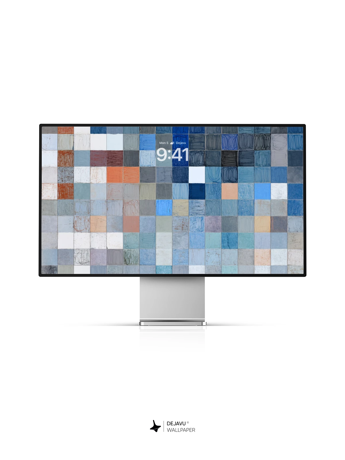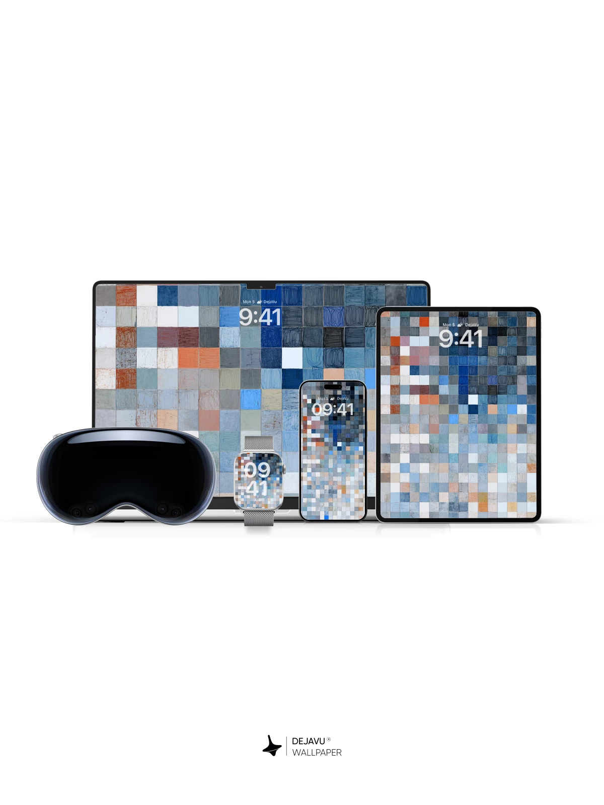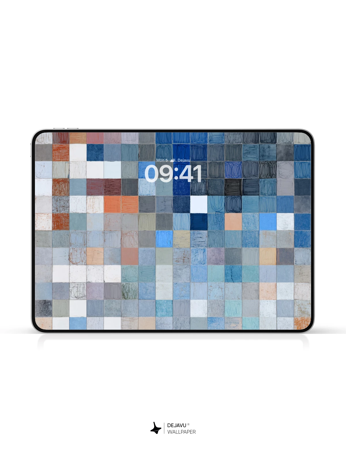 This abstract wallpaper features a mosaic of small squares in varying shades of blue, gray, and orange, creating a calming yet dynamic visual effect. Ideal for iPhone, Android, and tablet users seeking a stylish and versatile background that complements any interface.