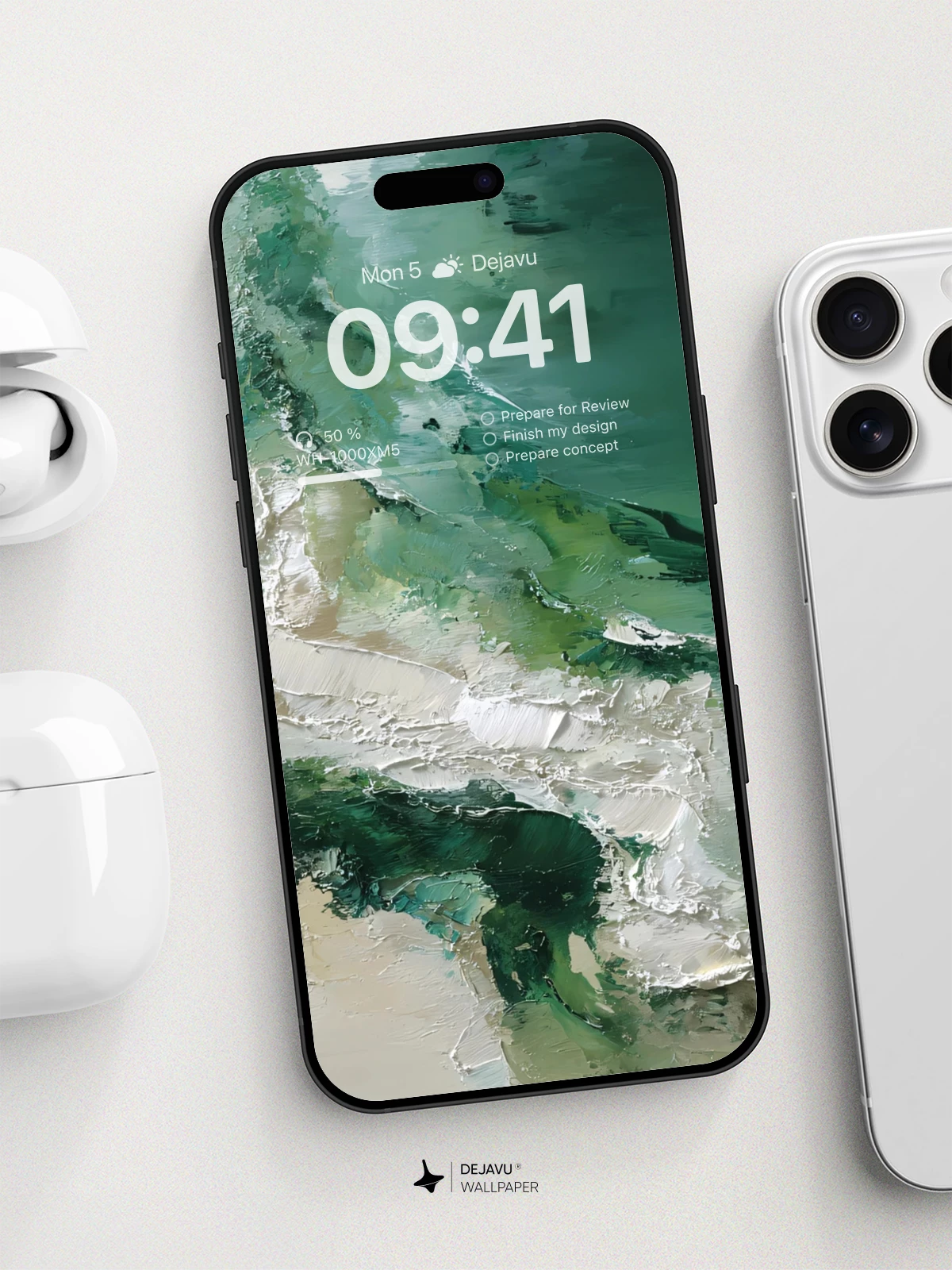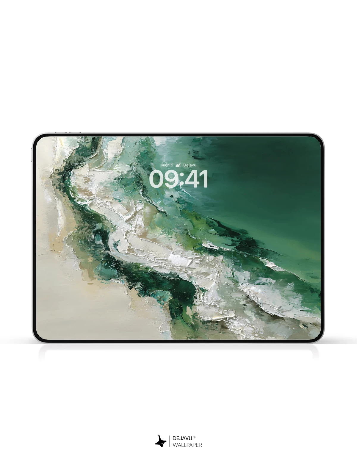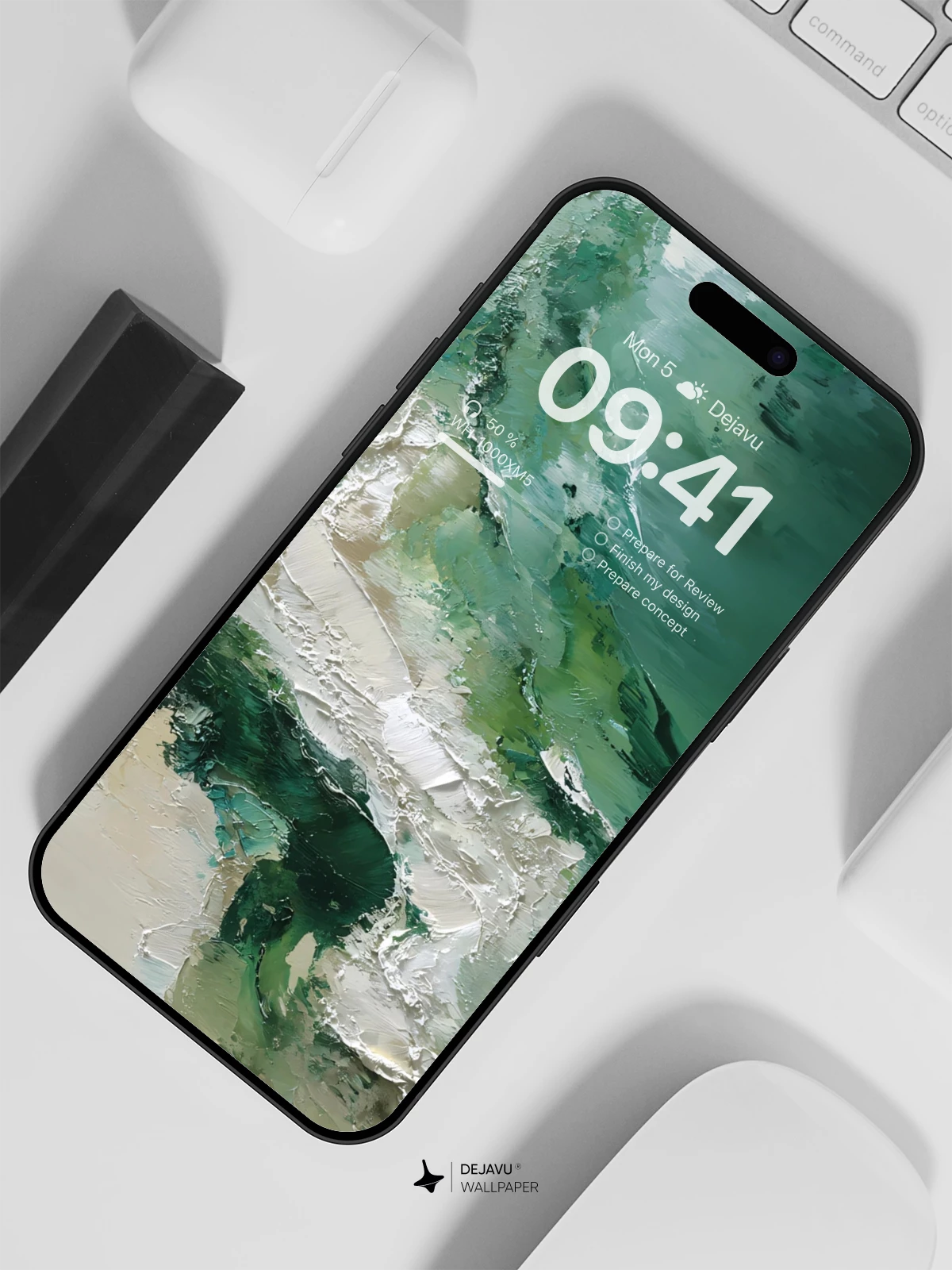 This mesmerizing abstract wallpaper draws inspiration from the dynamic movement of ocean waves, rendered in rich layers of teal, emerald, and frothy white. The swirling textures evoke the raw energy of the sea meeting shore, creating a calming yet powerful visual experience. Designed for high-resolution displays, it’s ideal as an 8K wallpaper for iPhone, Android, or tablets—bringing the essence of coastal serenity to your mobile device. Perfect for those who appreciate modern artistic expression merged with natural beauty.