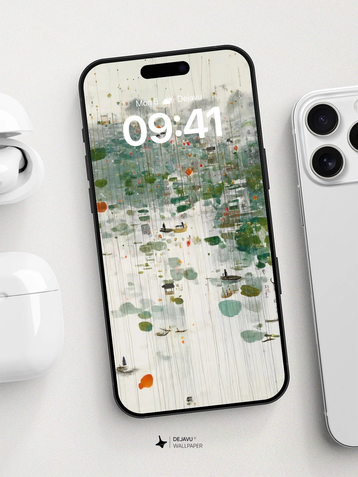This mesmerizing 8K wallpaper blends abstract expression with serene natural motifs, evoking a dreamlike atmosphere where floating landforms drift across a misty expanse. Inspired by traditional East Asian ink wash techniques, the artwork features delicate brushstroke textures, vertical rain-like lines, and vibrant pops of color that suggest life amid tranquility. Ideal for iPhone, Android, or tablet screens, this design brings calm sophistication to your mobile device with its poetic balance of nature, motion, and minimalism.