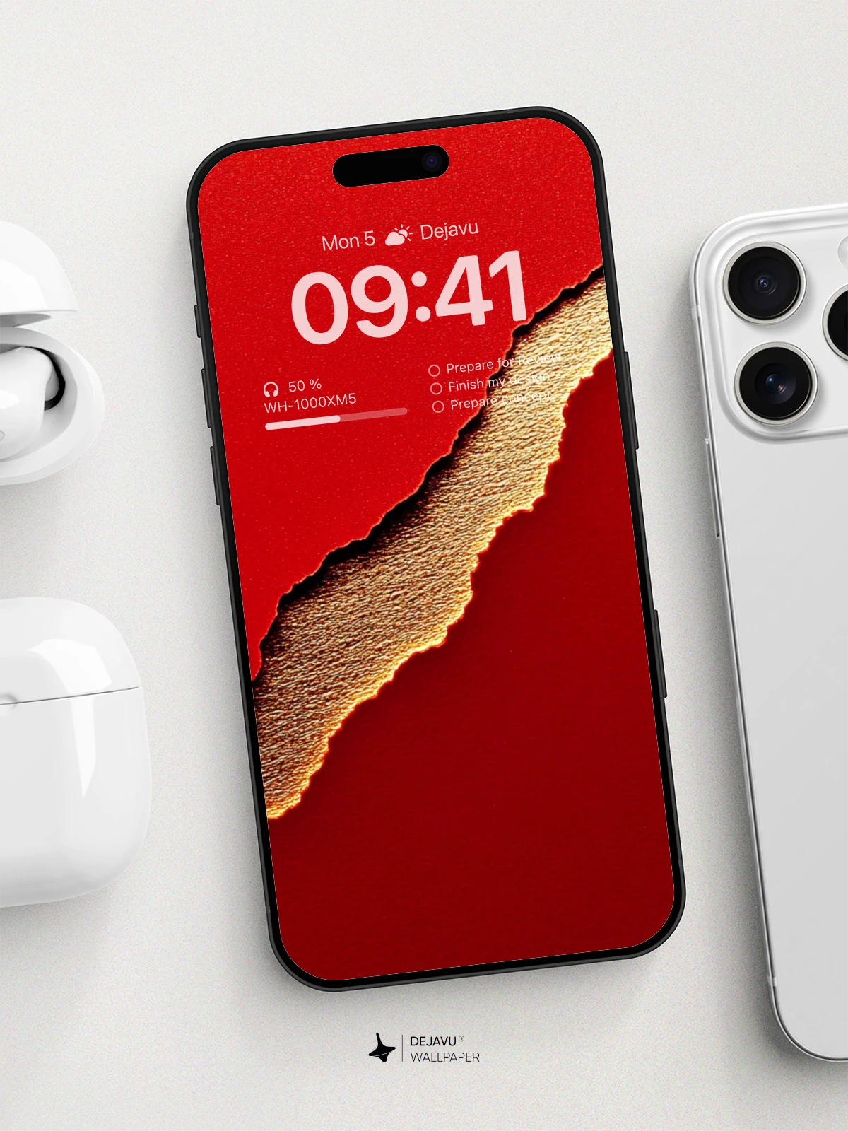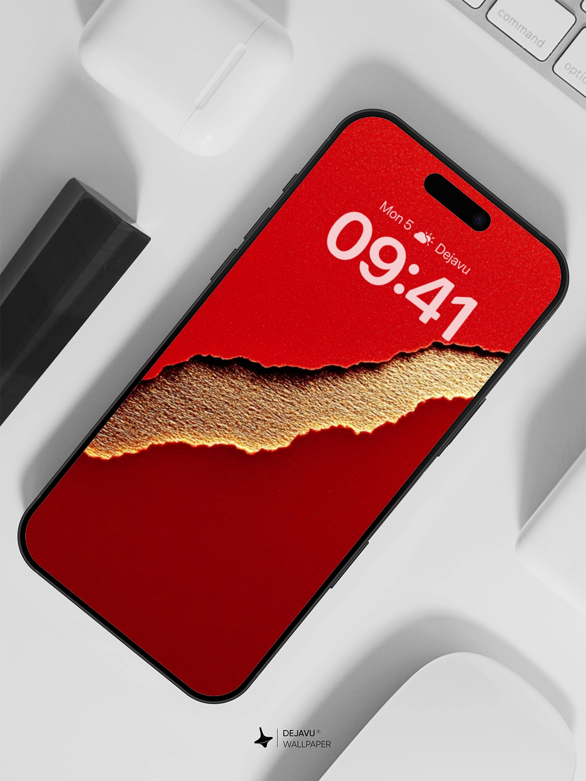 This minimalist wallpaper features a vibrant red background with a unique golden tear, creating a striking contrast. Perfect for enhancing the aesthetic of your iPhone, Android, or tablet screens. Download this high-resolution image for a modern and stylish look.
