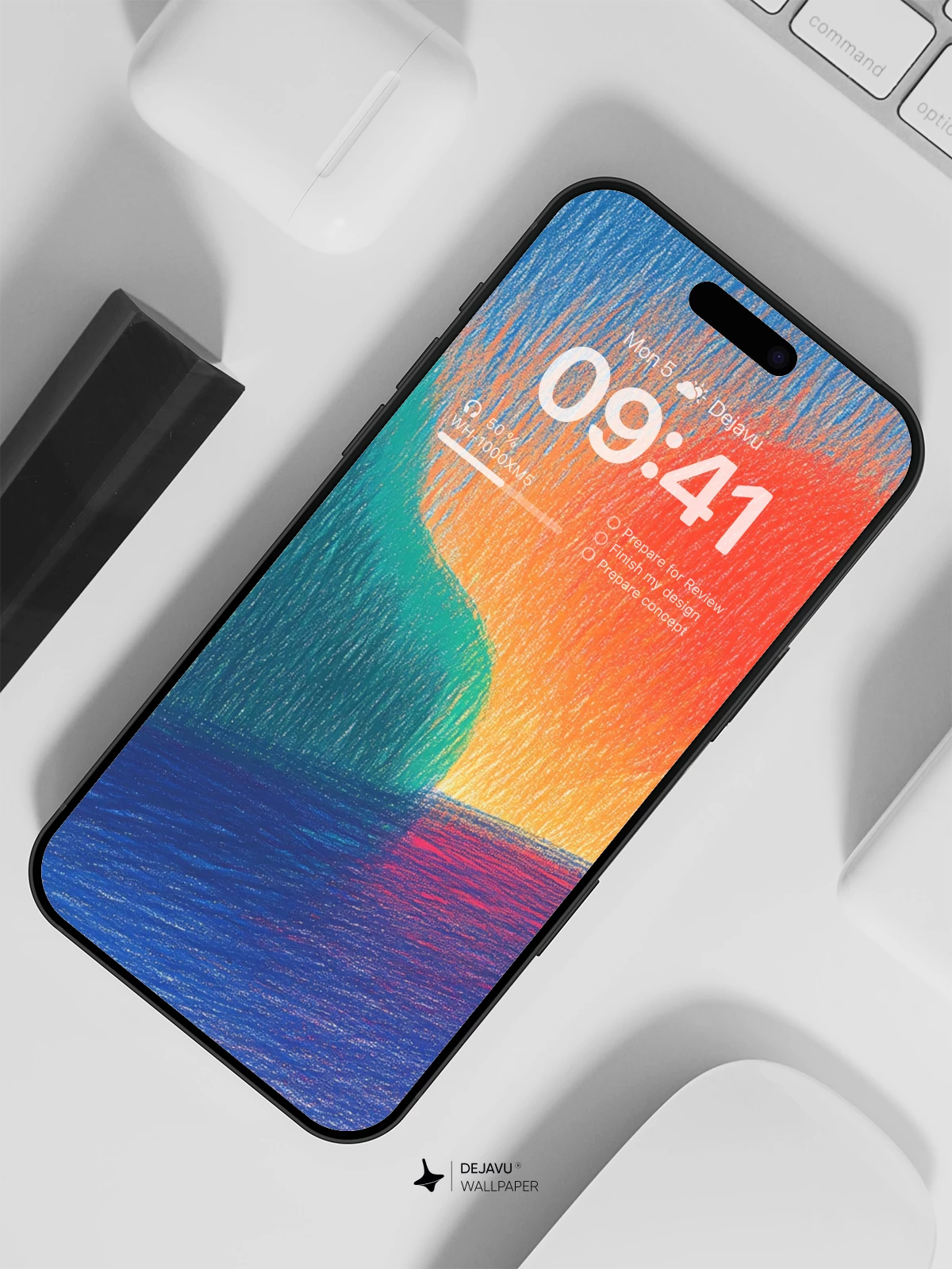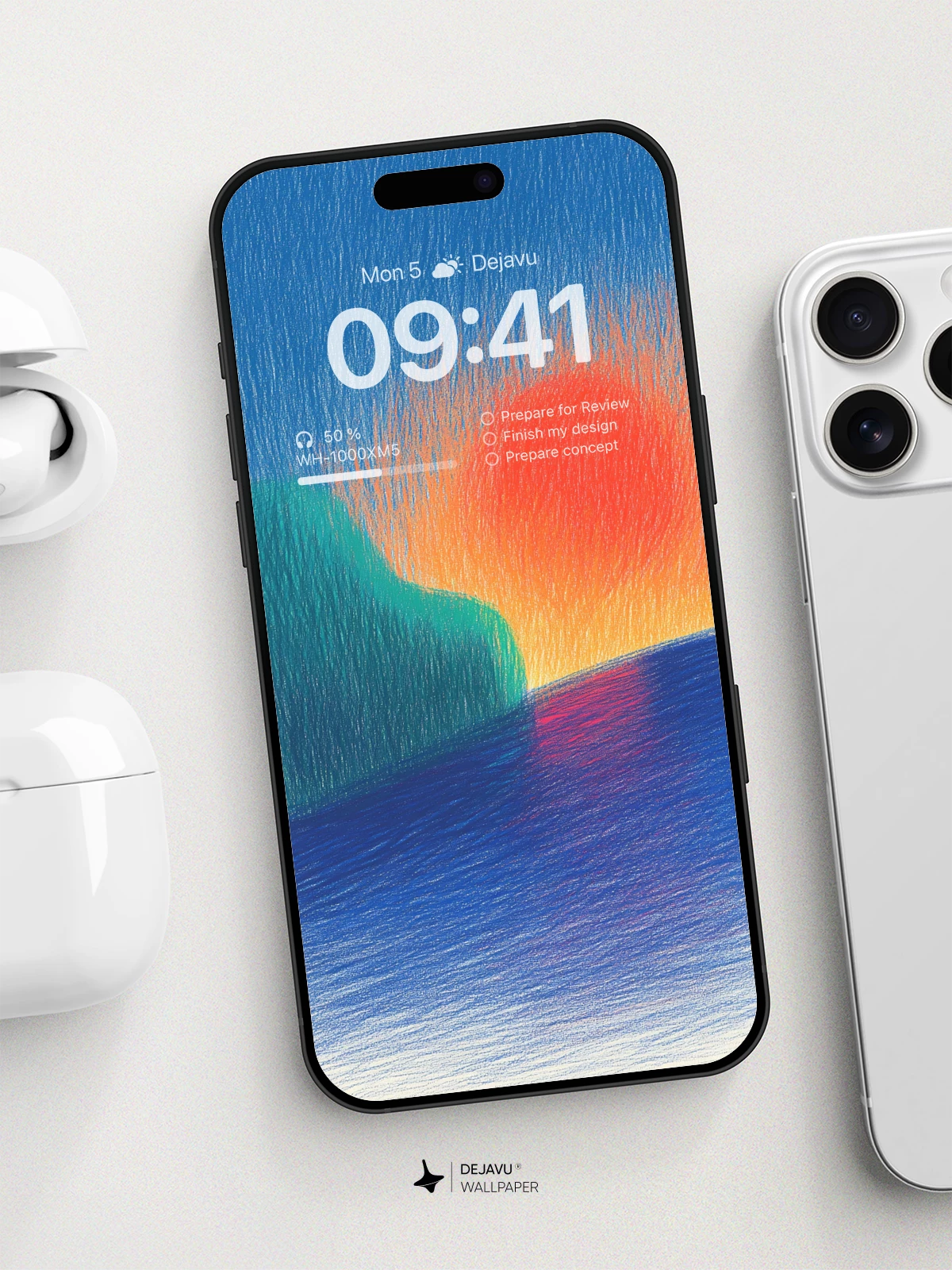 This abstract sunset scene, rendered in rich, layered colors with textured brushwork, evokes a sense of serene beauty and emotional depth. The fiery orange sun meets the deep blue ocean, mirrored with soft reflections, while a teal hill anchors the composition. Ideal for iPhone, Android, or tablet screens, this 8K wallpaper blends modern artistry with natural inspiration, creating a calming yet dynamic visual experience for any device.