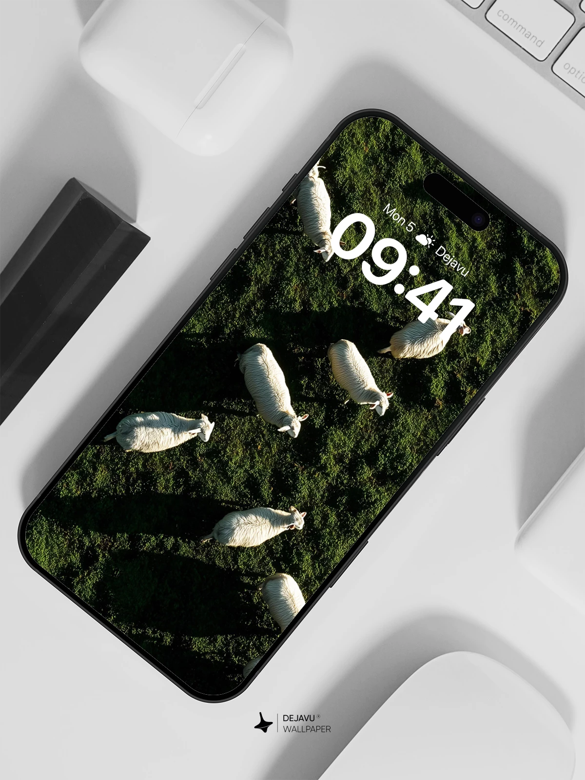 This breathtaking aerial photograph captures a tranquil herd of sheep meandering across a vibrant green pasture, their soft white wool contrasting beautifully with the rich emerald grass. The long shadows cast by the low sun add depth and drama to the scene, evoking a sense of calm and timeless pastoral beauty. Ideal as an 8K wallpaper for iPhone, Android, or tablet, this image brings a peaceful countryside moment to your device’s screen.